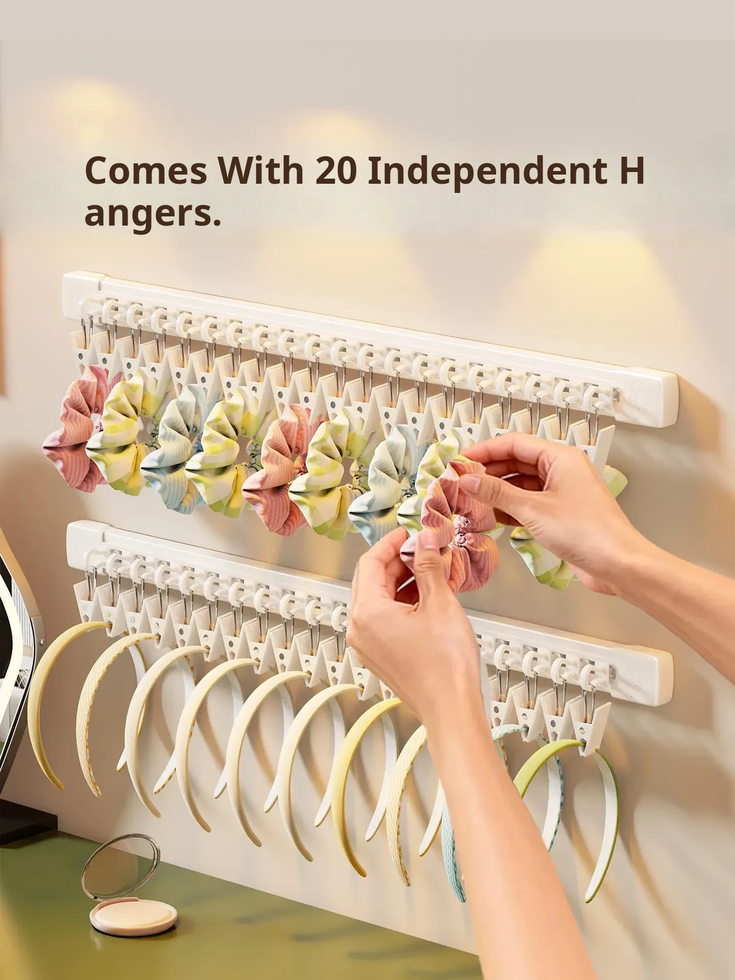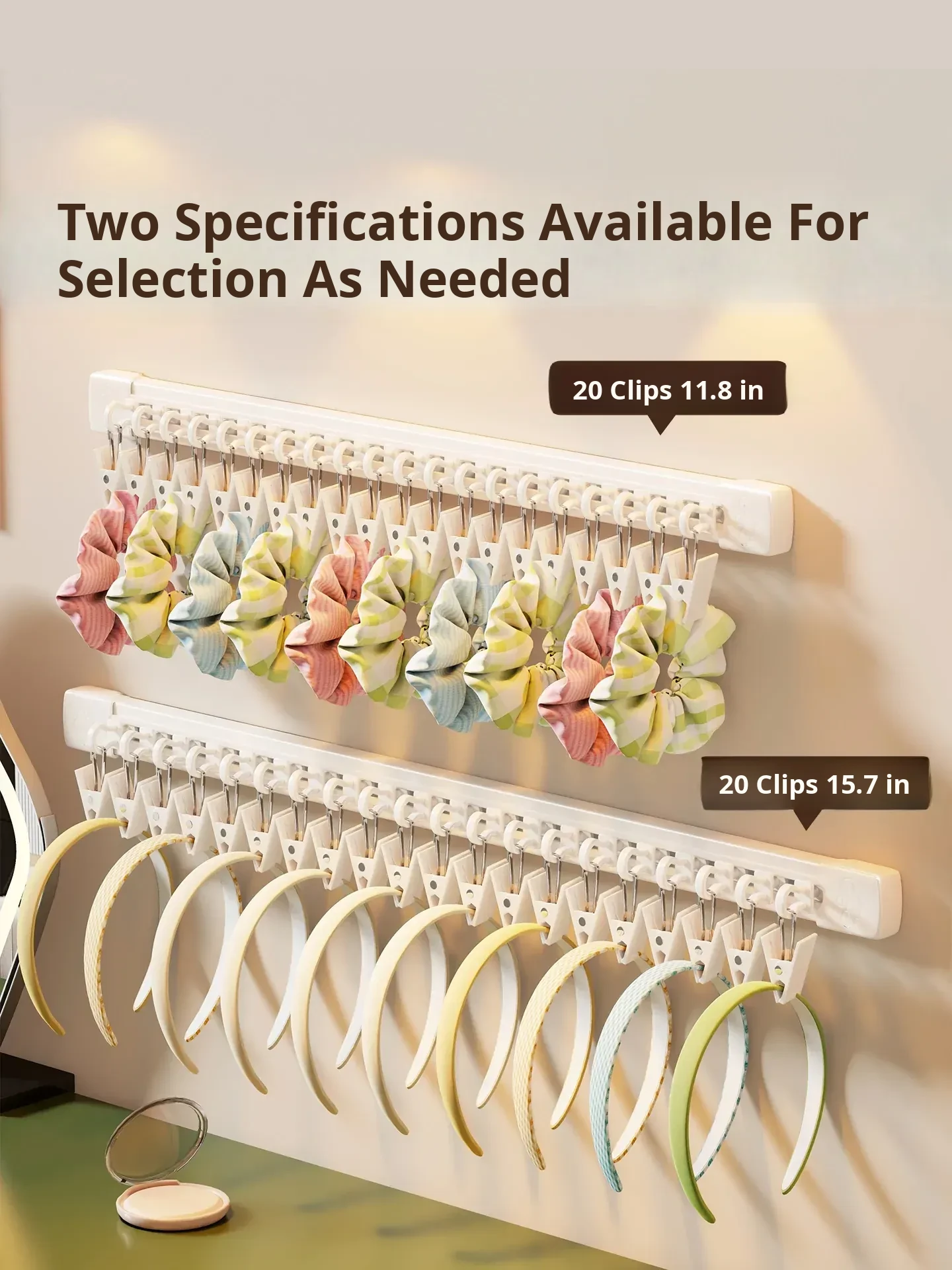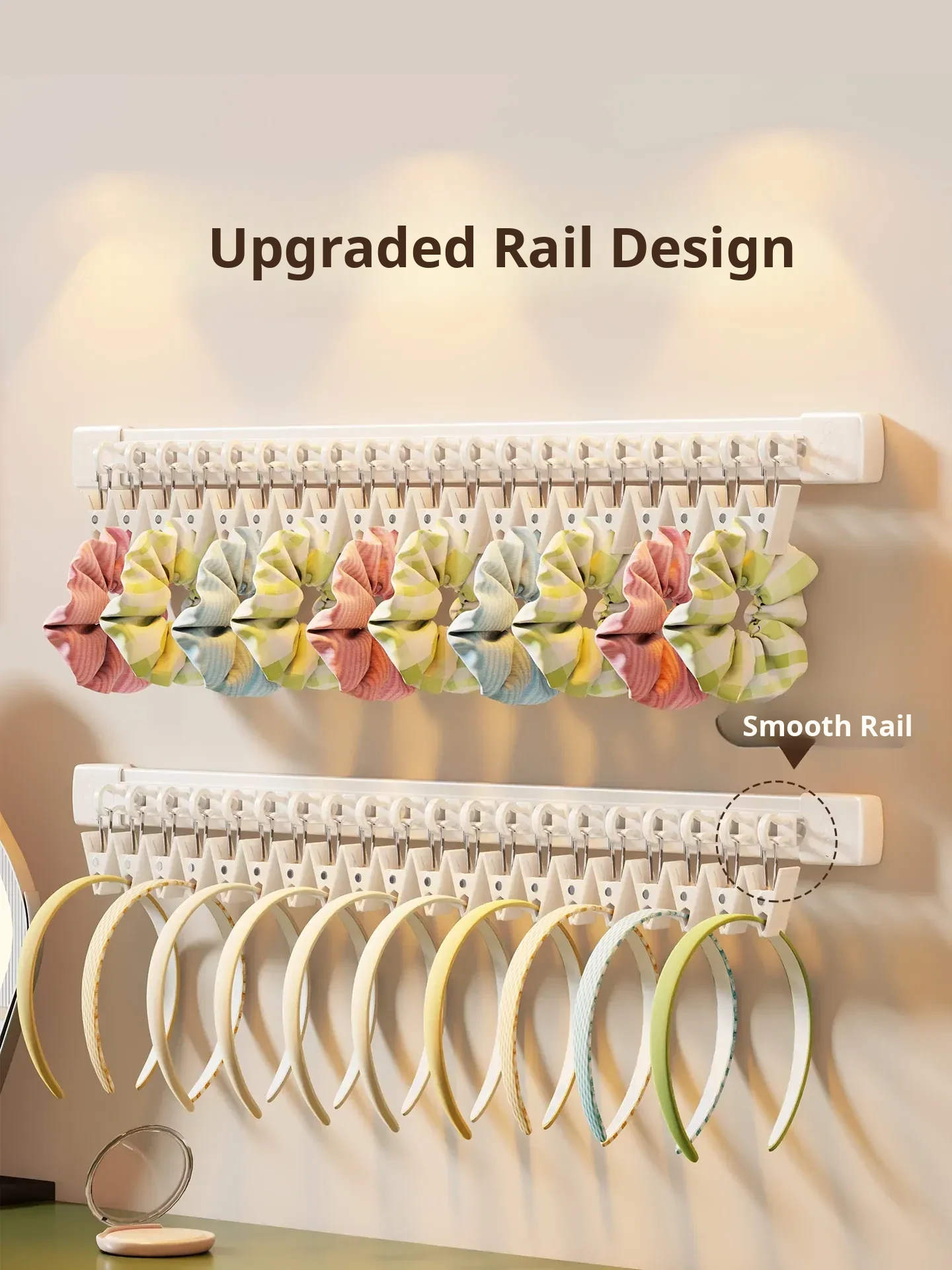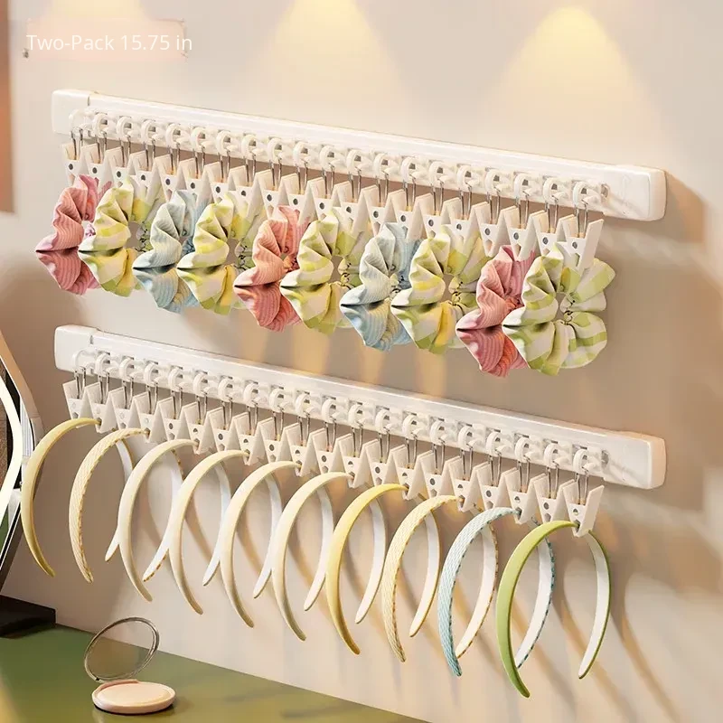 Wall-Mounted Hair Accessory Organizer - No Drill Sliding Track for Hair Ties, Clips, and Headbands - Stylish Display Rack for Your Hair Essentials
