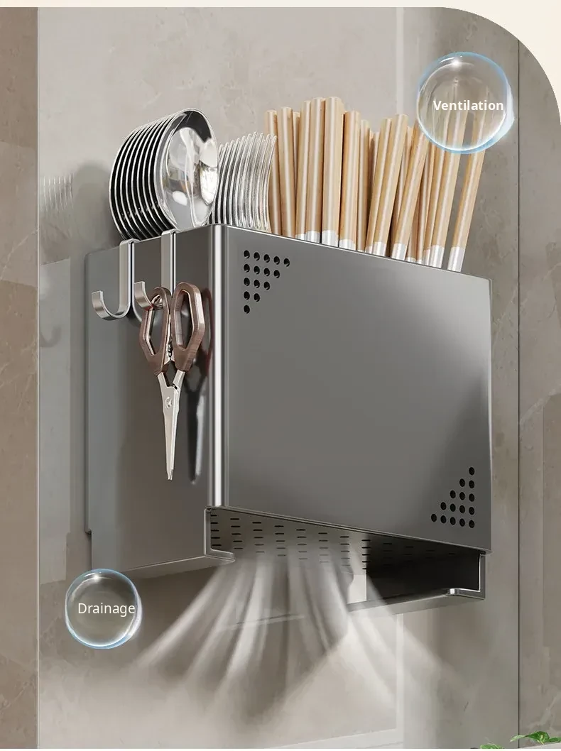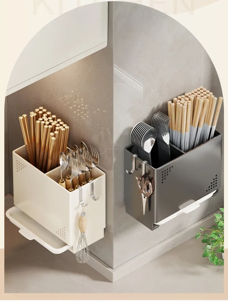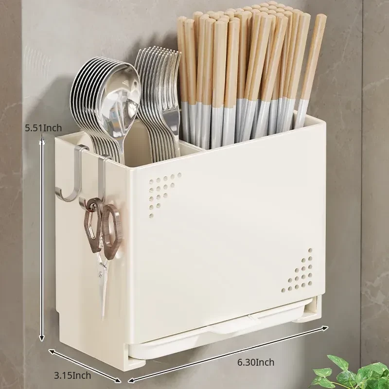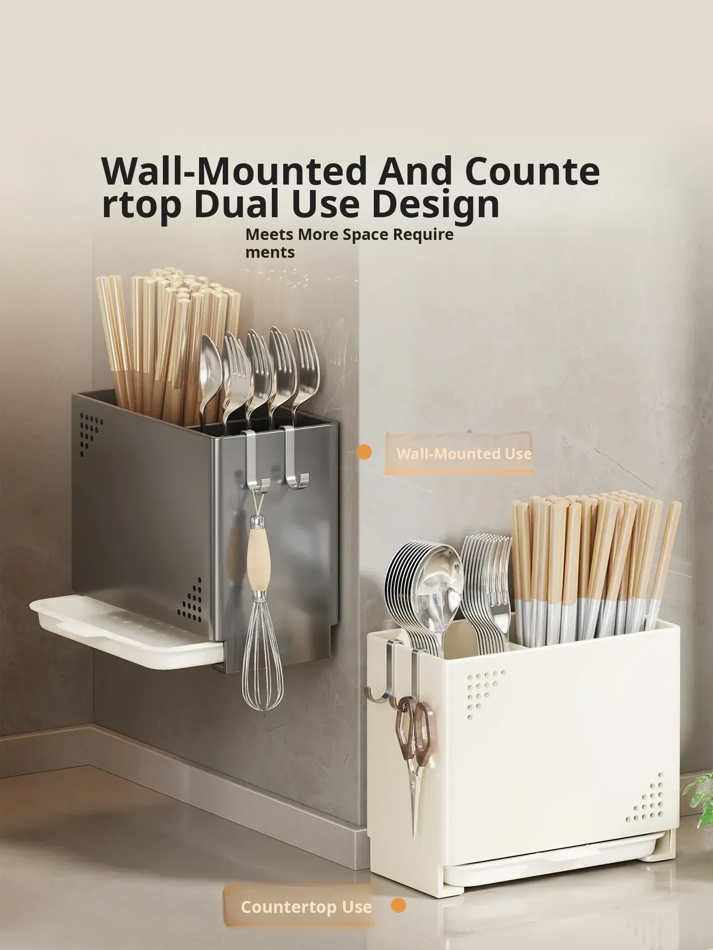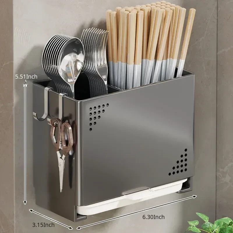 Wall-Mounted Kitchen Chopstick Holder - No Drilling Required, Space-Saving Utensil Organizer with Drainage Design for Spoons and Chopsticks, Perfect for Home Use