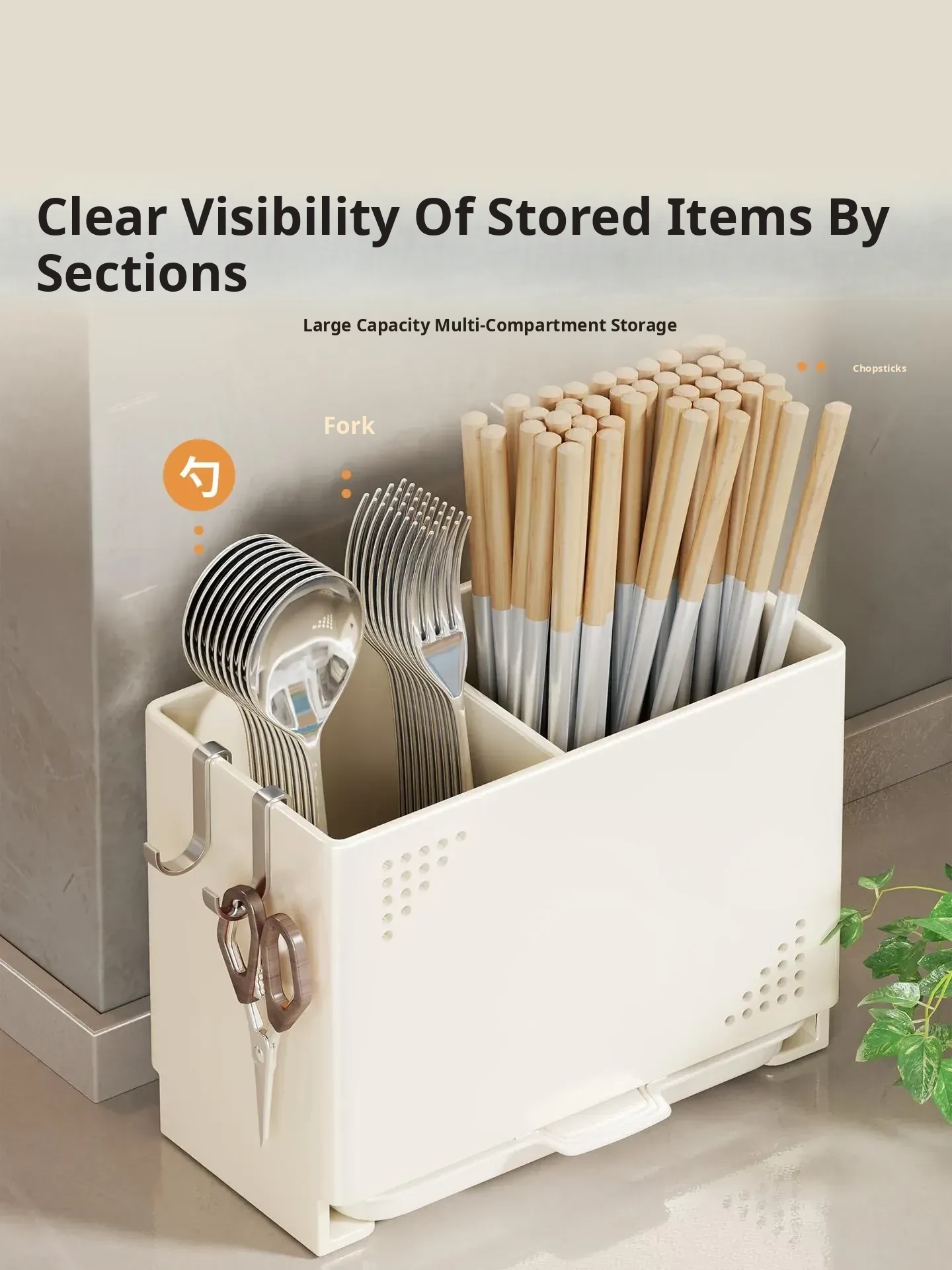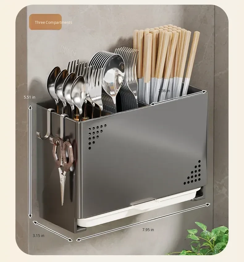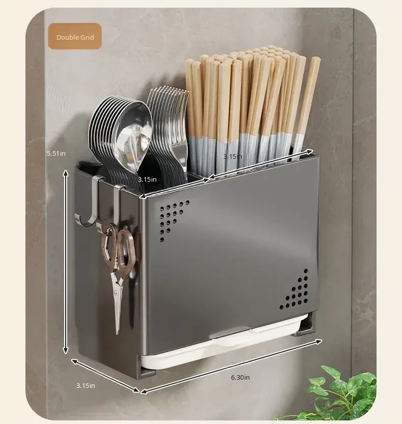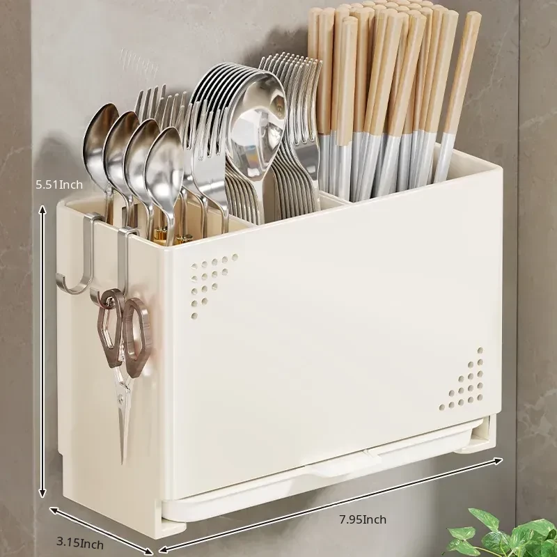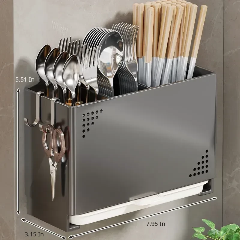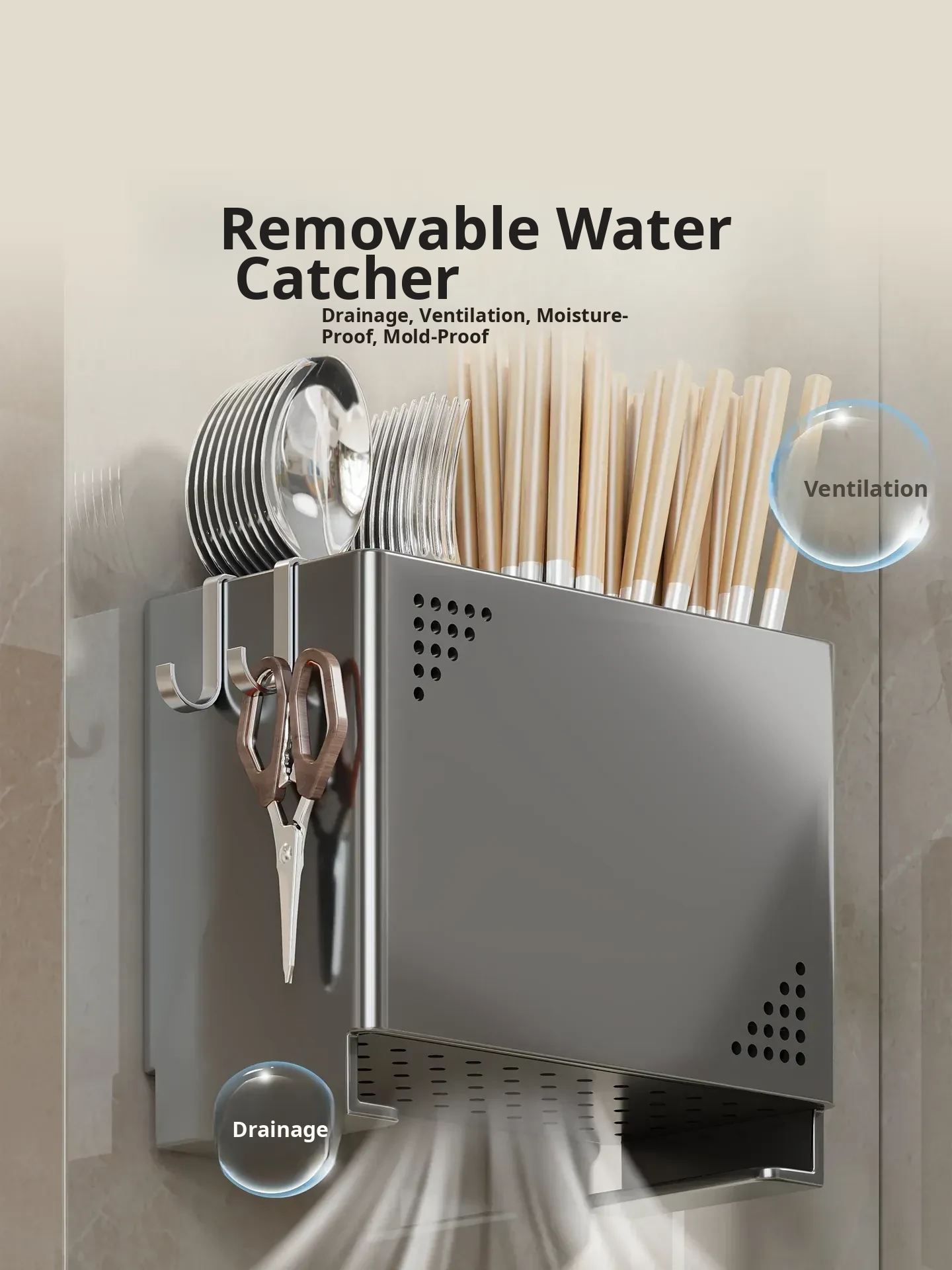 Wall-Mounted Kitchen Chopstick Holder - No Drilling Required, Space-Saving Utensil Organizer with Drainage Design for Spoons and Chopsticks, Perfect for Home Use