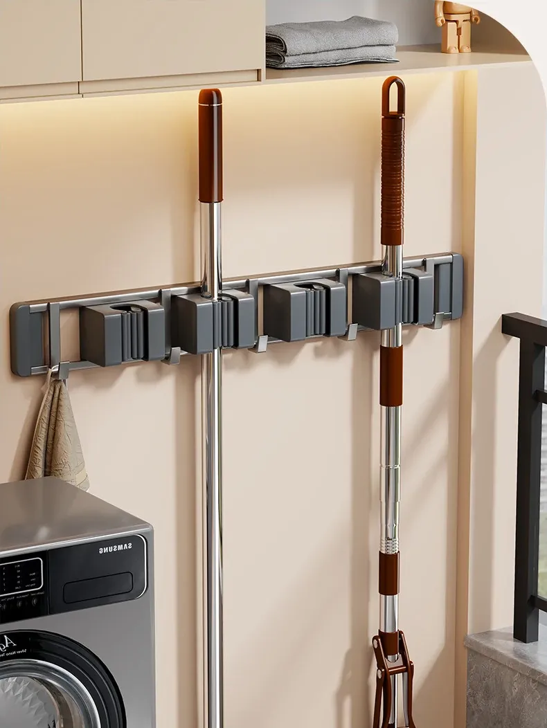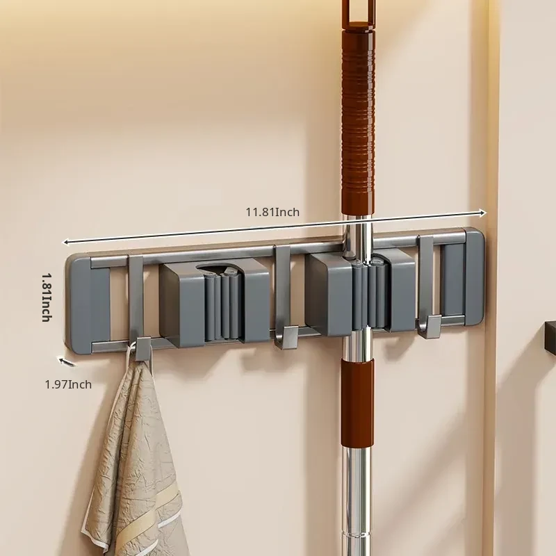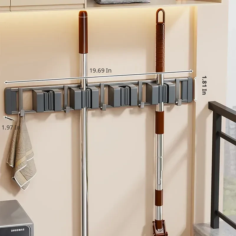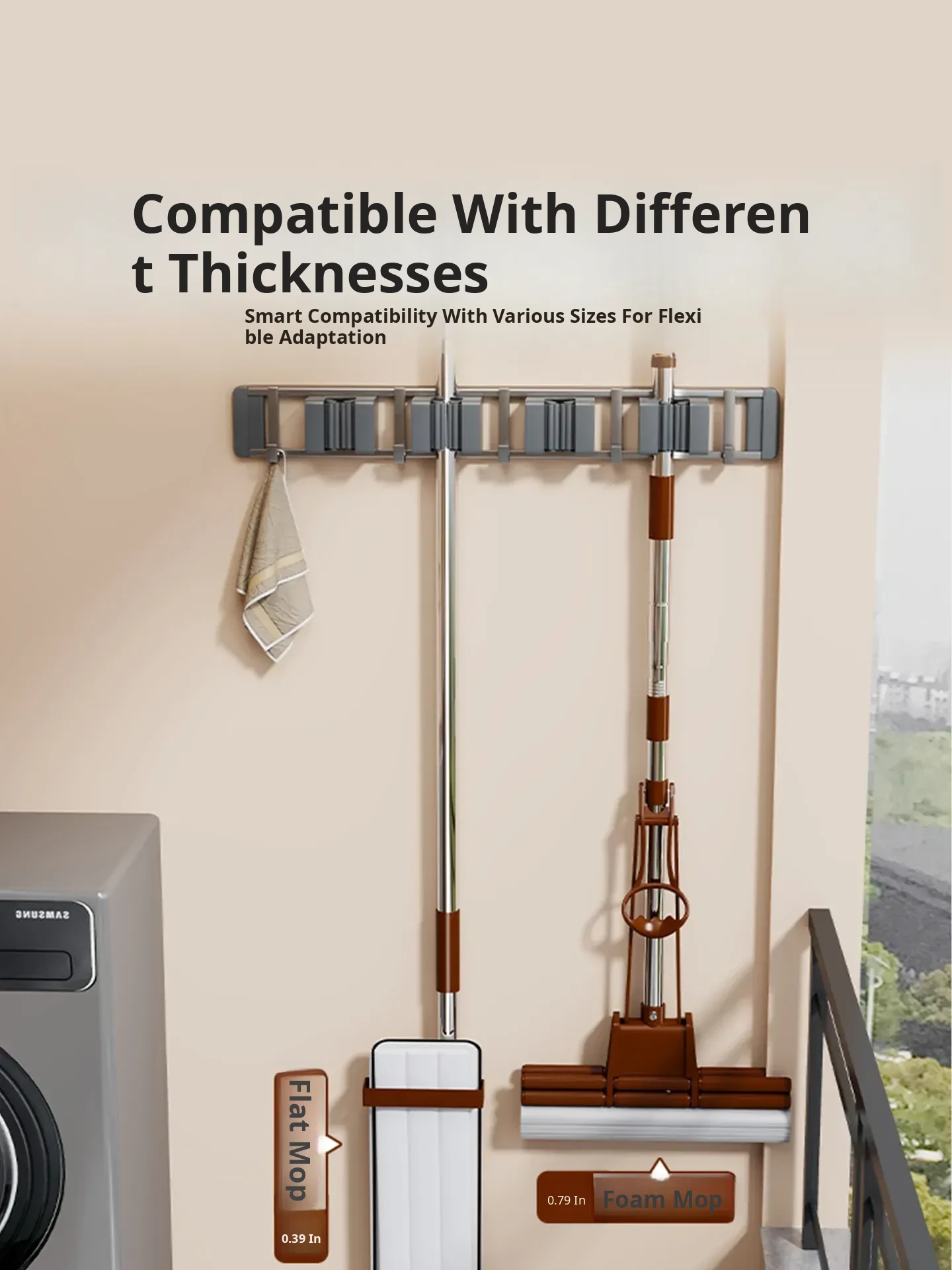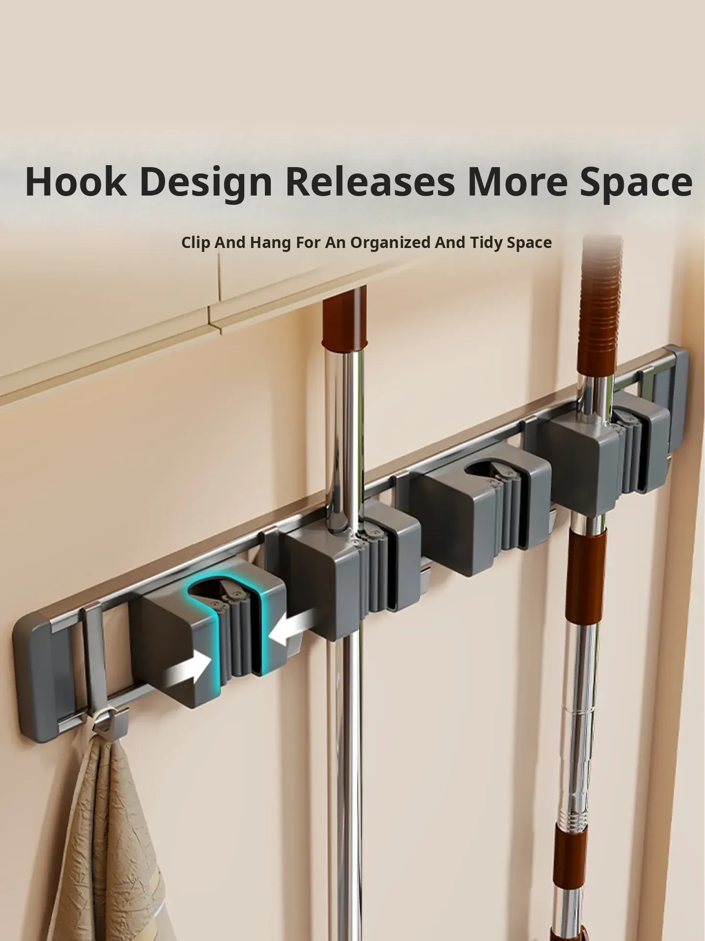 Wall-Mounted Mop Holder with No Drilling Required - Versatile Storage Rack for Mops, Brooms, and Cleaning Tools - Space-Saving Bathroom Organizer and Essential Storage Solution!