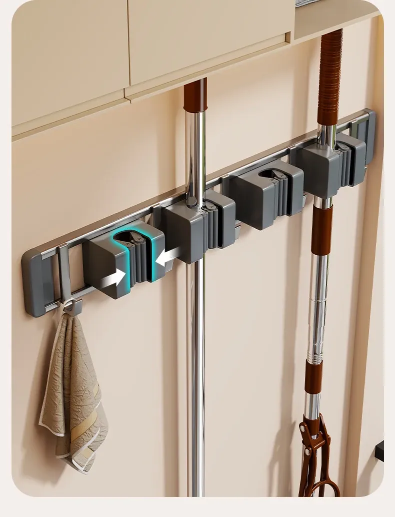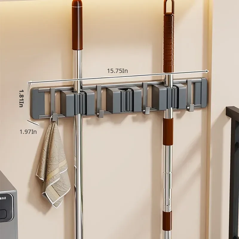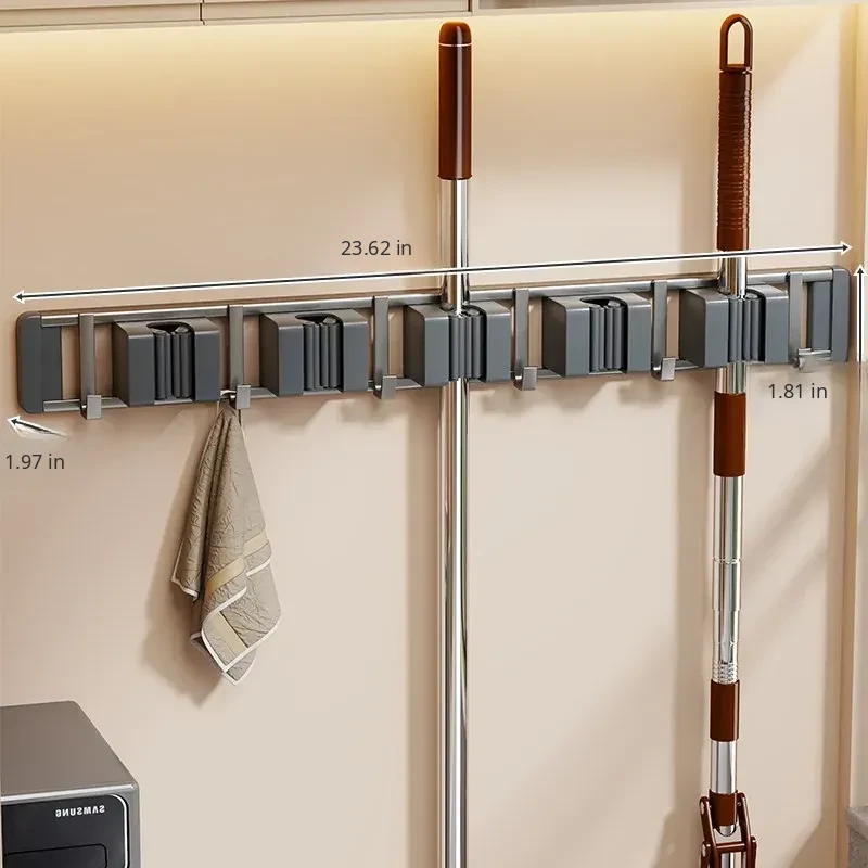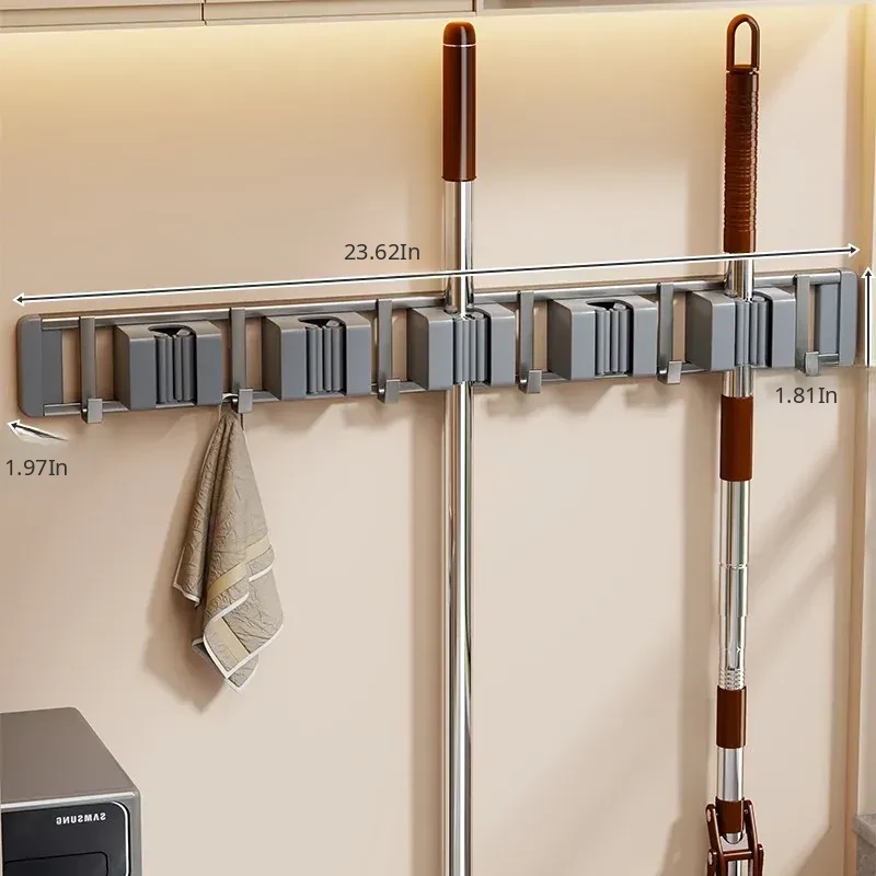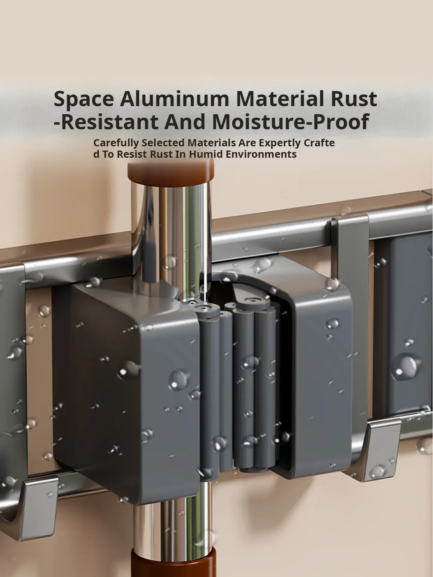 Wall-Mounted Mop Holder with No Drilling Required - Versatile Storage Rack for Mops, Brooms, and Cleaning Tools - Space-Saving Bathroom Organizer and Essential Storage Solution!