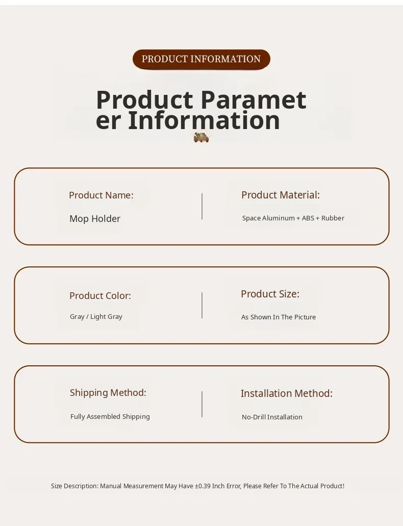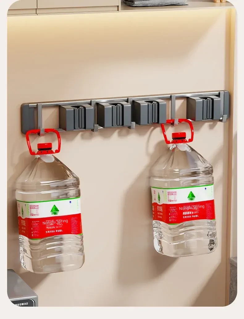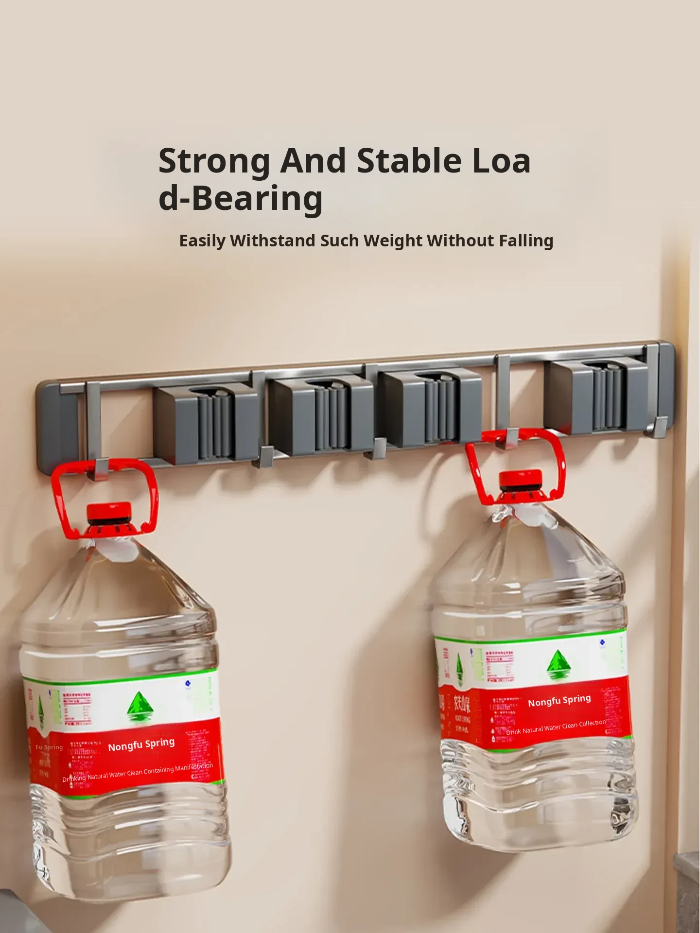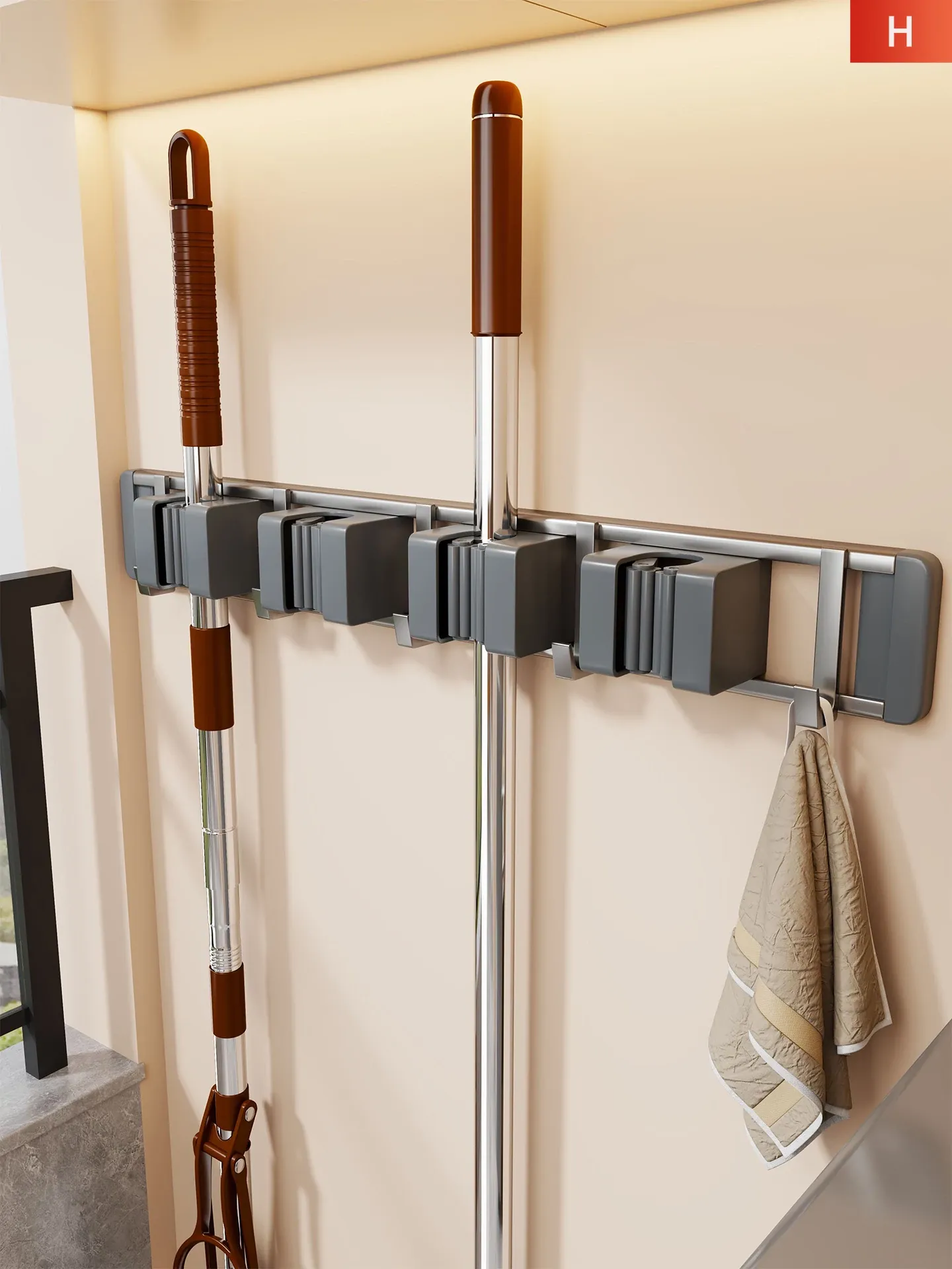 Wall-Mounted Mop Holder with No Drilling Required - Versatile Storage Rack for Mops, Brooms, and Cleaning Tools - Space-Saving Bathroom Organizer and Essential Storage Solution!