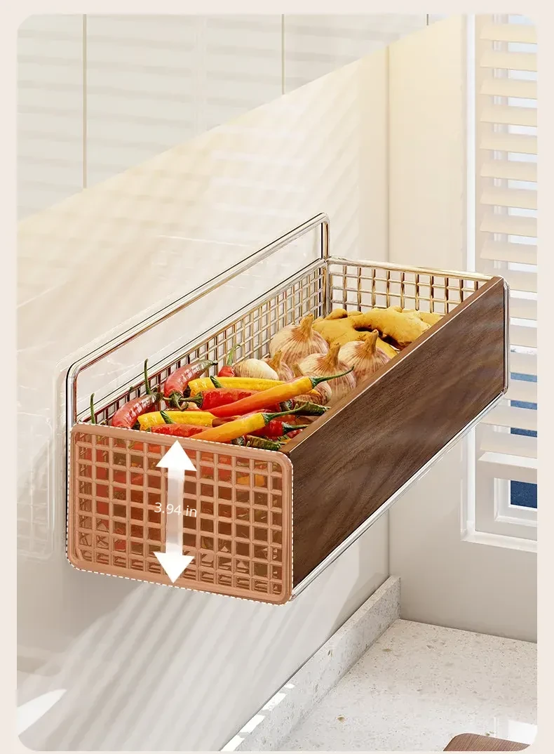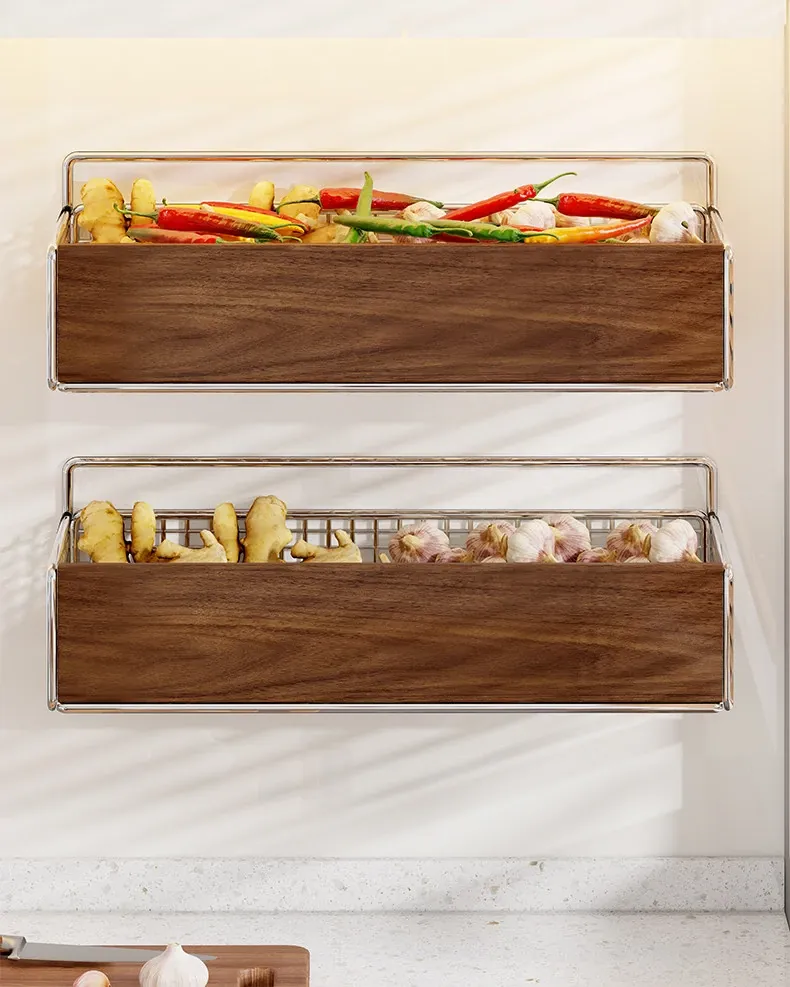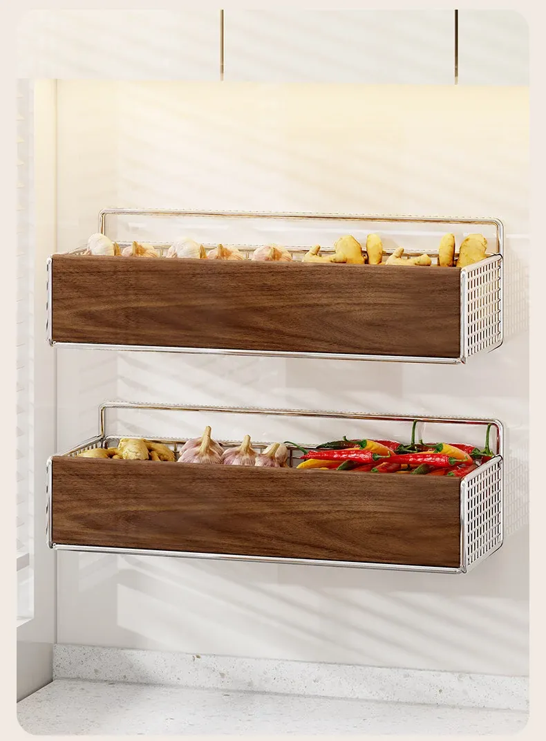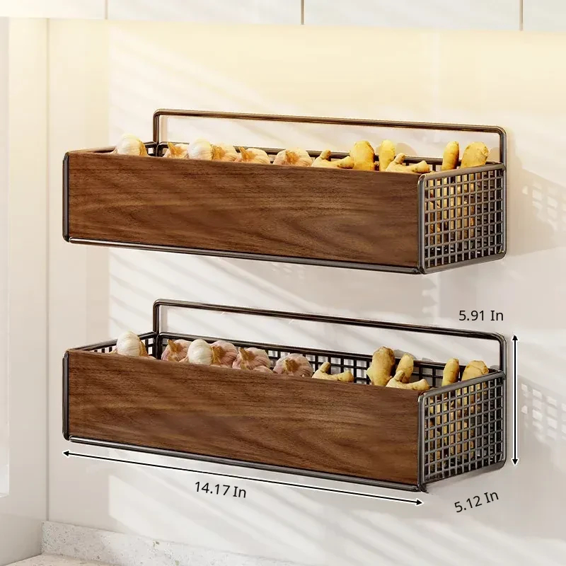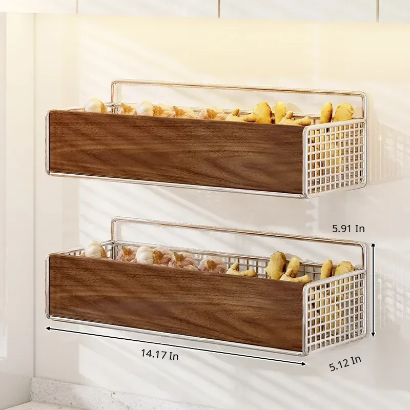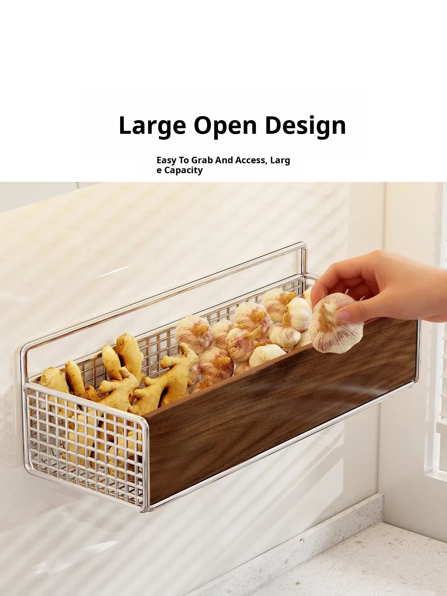 Wall-Mounted Storage Box for Garlic, Ginger, and Onion - No Drill Kitchen Organizer, Perfect for Vegetables and Herbs, Space-Saving Solution for a Tidy Kitchen