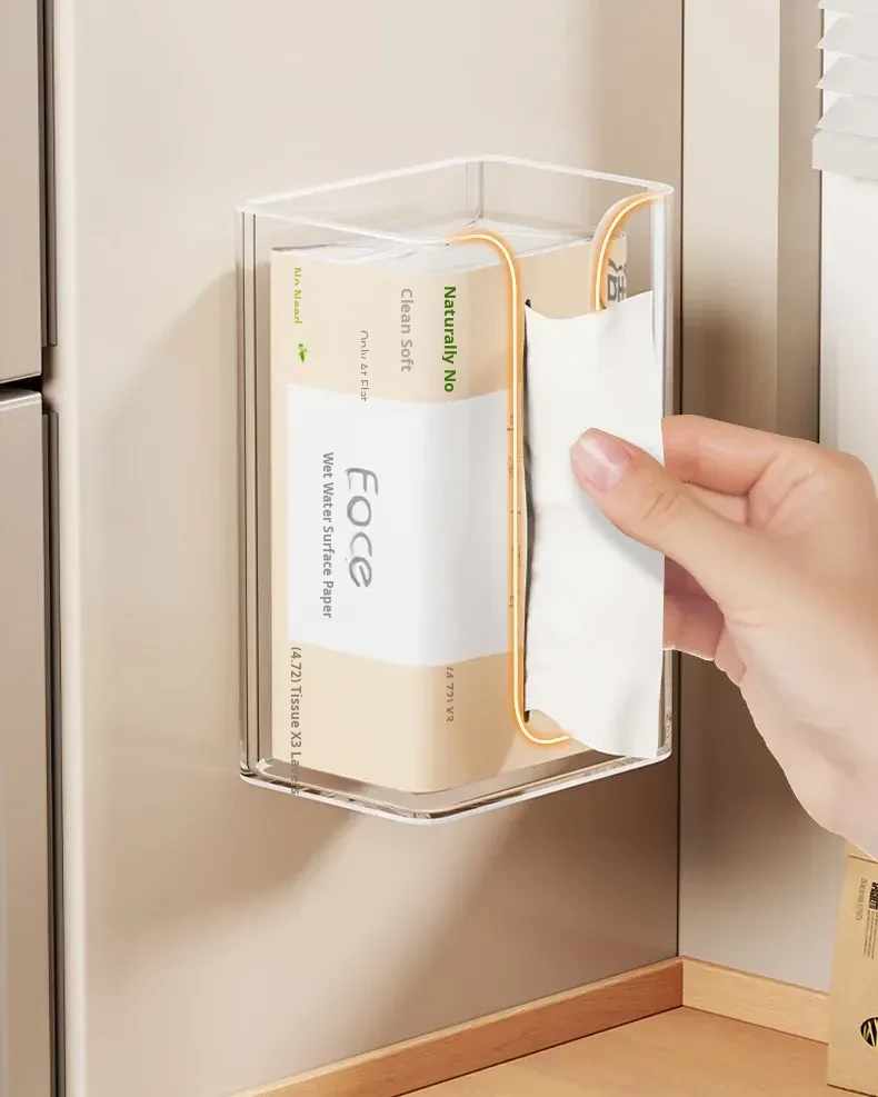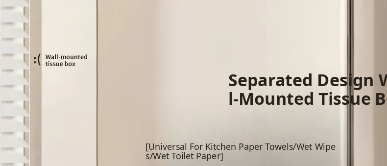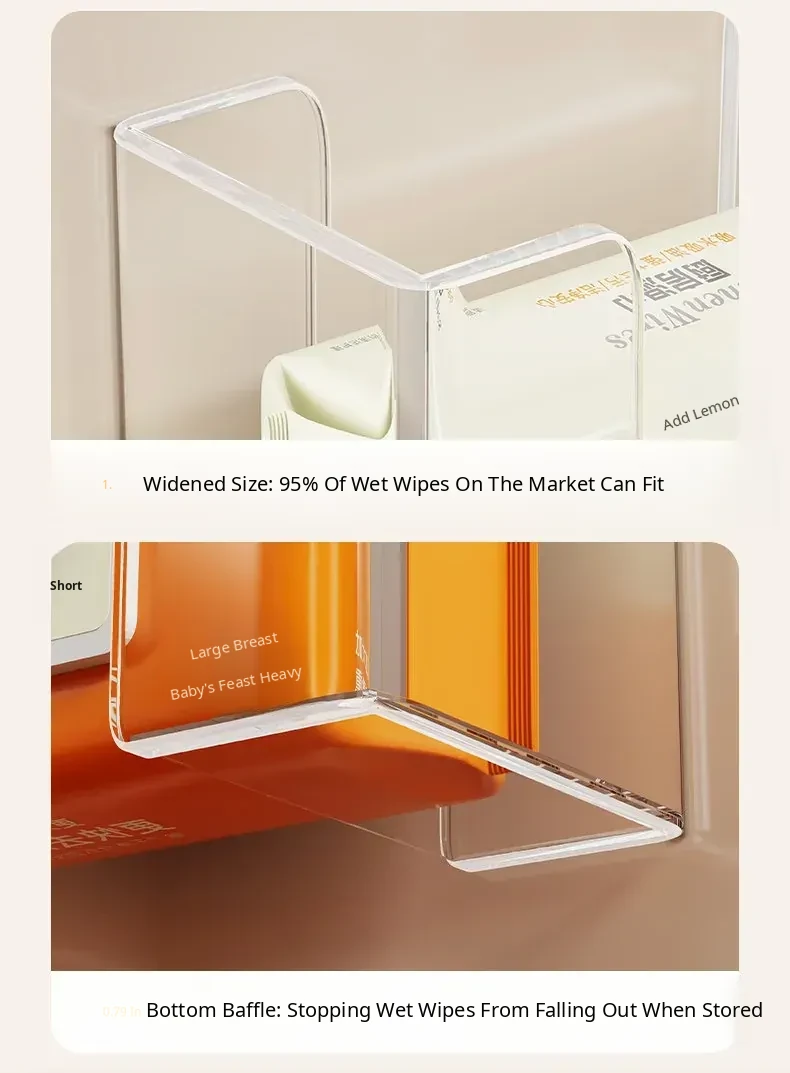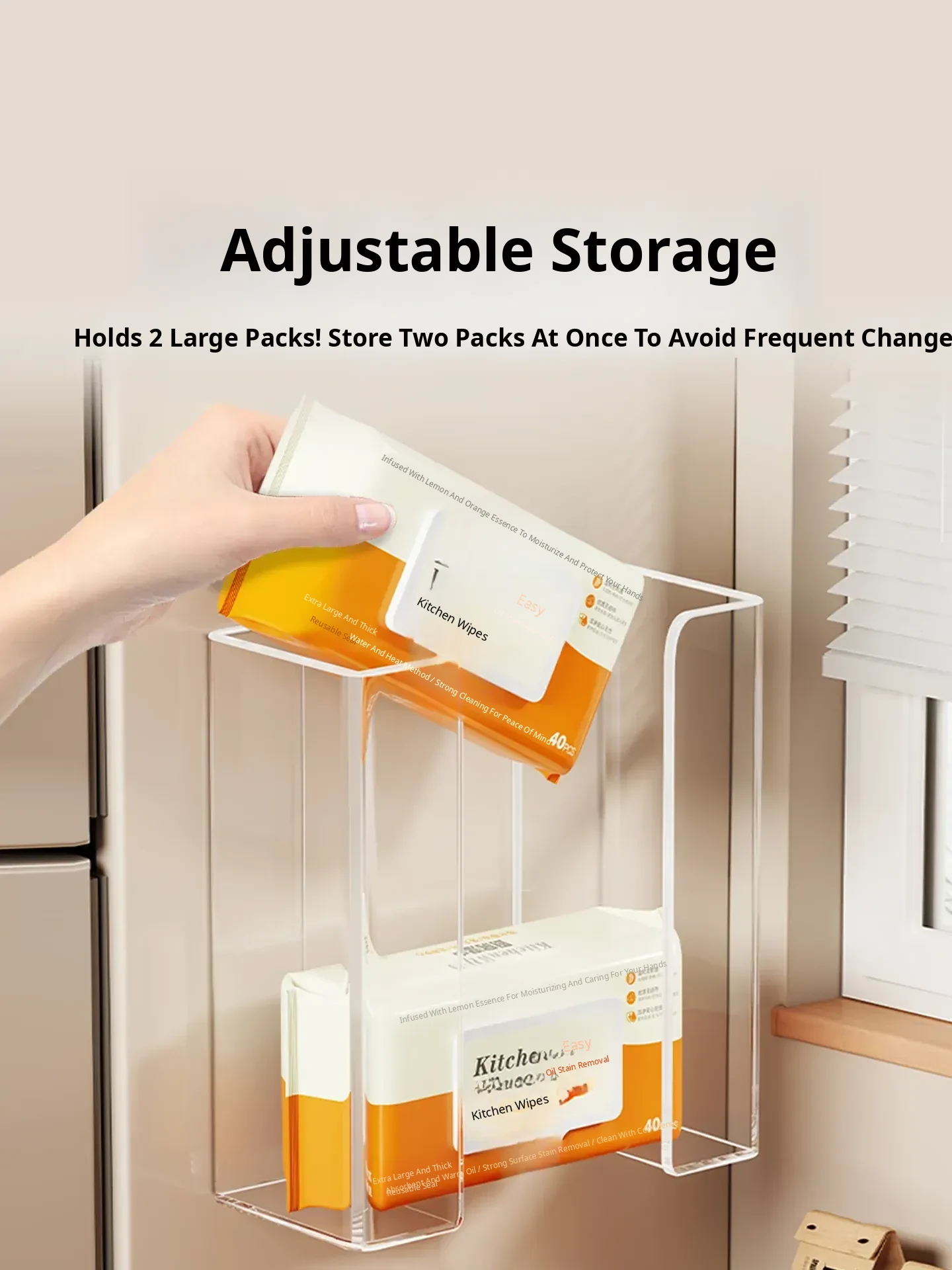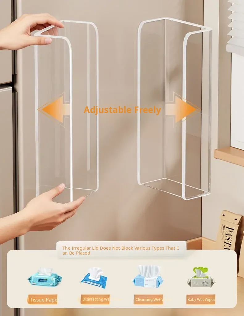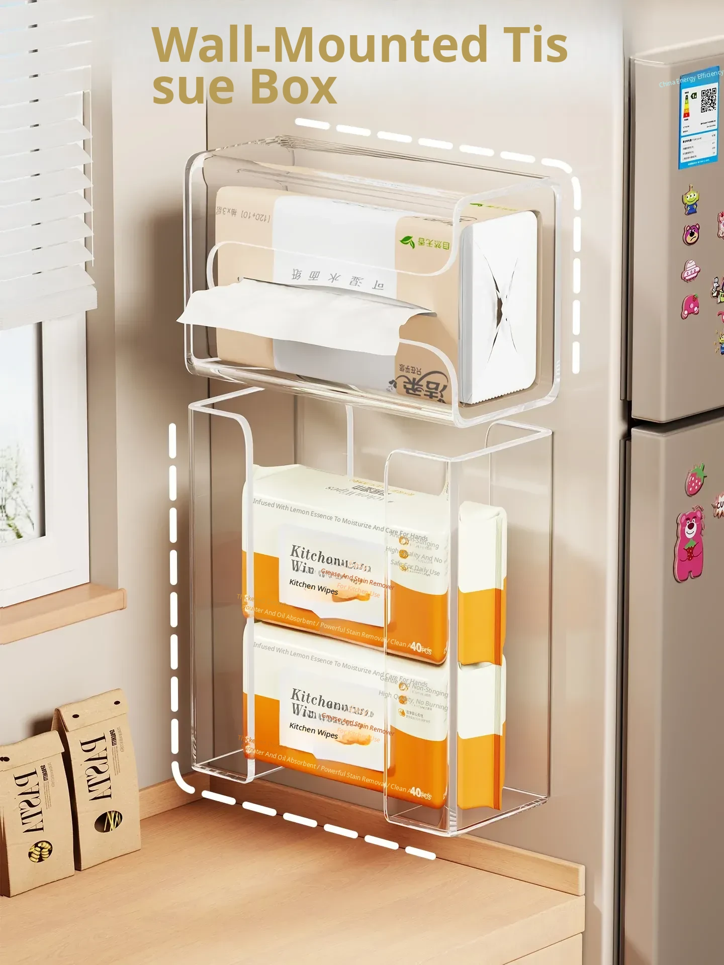 Wall-Mounted Tissue Box for Kitchen - Adjustable, No-Drill Design for Wet Wipes and Facial Towels - Stylish Storage Solution for Organized Spaces