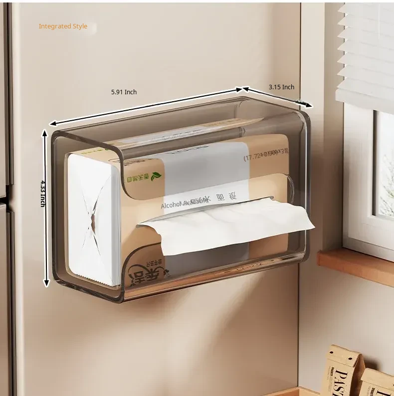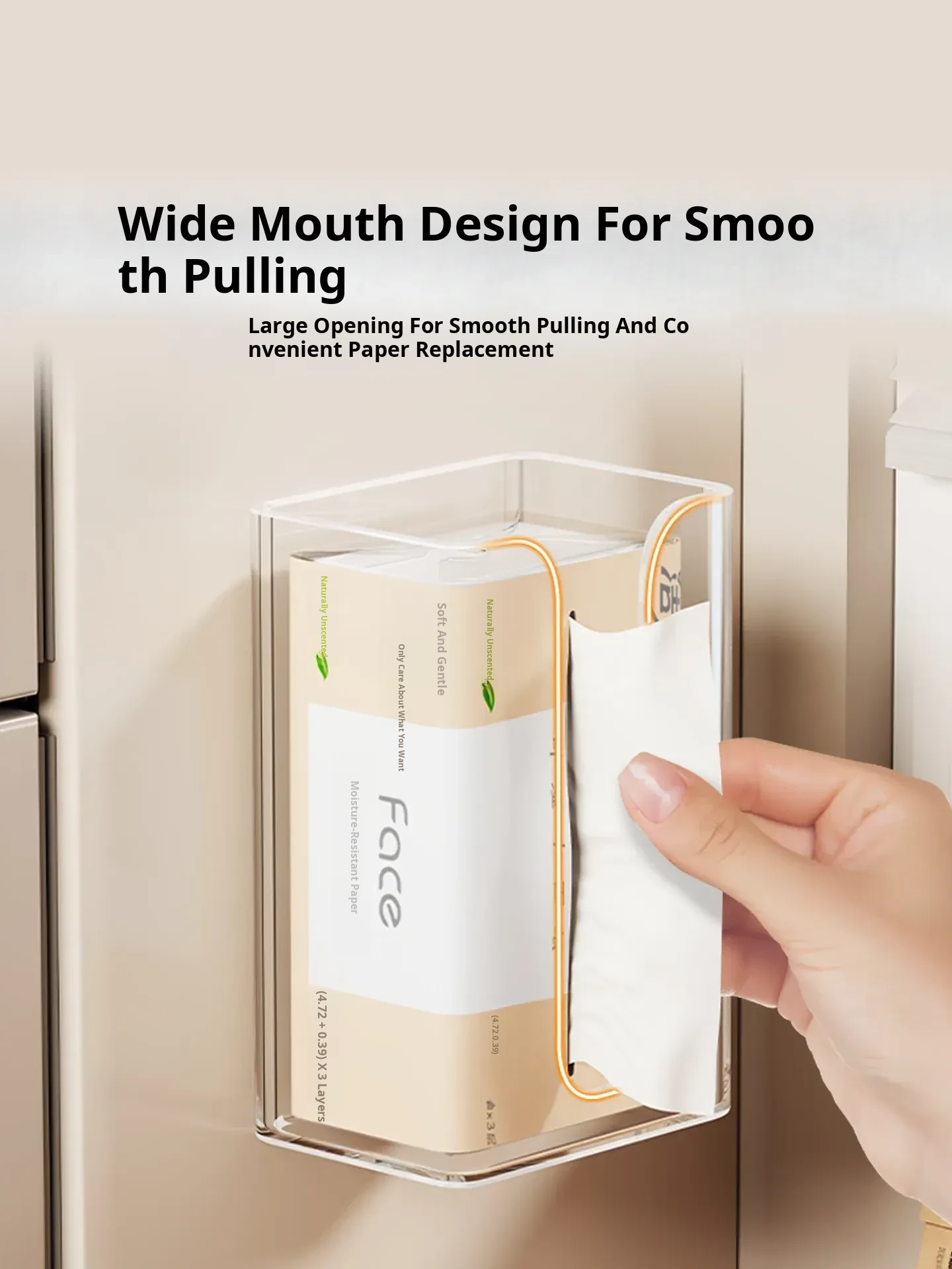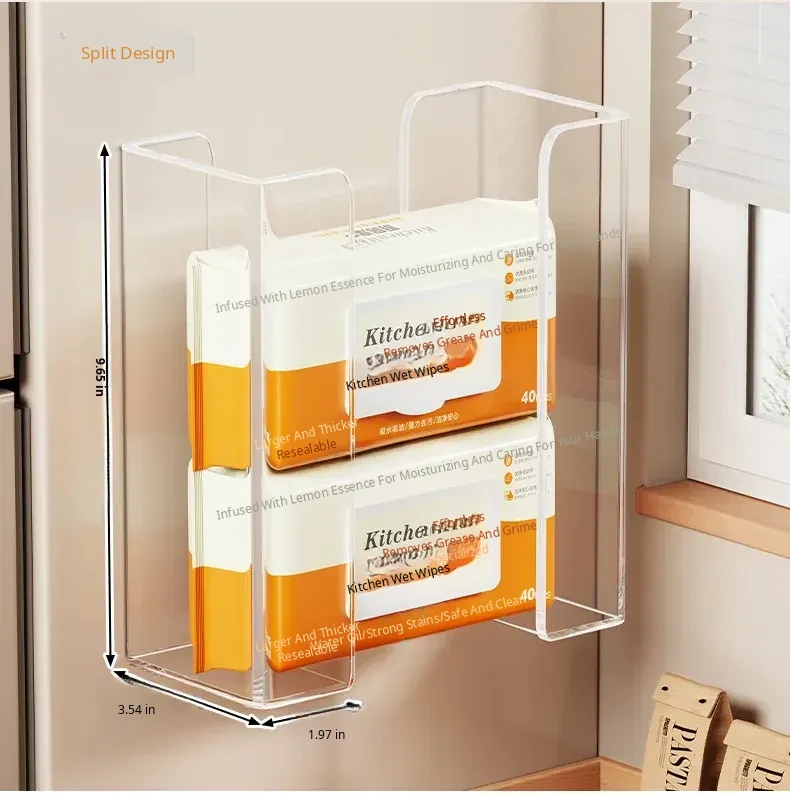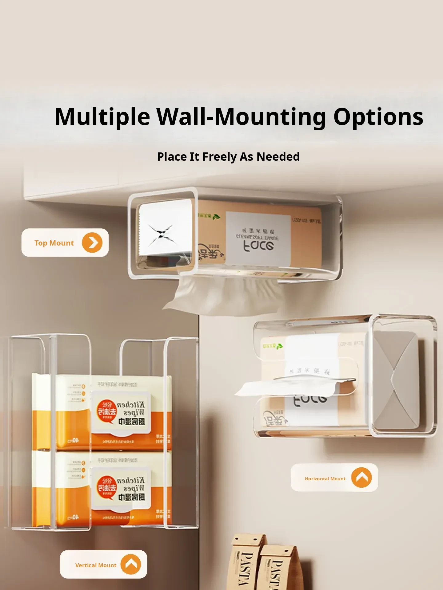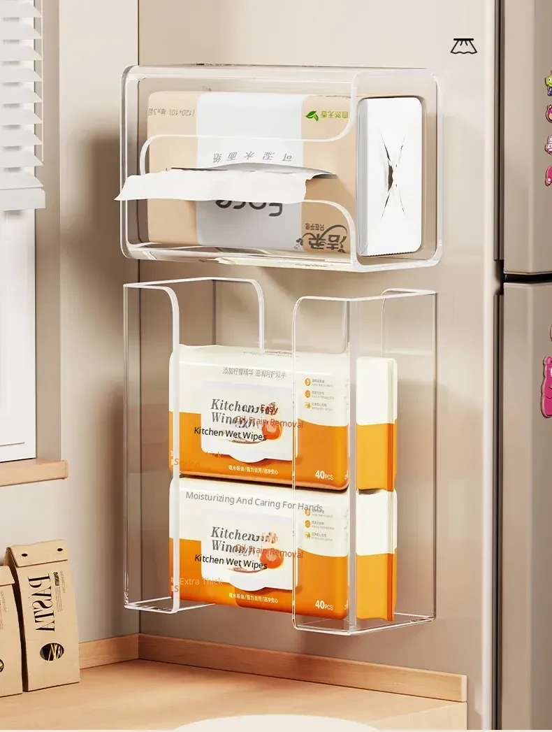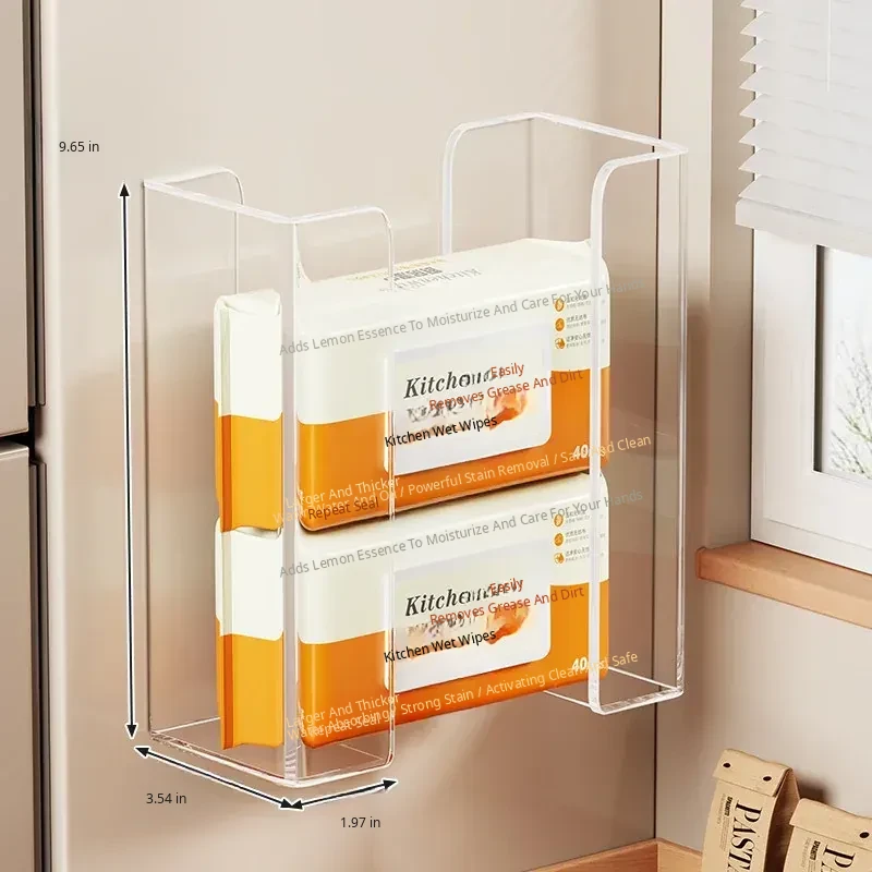 Wall-Mounted Tissue Box for Kitchen - Adjustable, No-Drill Design for Wet Wipes and Facial Towels - Stylish Storage Solution for Organized Spaces