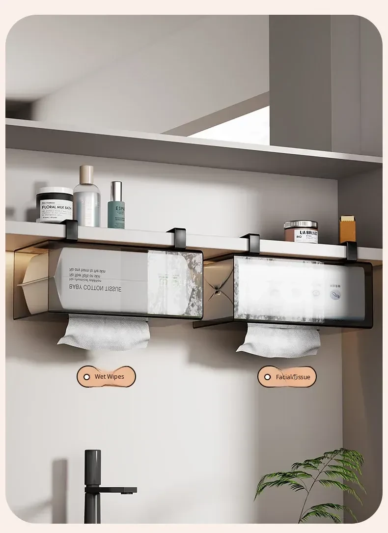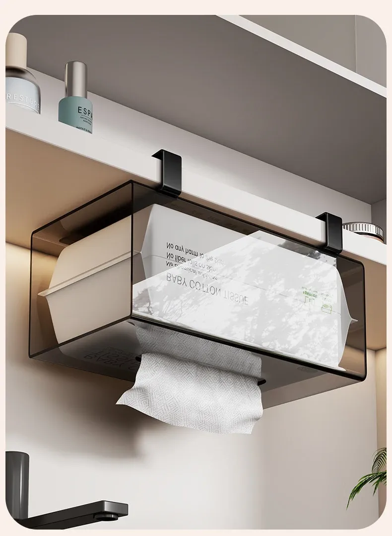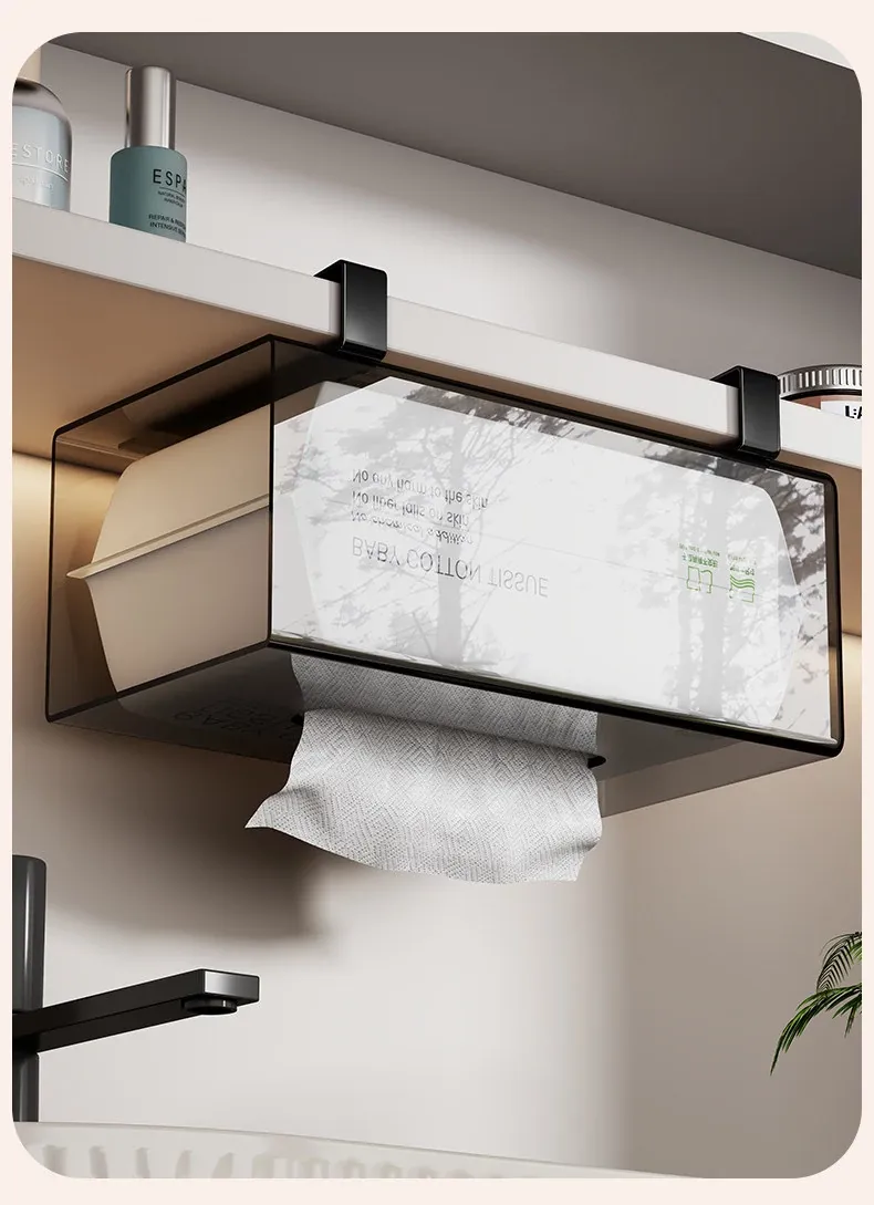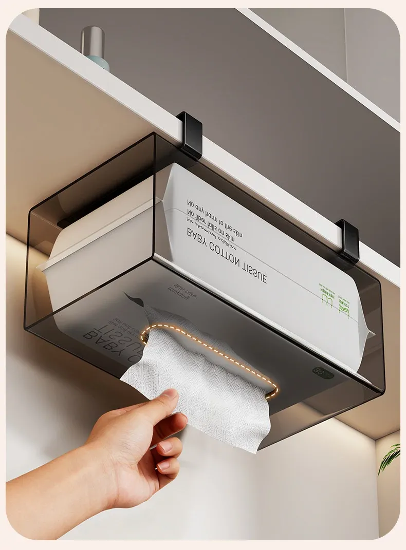 Wall-Mounted Tissue Holder for Kitchen and Bathroom - No Drill Hanging Storage for Face Towels, Under-Cabinet Organizer, Stylish and Space-Saving Solution