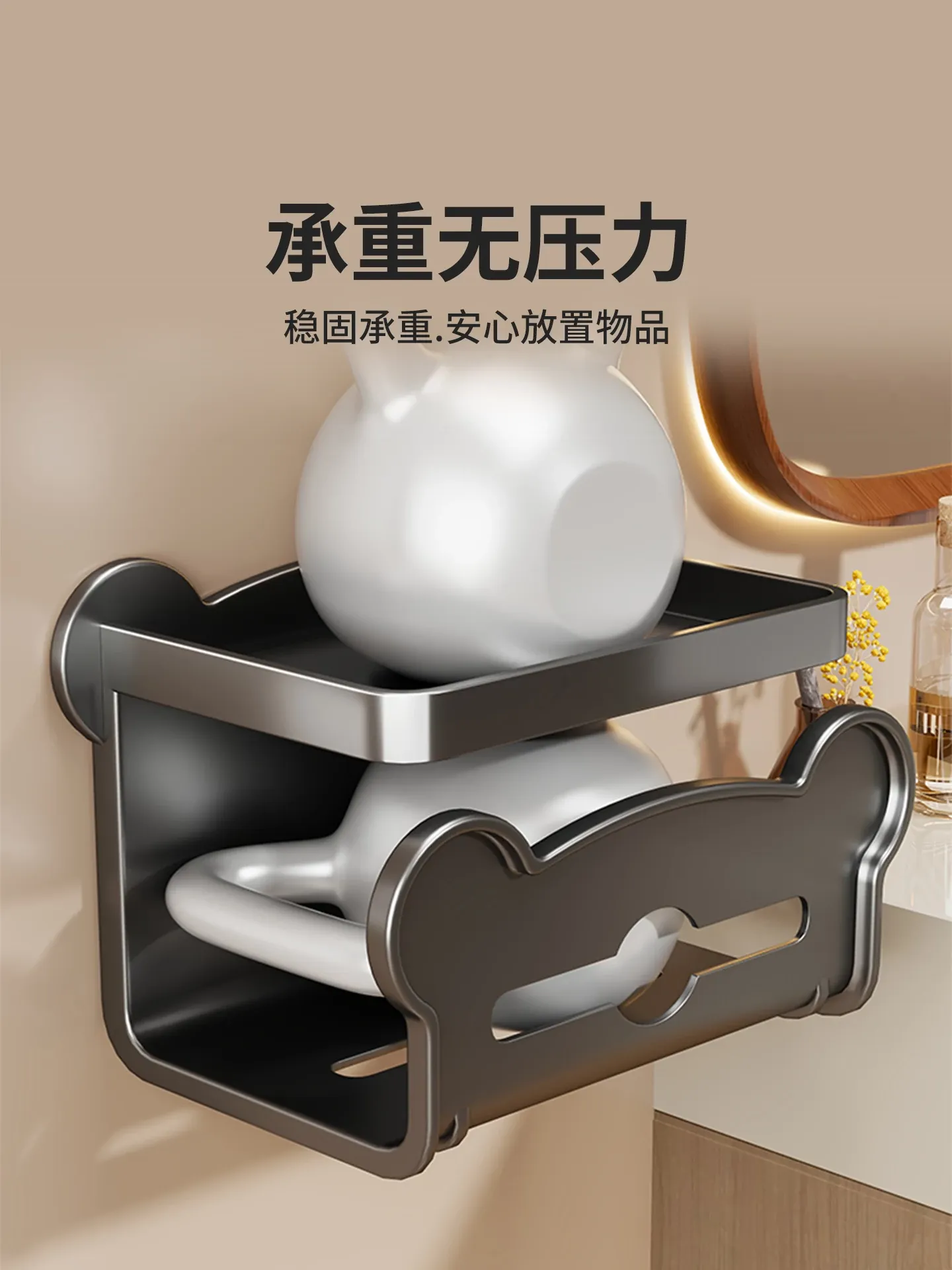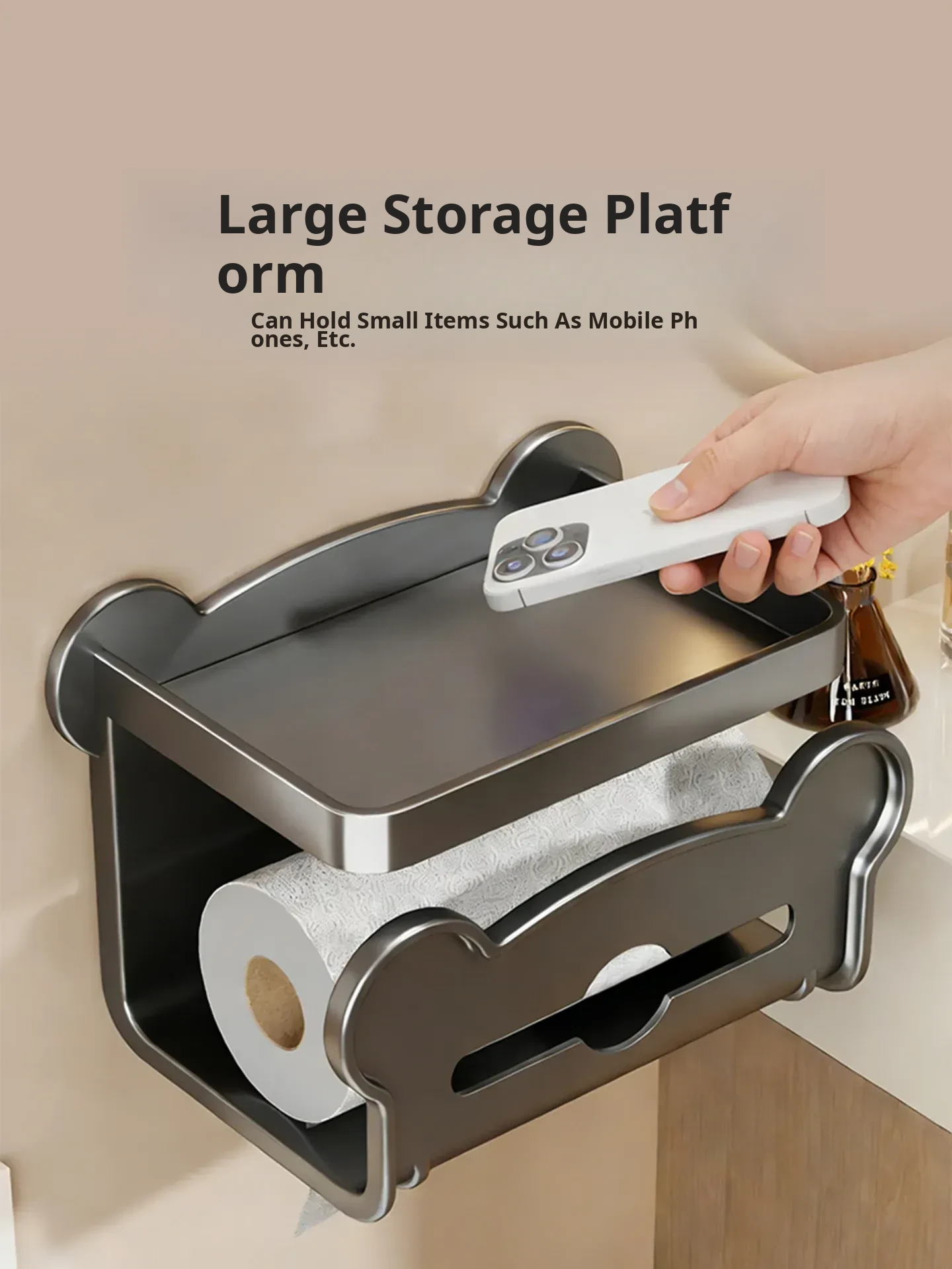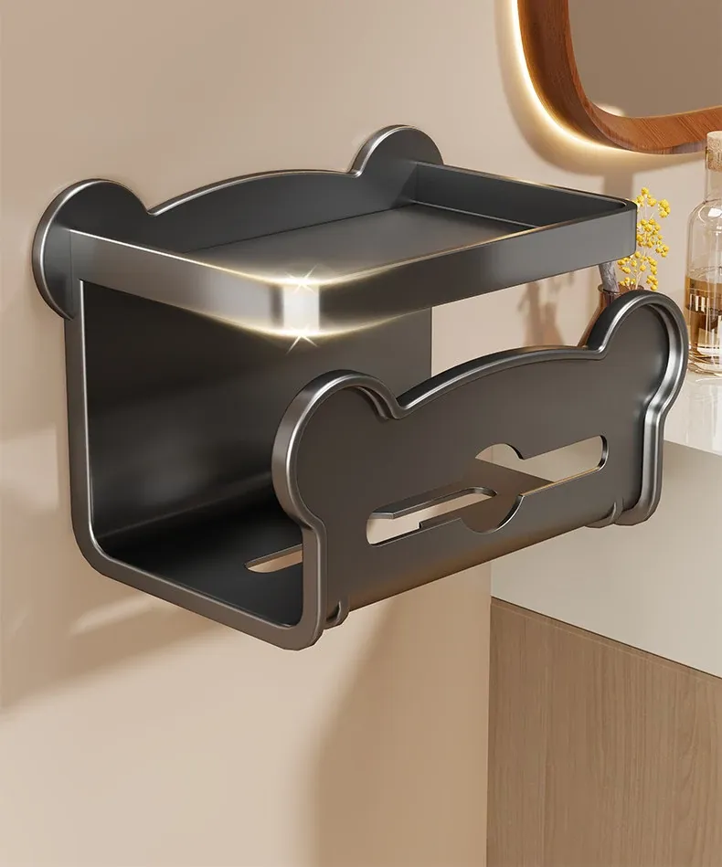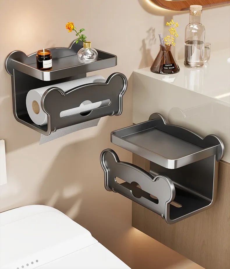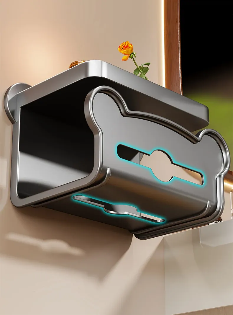 [Gun Gray] Wall-Mounted Double-Drawn Paper Towel Holder