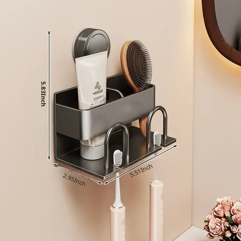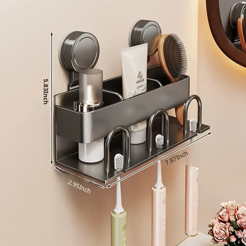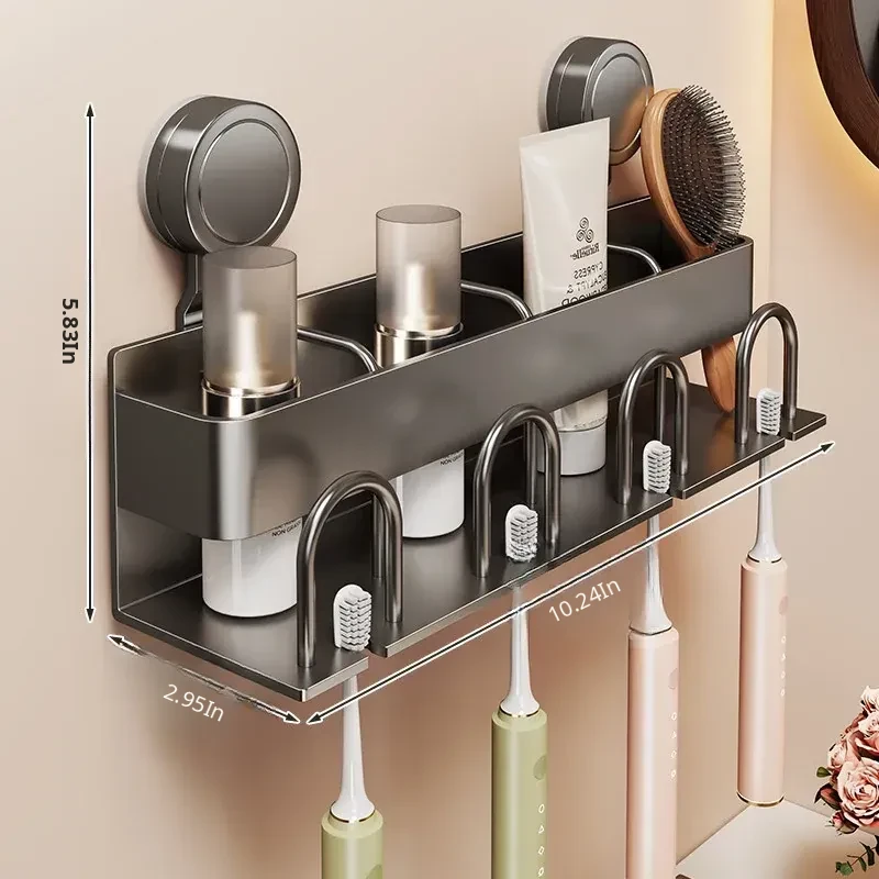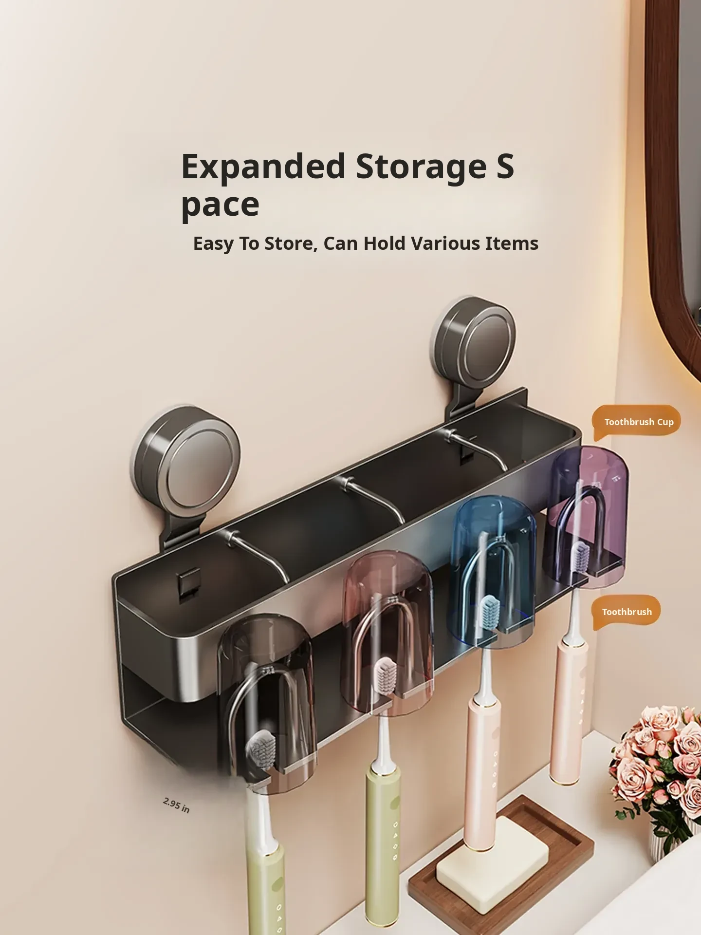 Wall-Mounted Toothbrush Holder with Suction Cup – Perfect for Electric Toothbrushes, Cups, and Mouthwash – Space-Saving Bathroom Organizer for Your Vanity