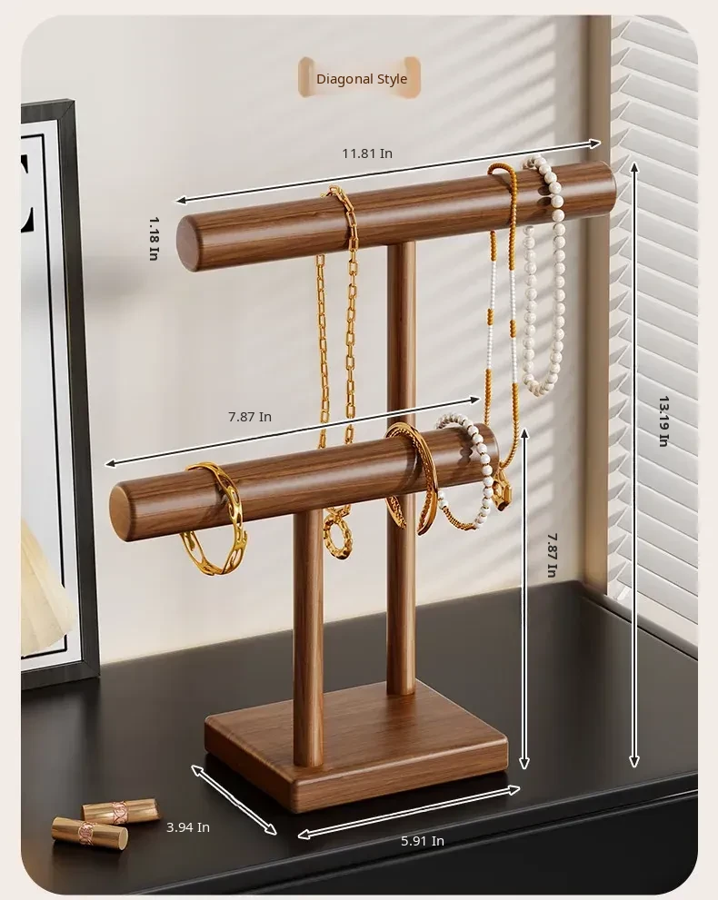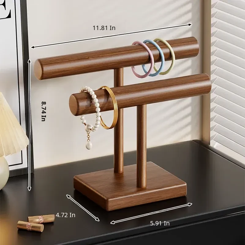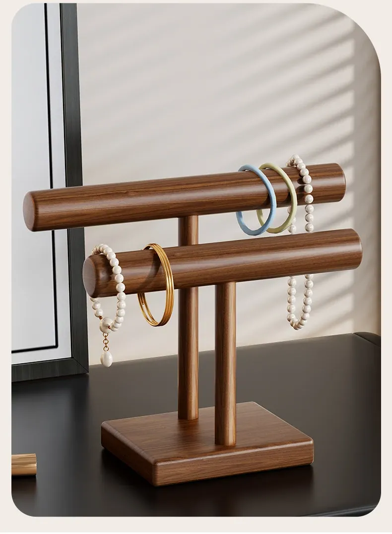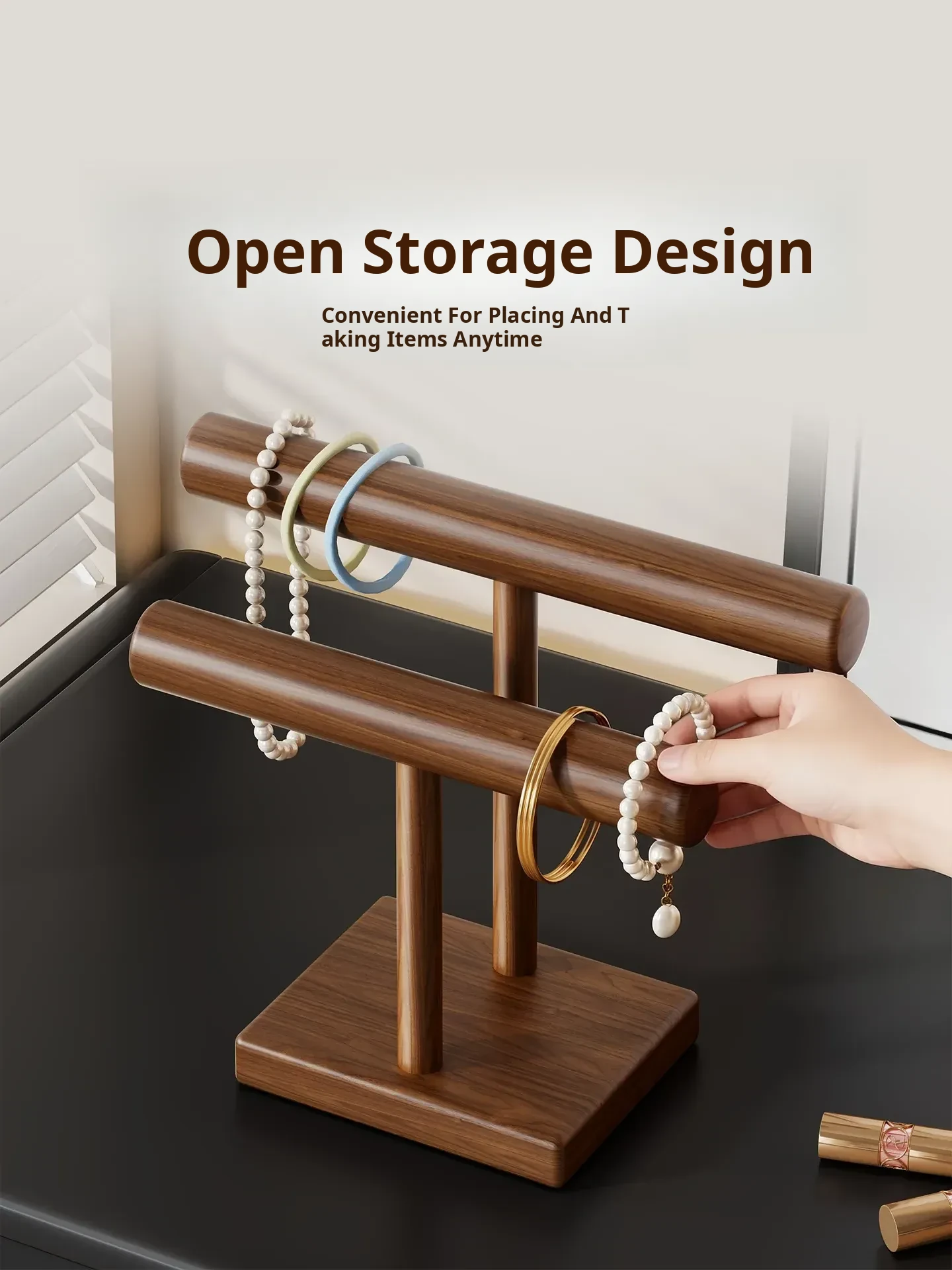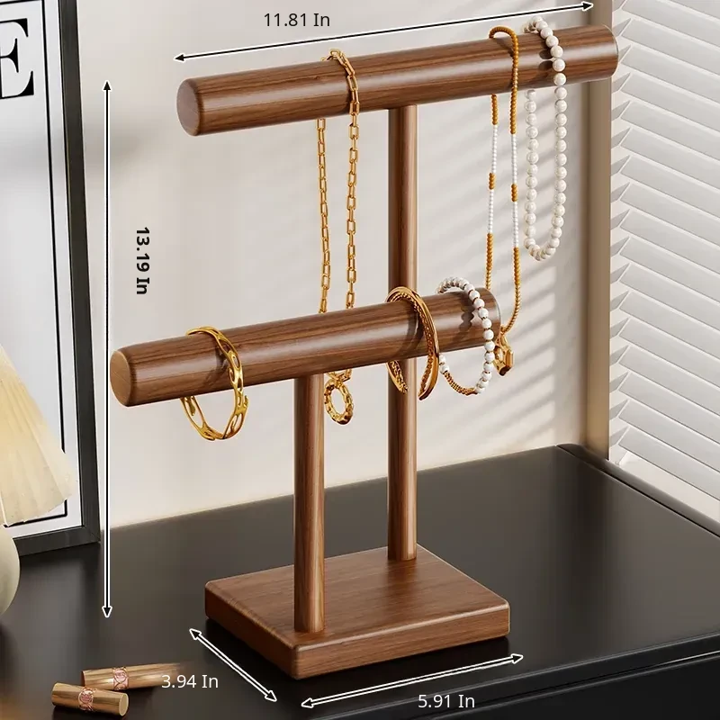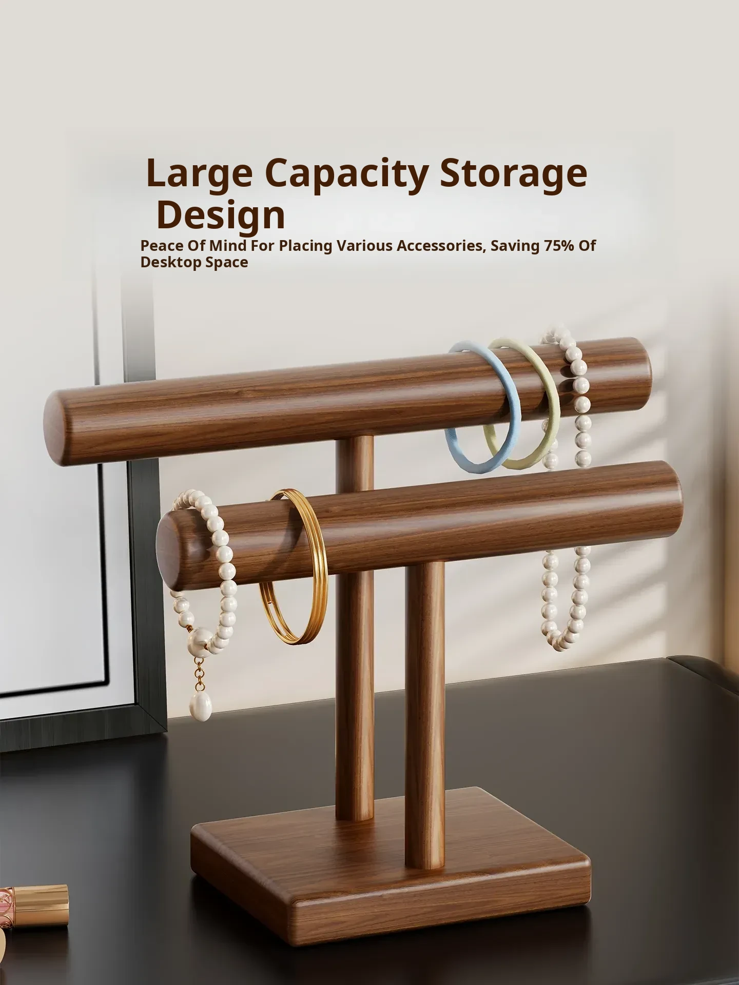 Walnut Wood Double-Layer Jewelry Display Stand - Elegant and Practical Necklace & Bracelet Organizer for Home Use, Perfect for Showcasing Your Accessories