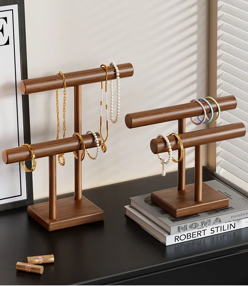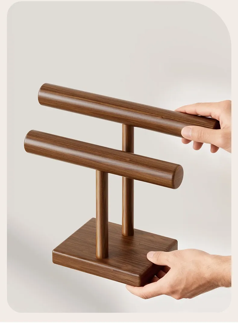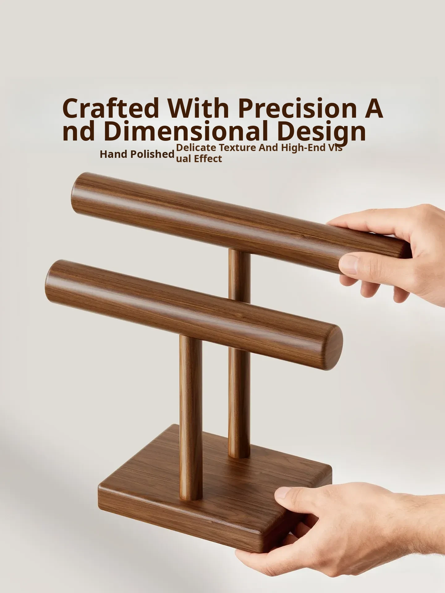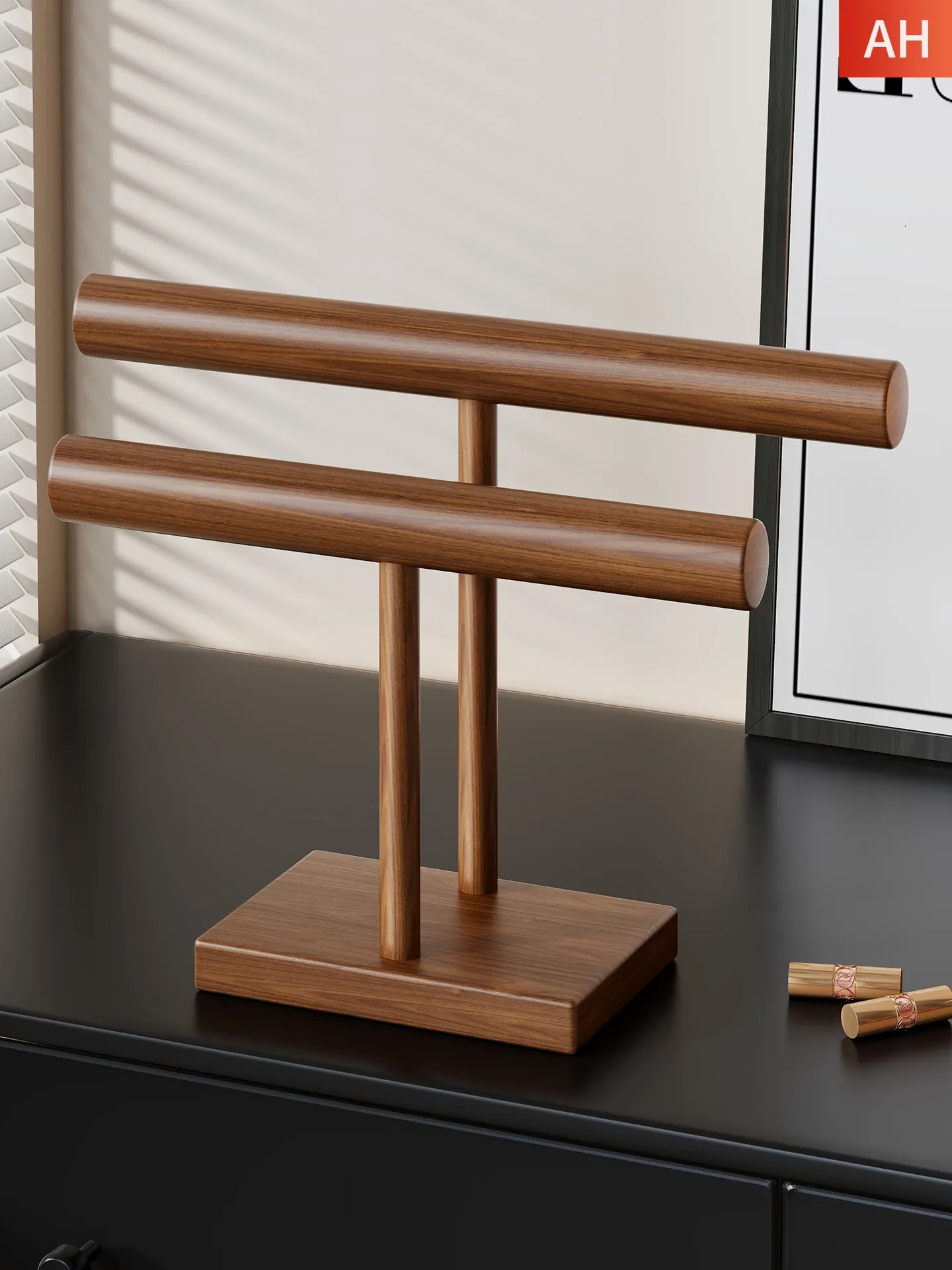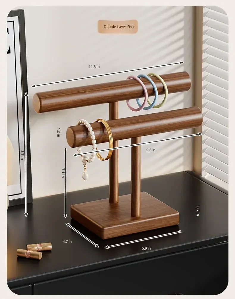 Walnut Wood Double-Layer Jewelry Display Stand - Elegant and Practical Necklace & Bracelet Organizer for Home Use, Perfect for Showcasing Your Accessories