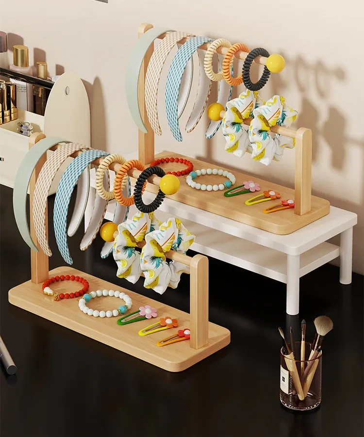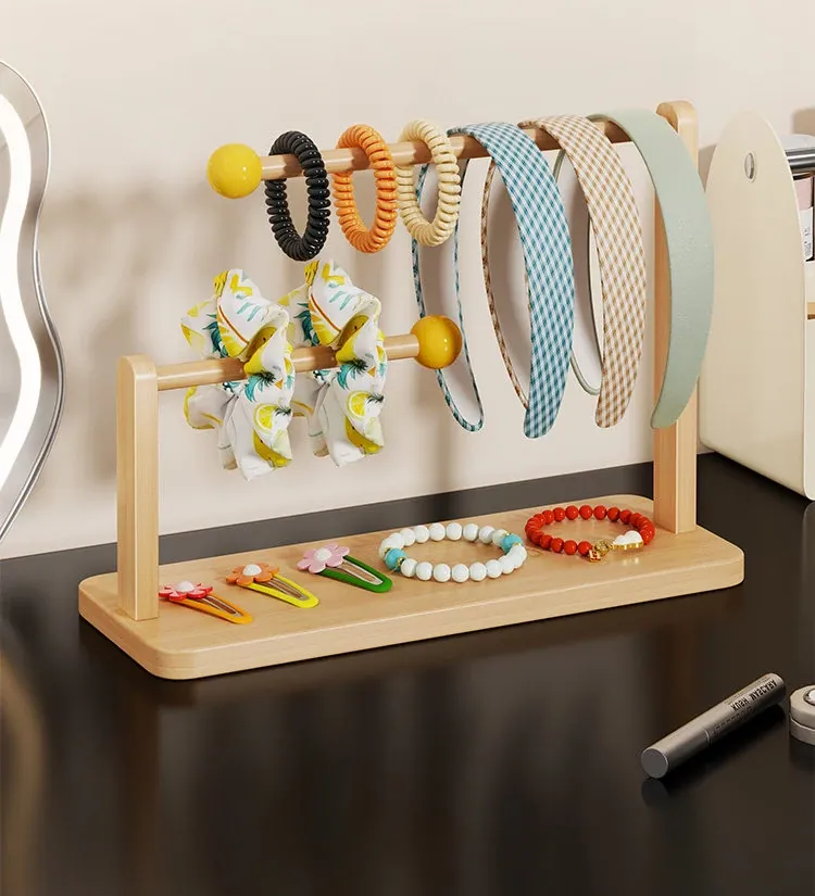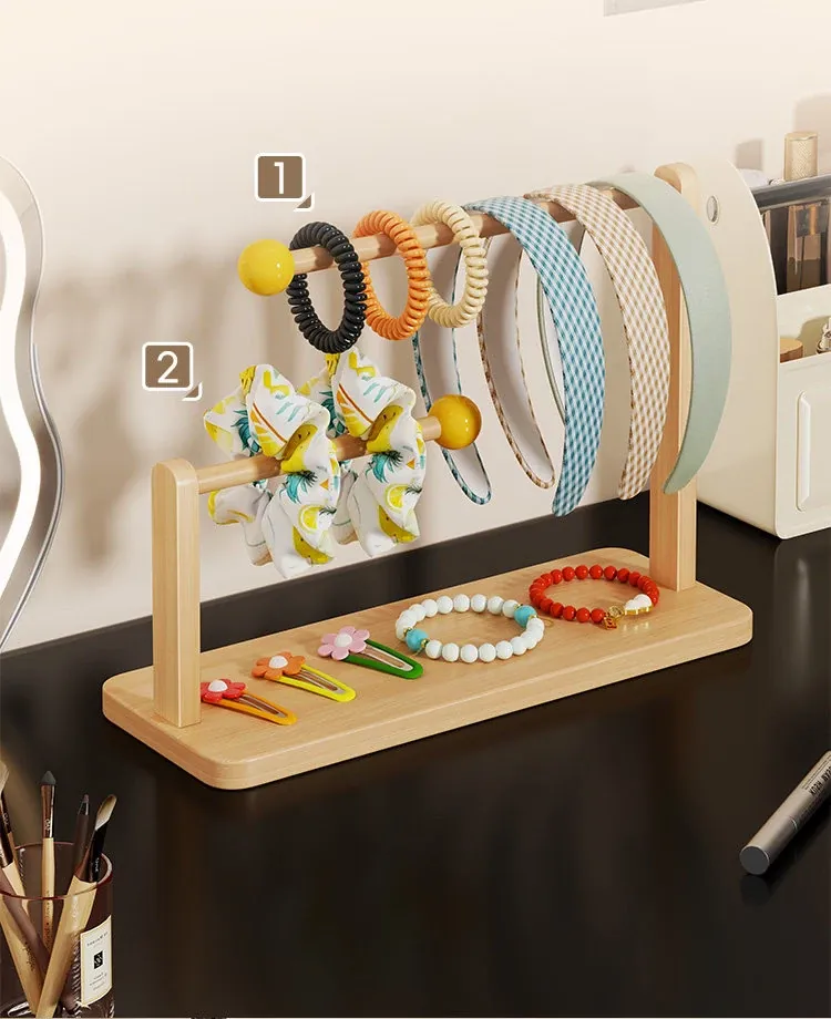 Wooden Desktop Hair Accessory Organizer – Stylish Display Rack for Kids' Hairbands, Clips, and Bracelets – Perfect for Keeping Your Space Tidy and Showcasing Your Favorite Accessories!