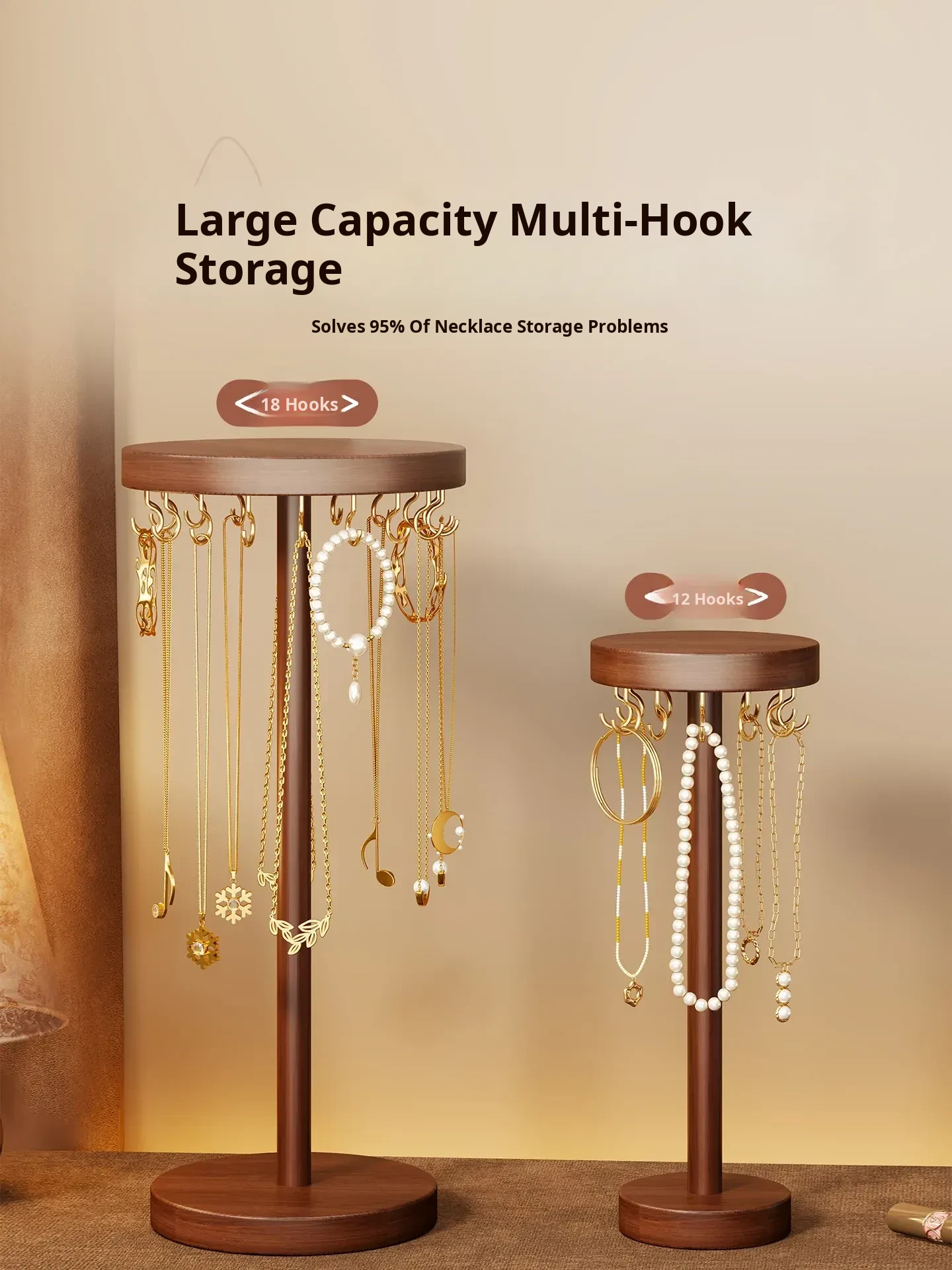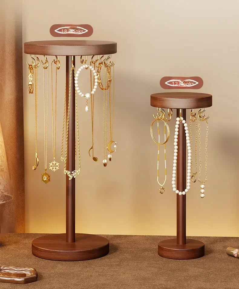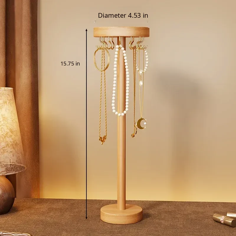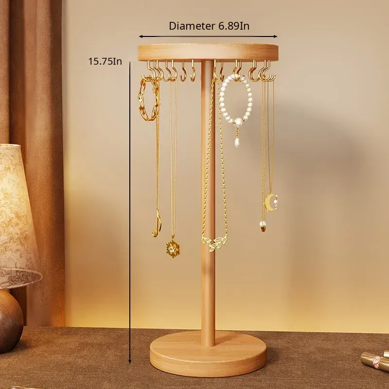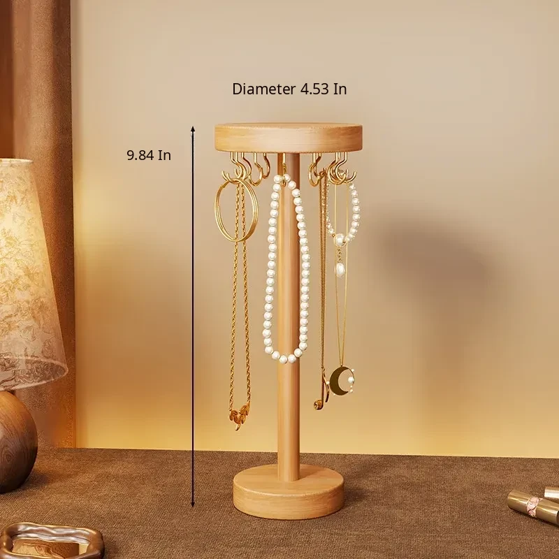 Wooden Jewelry Display Stand - Elegant Necklace and Bracelet Organizer with Hooks for Stylish Showcasing of Accessories - Perfect for Home or Retail Use