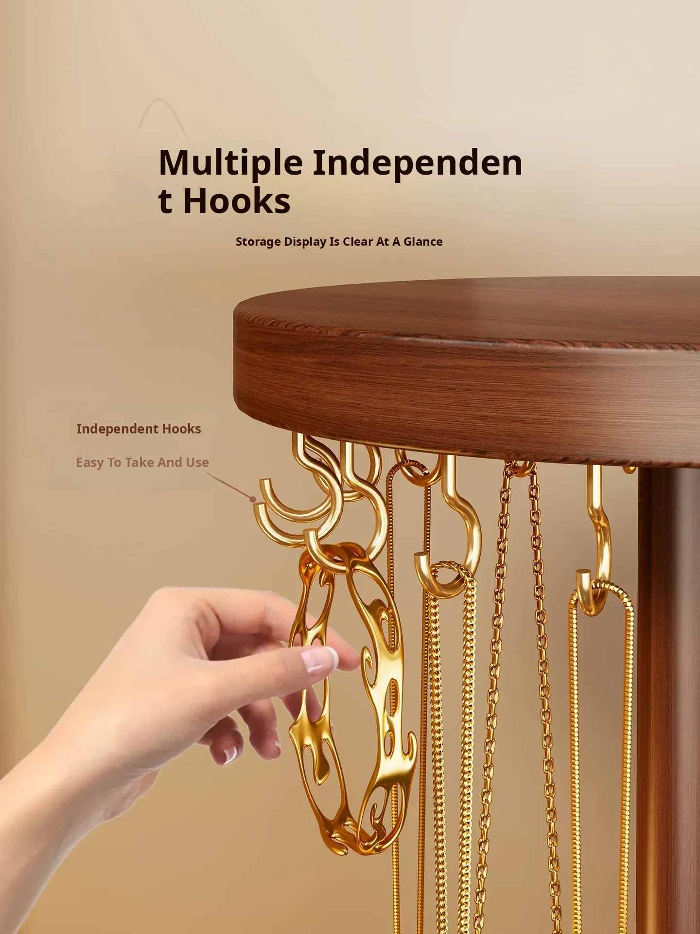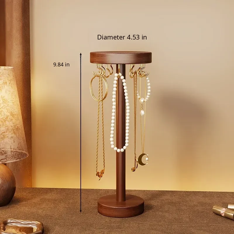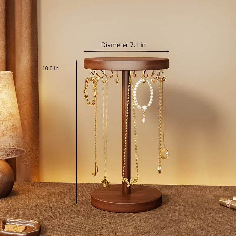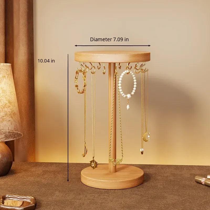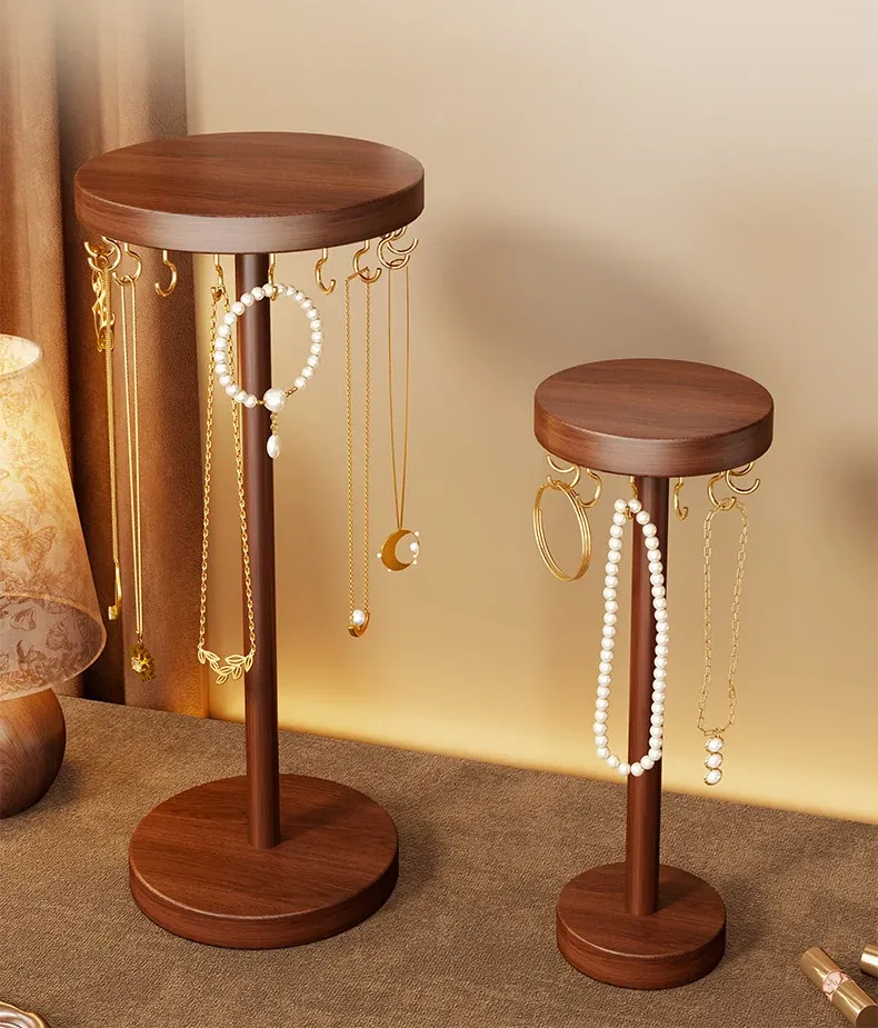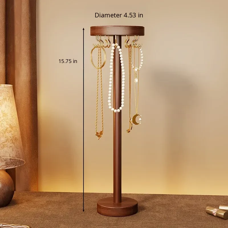 Wooden Jewelry Display Stand - Elegant Necklace and Bracelet Organizer with Hooks for Stylish Showcasing of Accessories - Perfect for Home or Retail Use