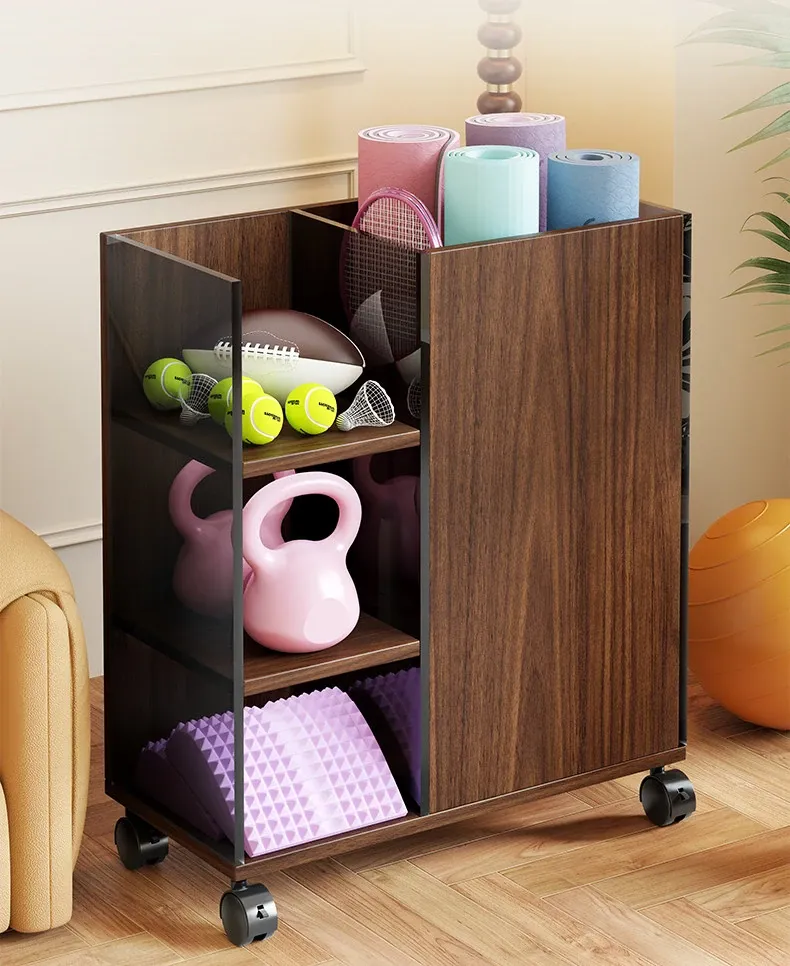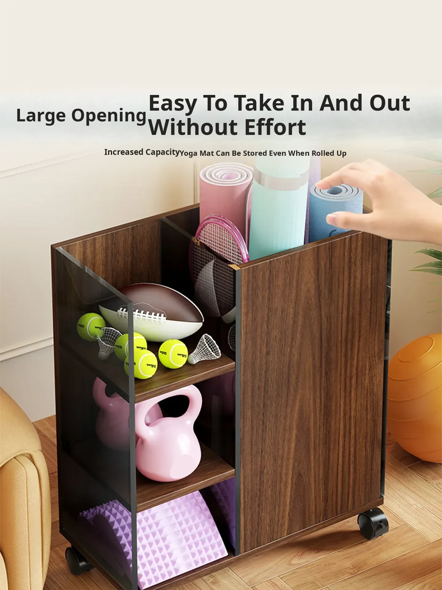 Yoga Mat Storage Basket - Home Organizer for Fitness Equipment and Sports Gear, Perfect for Narrow Spaces, Includes Badminton Racket Holder - Your Ultimate Workout Companion!