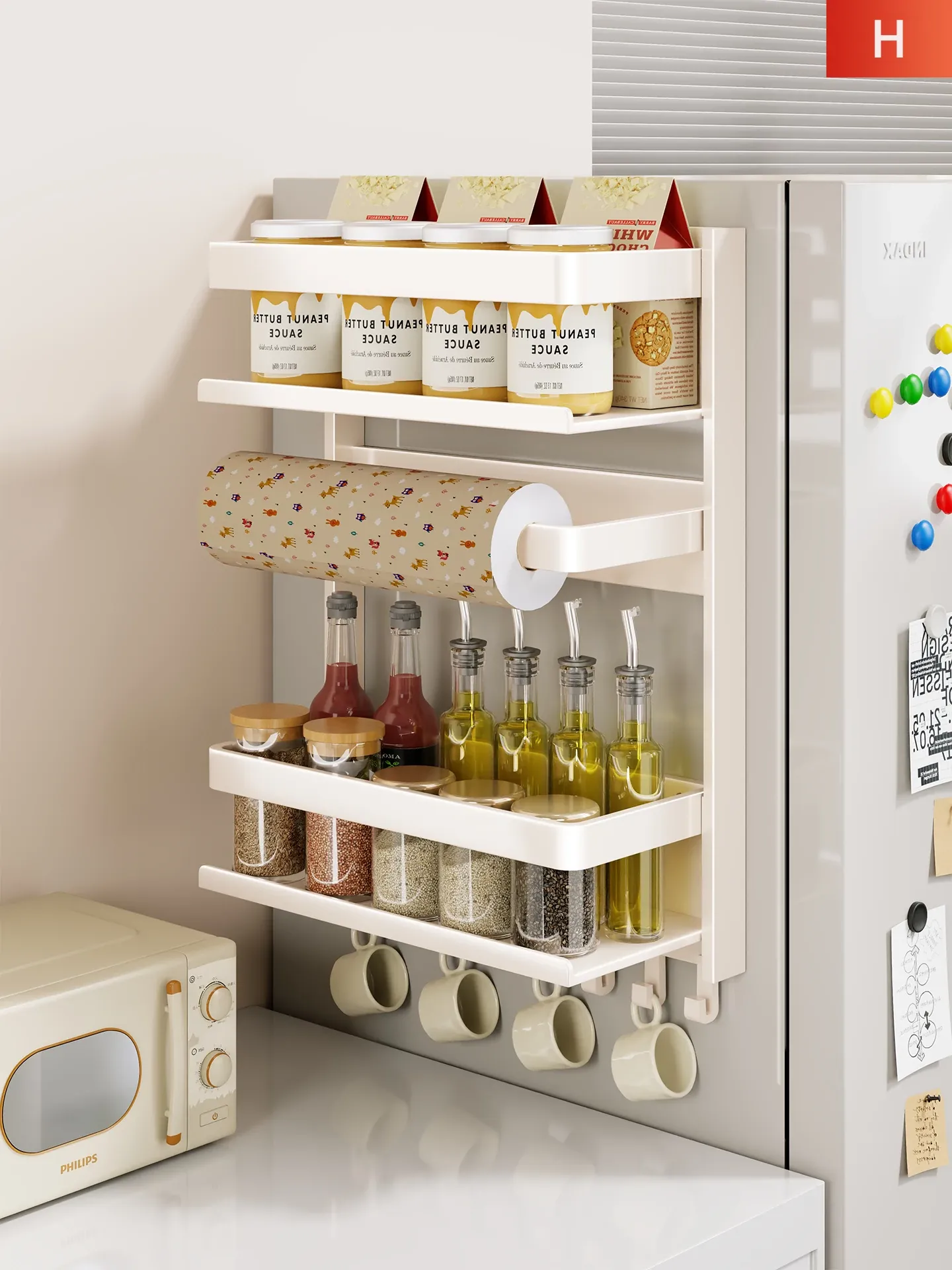 Multi-Functional Wall-Mounted Refrigerator Side Storage Rack - Organize Your Kitchen with This Versatile Spice and Plastic Wrap Holder! Perfect for Maximizing Space and Keeping Your Essentials Within Reach!