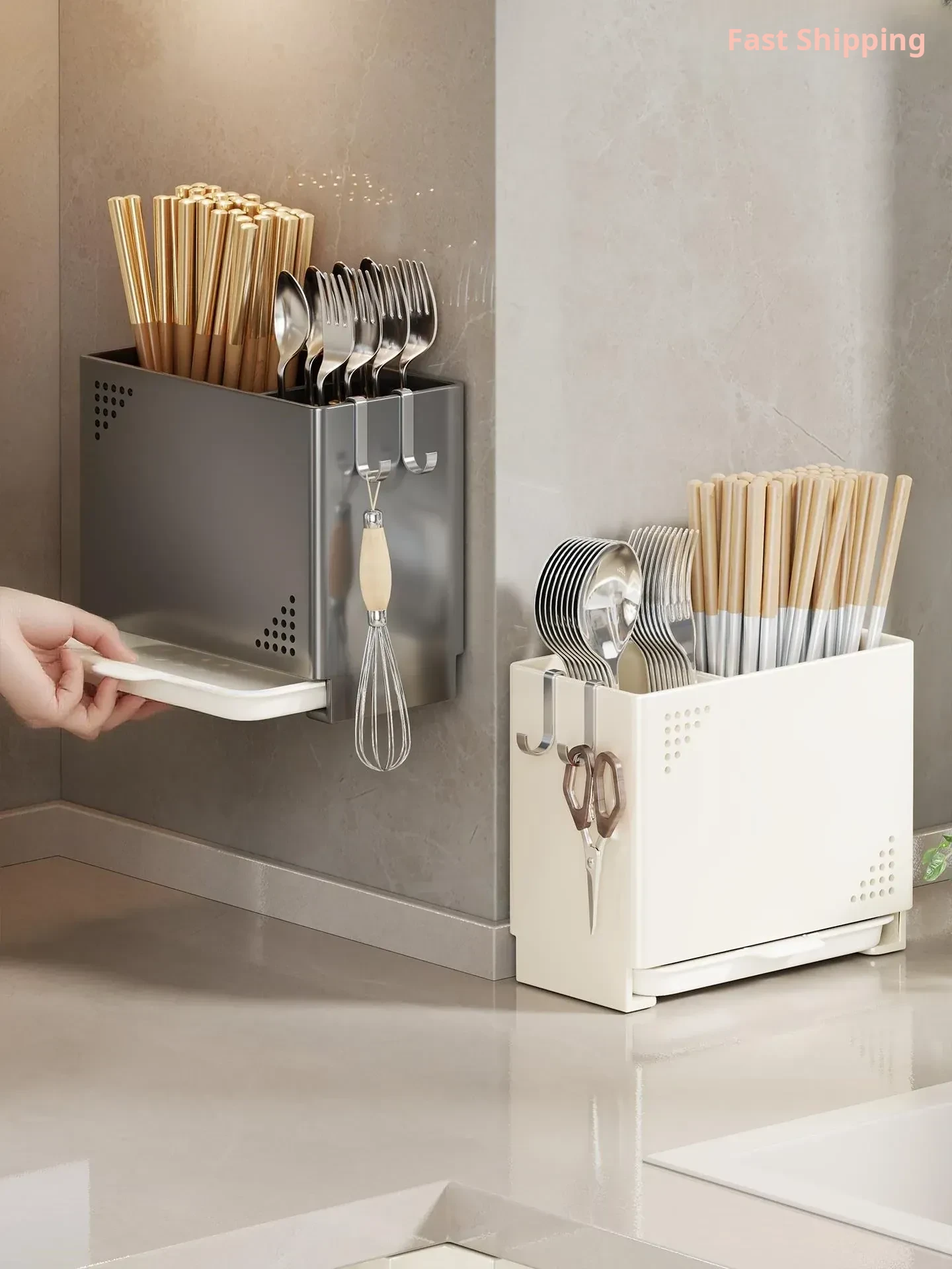Wall-Mounted Kitchen Chopstick Holder - No Drilling Required, Space-Saving Utensil Organizer with Drainage Design for Spoons and Chopsticks, Perfect for Home Use