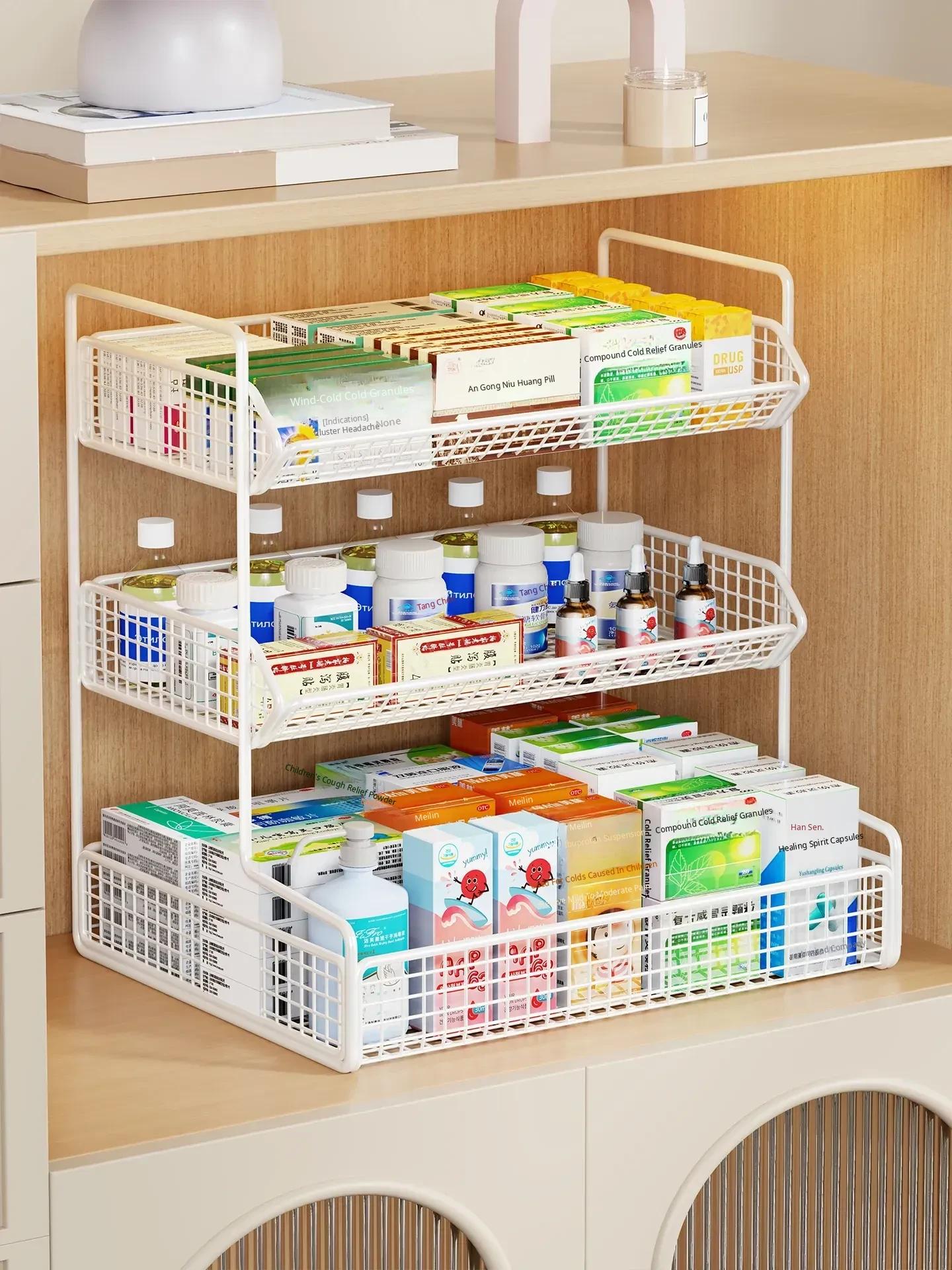Home Desktop Medicine Cabinet Organizer - Large Capacity Tiered Storage Rack for Pill Bottles and Medications, Perfect for Neat and Efficient Home Organization
