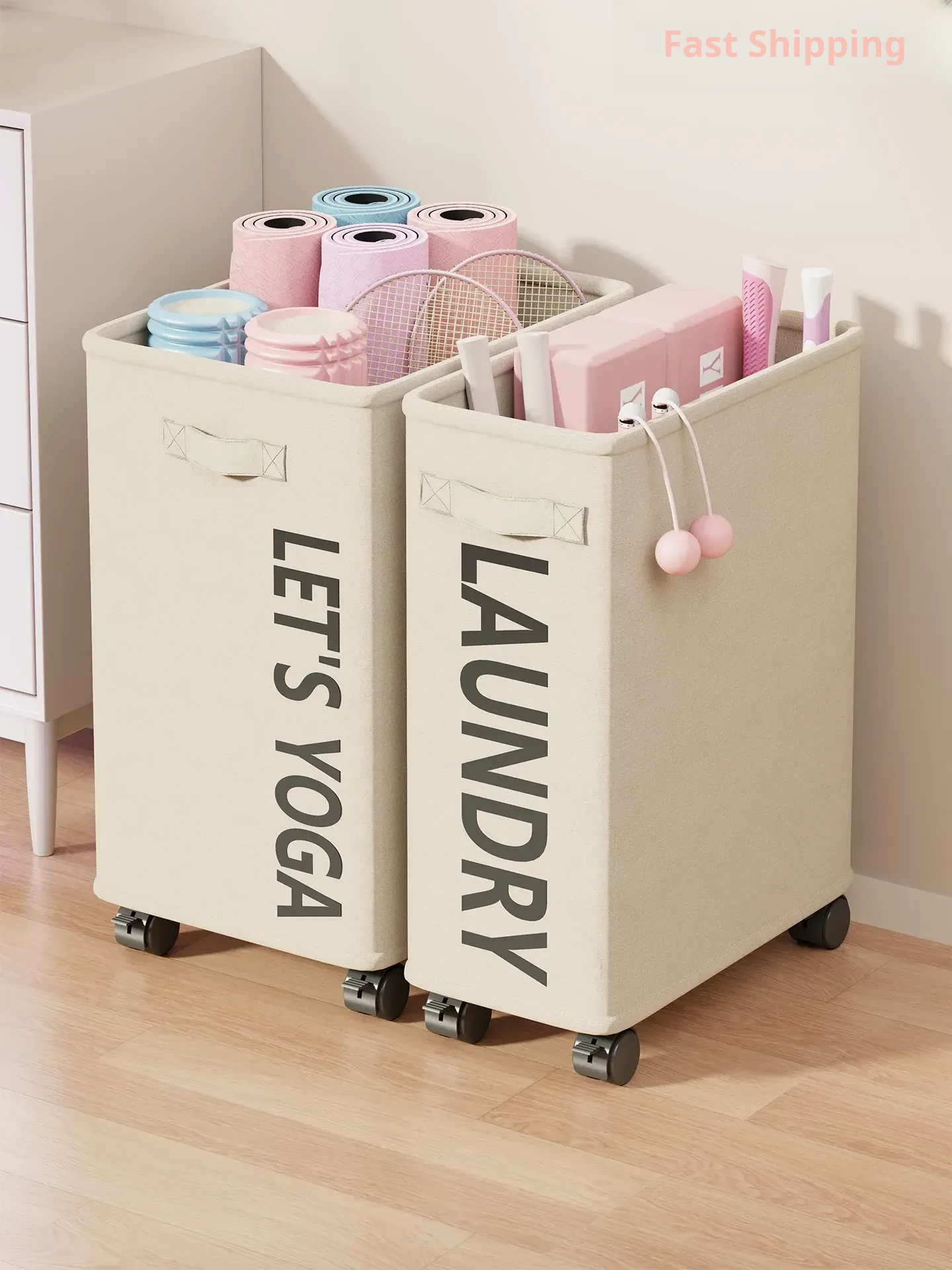Large Capacity Yoga Mat Storage Basket with Wheels - Portable Organizer for Badminton Rackets and Fitness Equipment, Perfect for Home Use!