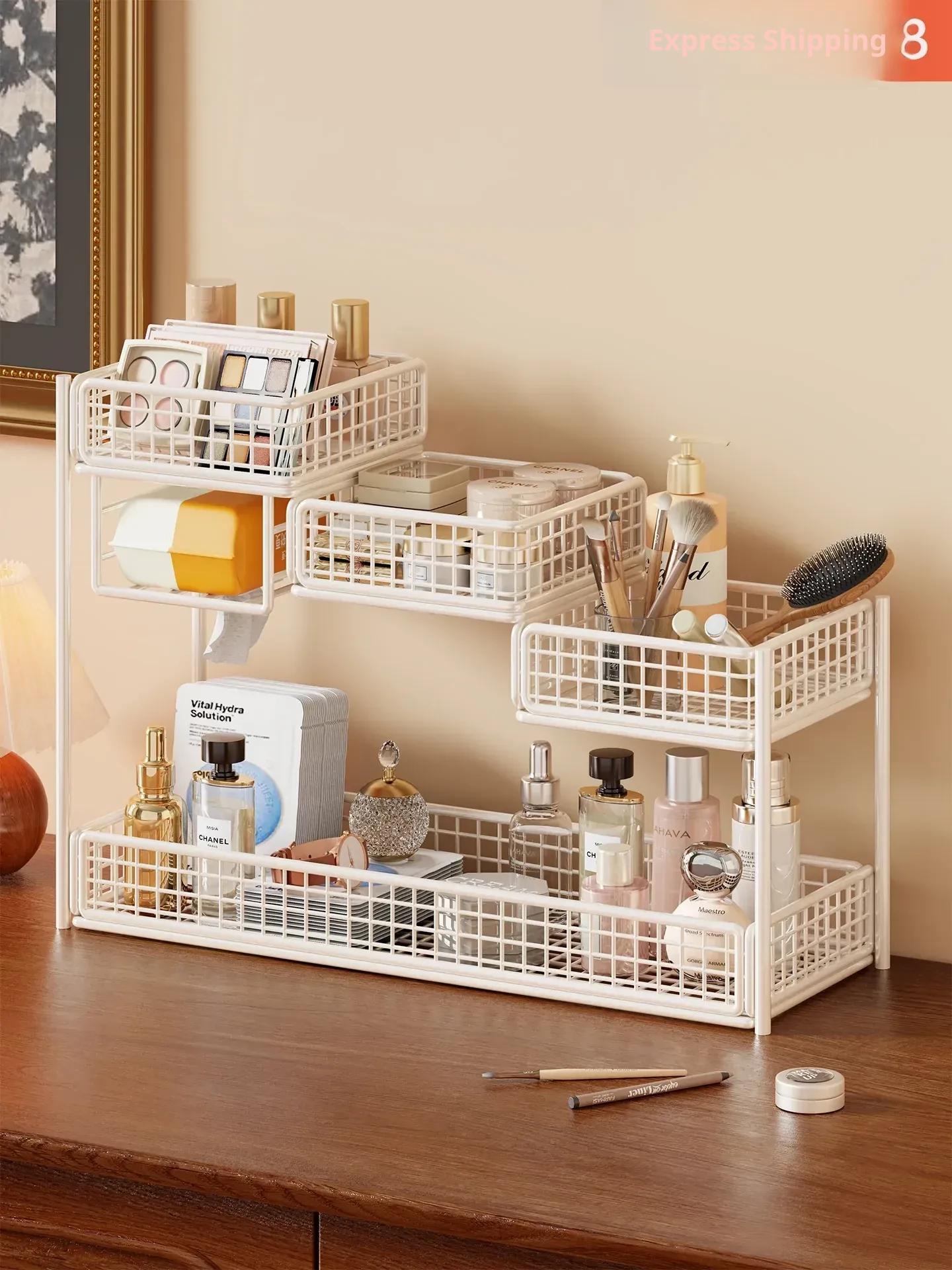Multi-Tier Makeup Organizer & Skincare Storage Box with Tissue Holder - Stylish Vanity Solution for Bathroom and Dressing Table, Perfect for Efficient Space Management!