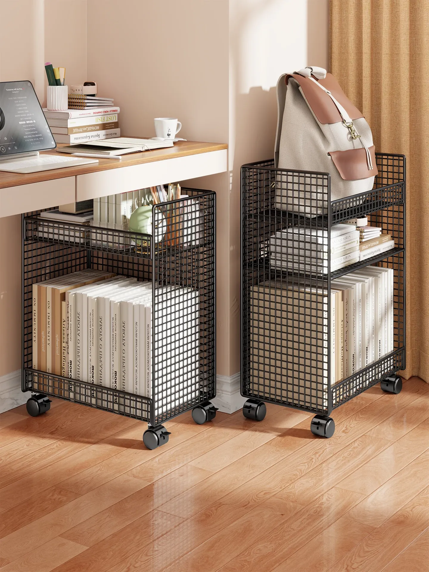 Mobile Under-Desk Storage Shelf with Wheels - Multi-Layer Bookshelf Trolley for Organizing Books, Bags, and Miscellaneous Items - Perfect for Home and Office Use!