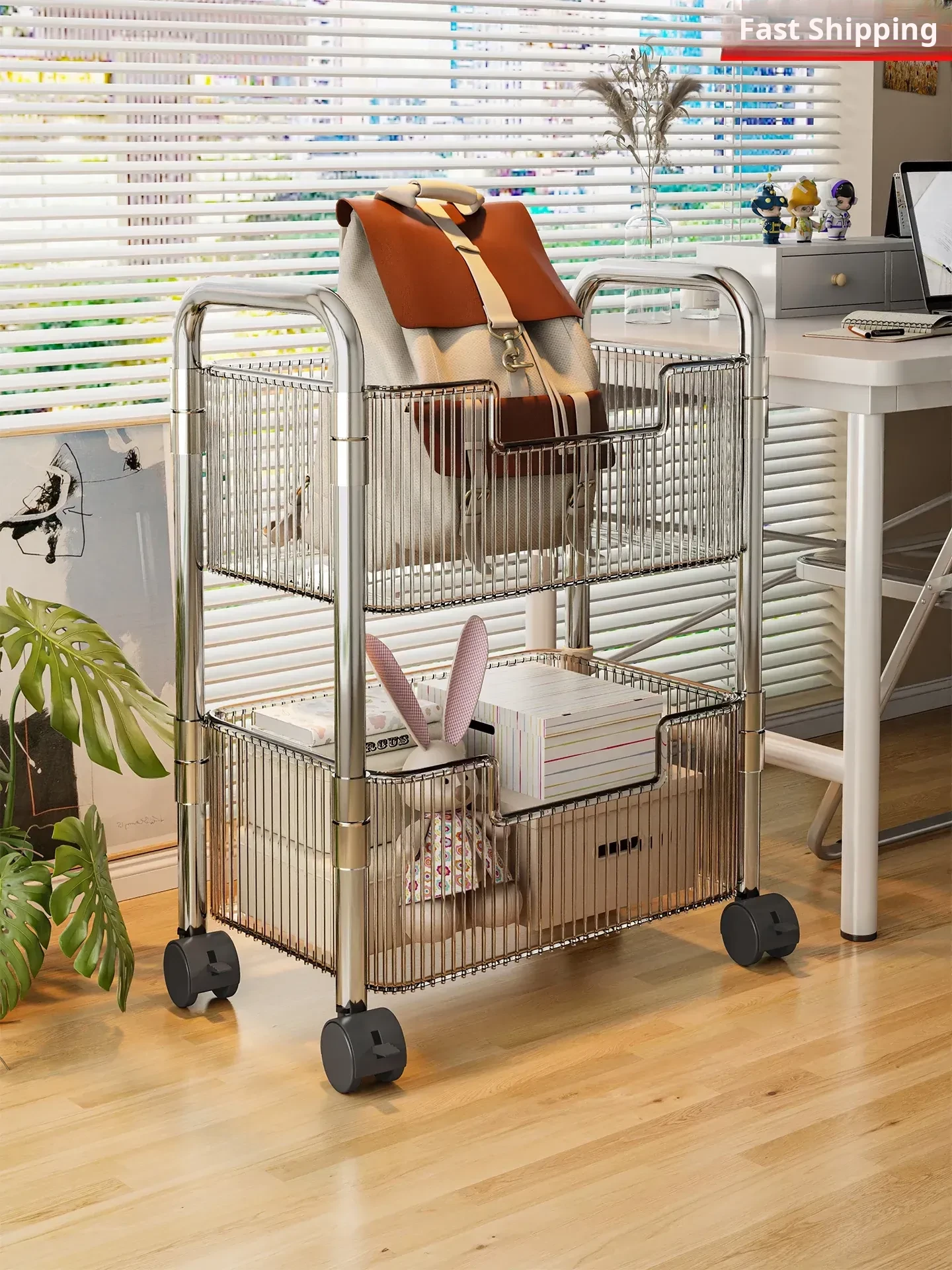 Acrylic Multi-Layer Snack Cart Storage Rack - Mobile Floor Stand for Home Use, Ideal for Organizing Books and Snacks, Space-Saving Design