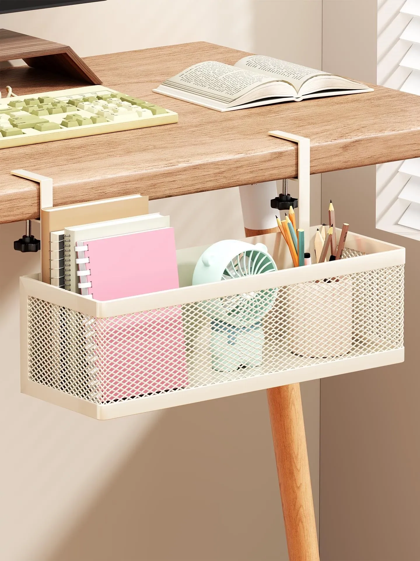 Office Desktop Storage Rack - Hanging Basket Organizer for Workstations, Perfect for Dorm Room Clutter Management, Keep Your Workspace Tidy and Efficient!