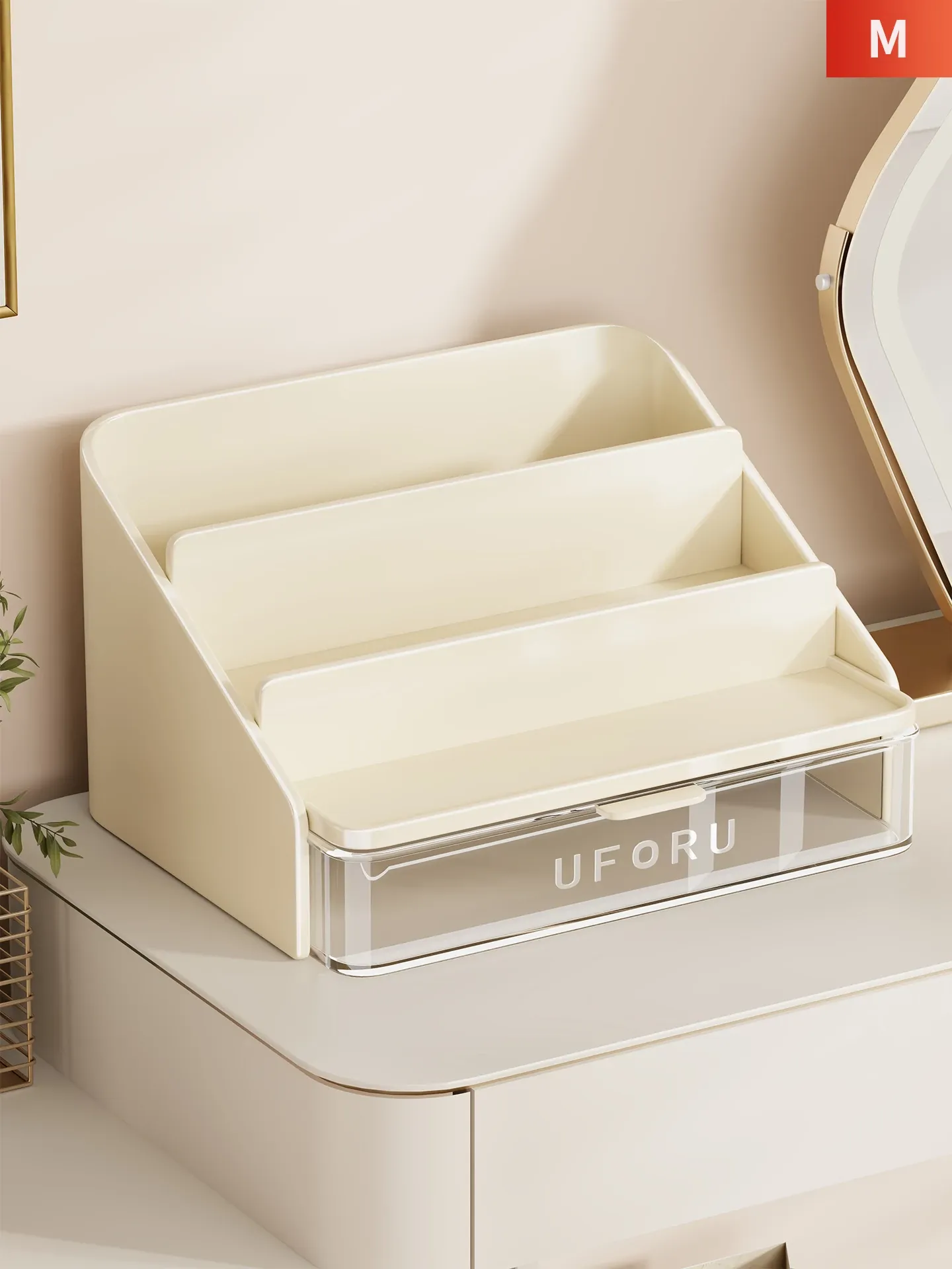 Trapezoidal Desktop Makeup Organizer with Drawers - Essential Skincare and Eyeshadow Palette Storage Solution for Your Vanity