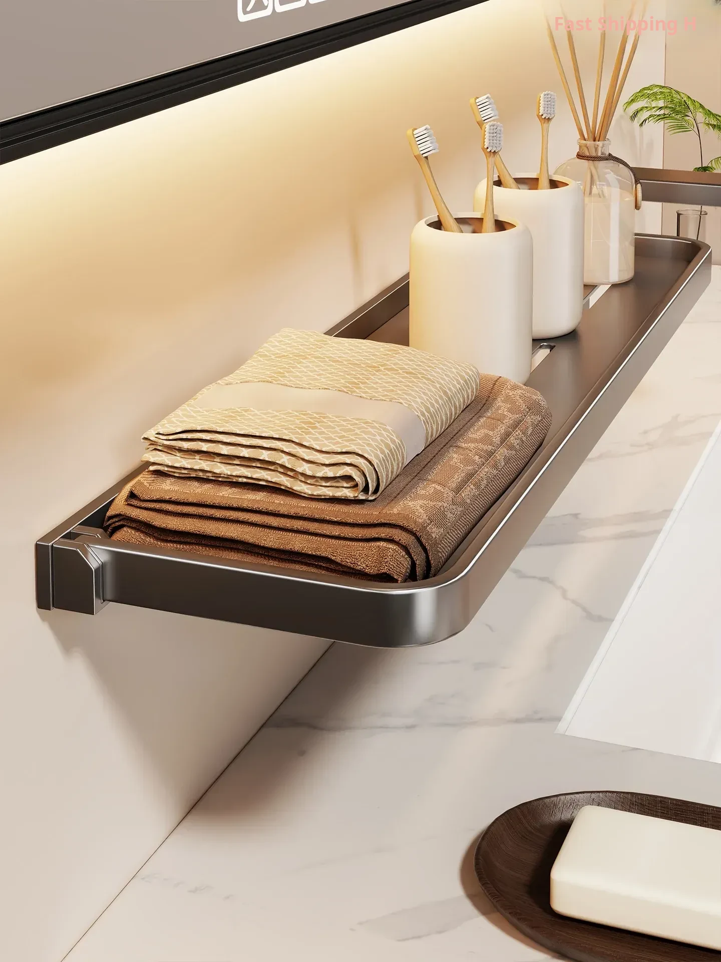 Foldable Bathroom Storage Shelf - Wall-Mounted, No Drill, Space-Saving Organizer for Vanity and Sink Area, Ideal for Makeup and Toiletries - Perfect for Small Bathrooms
