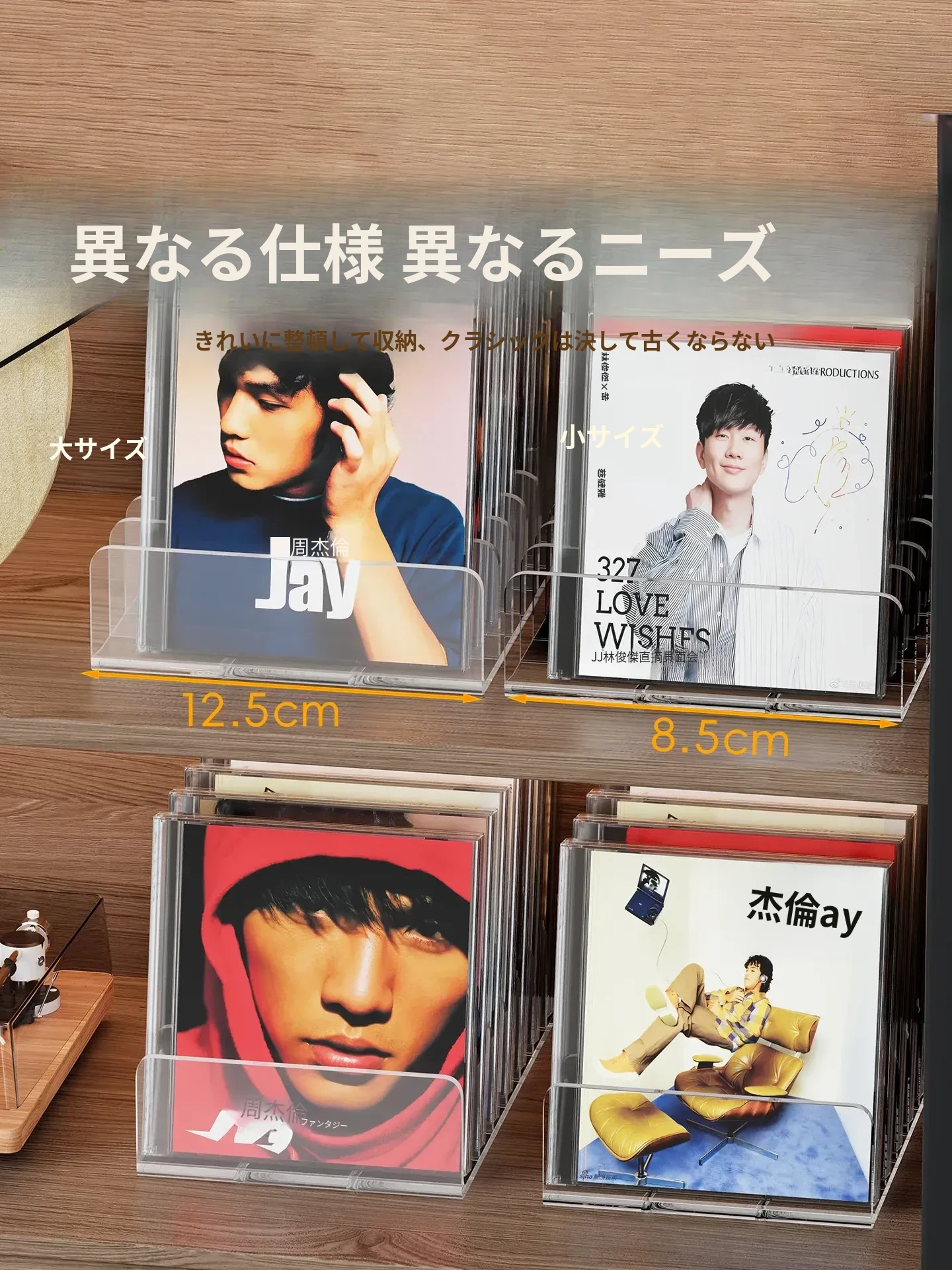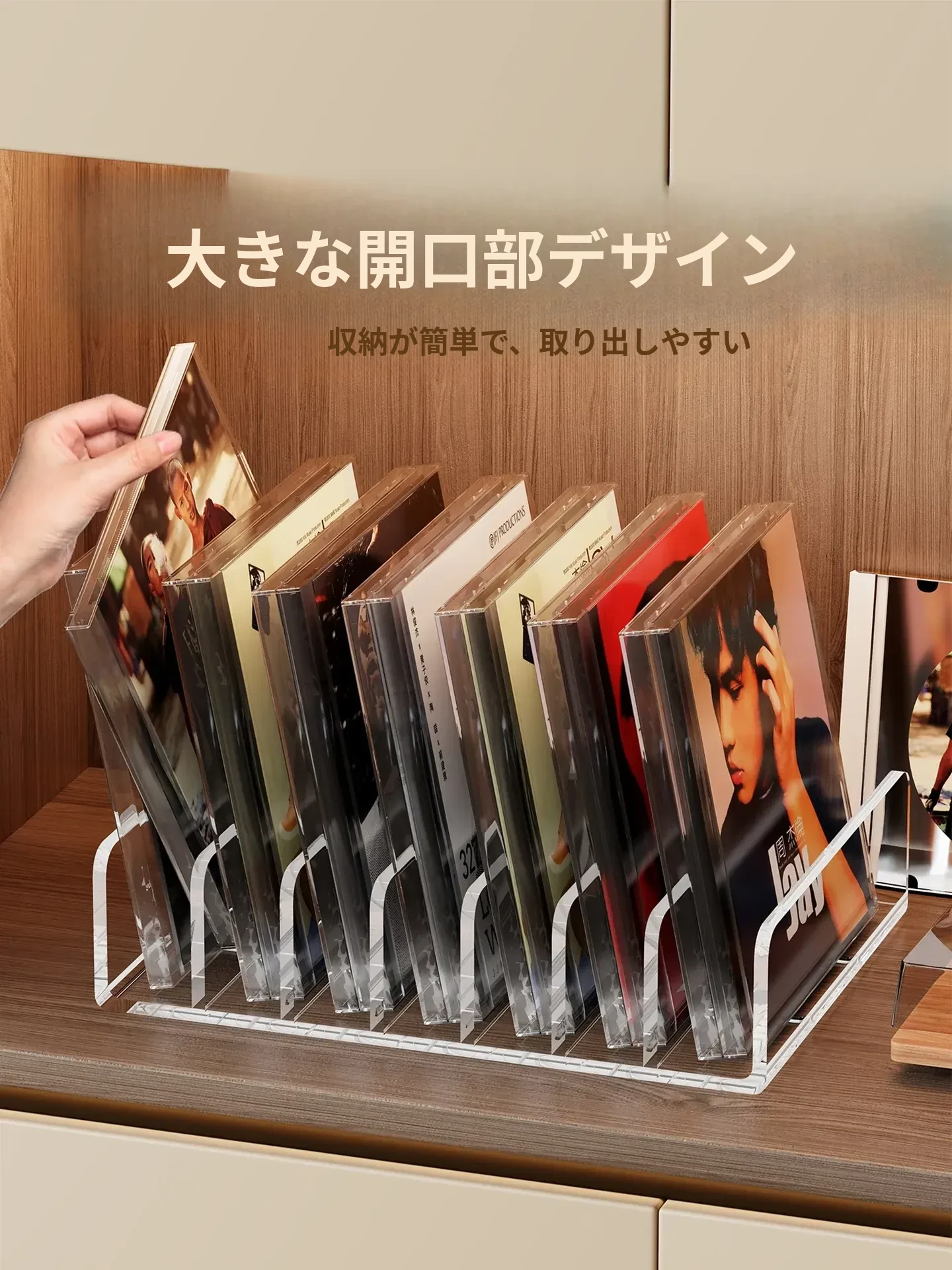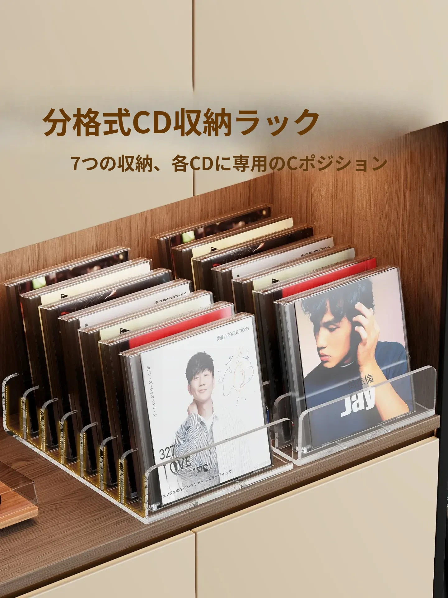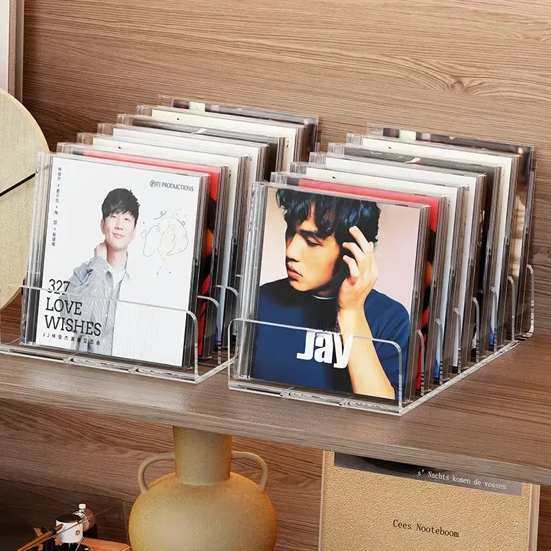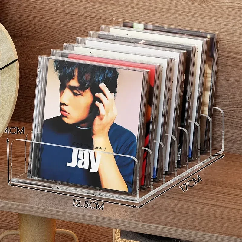 CD展示ラック デスクトップ用 アクリル製アルバム・DVD・テープ・ディスク収納ボックス 分格収納 可愛いインテリアに最適! すっきり整理整頓できる収納ラック!