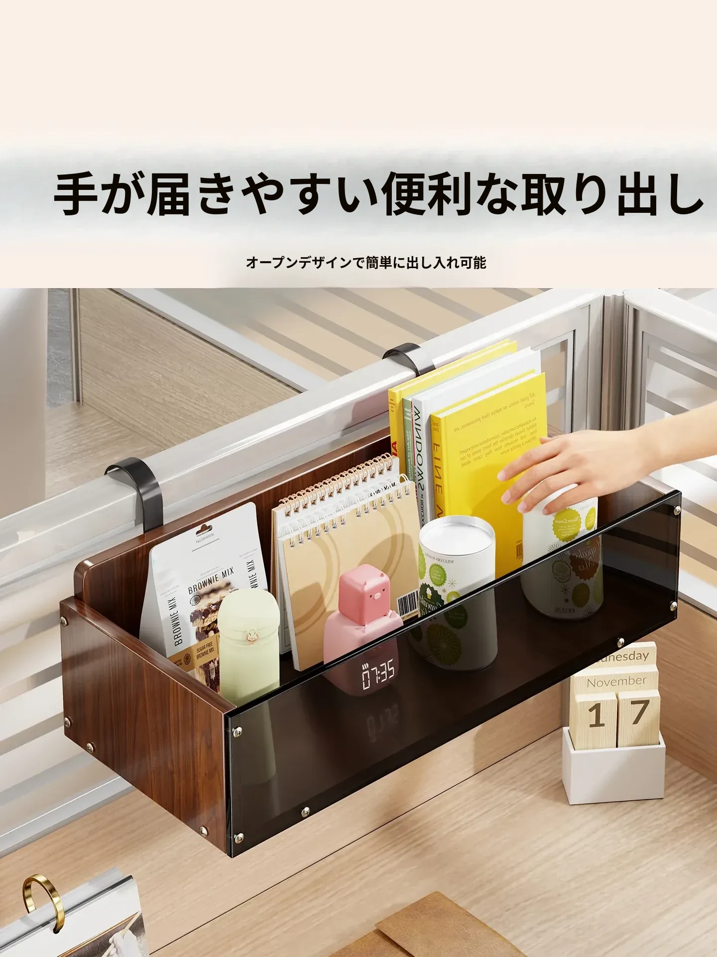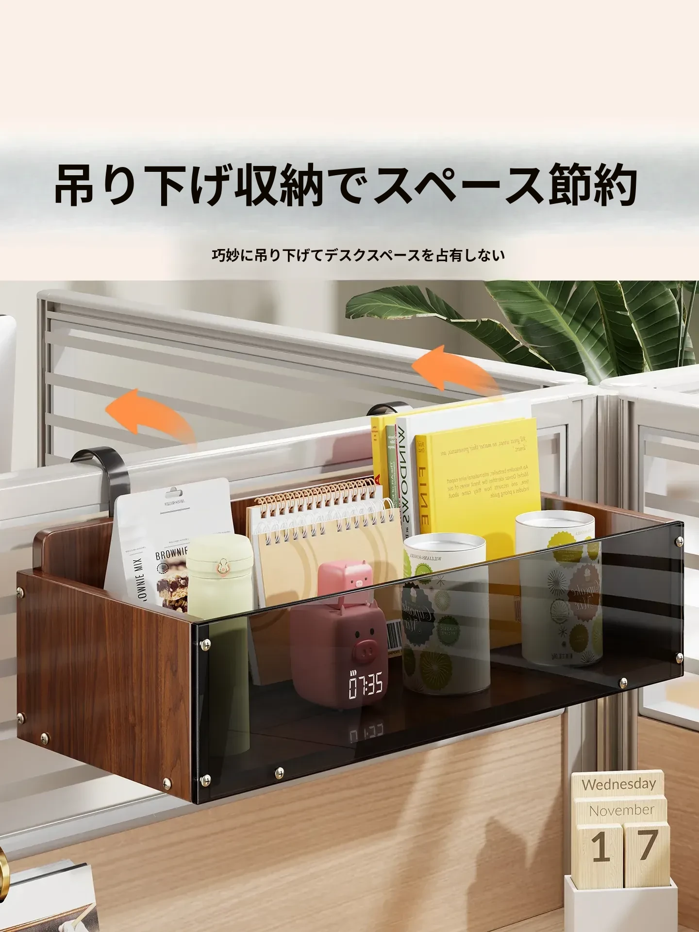 オフィス用アクリル収納ラック デスクトップ吊り下げ整理棚 雑貨ハンギングバスケット 寝室ベッドサイド整理アイテムで、スペースを有効活用し、スッキリとした環境を実現!
