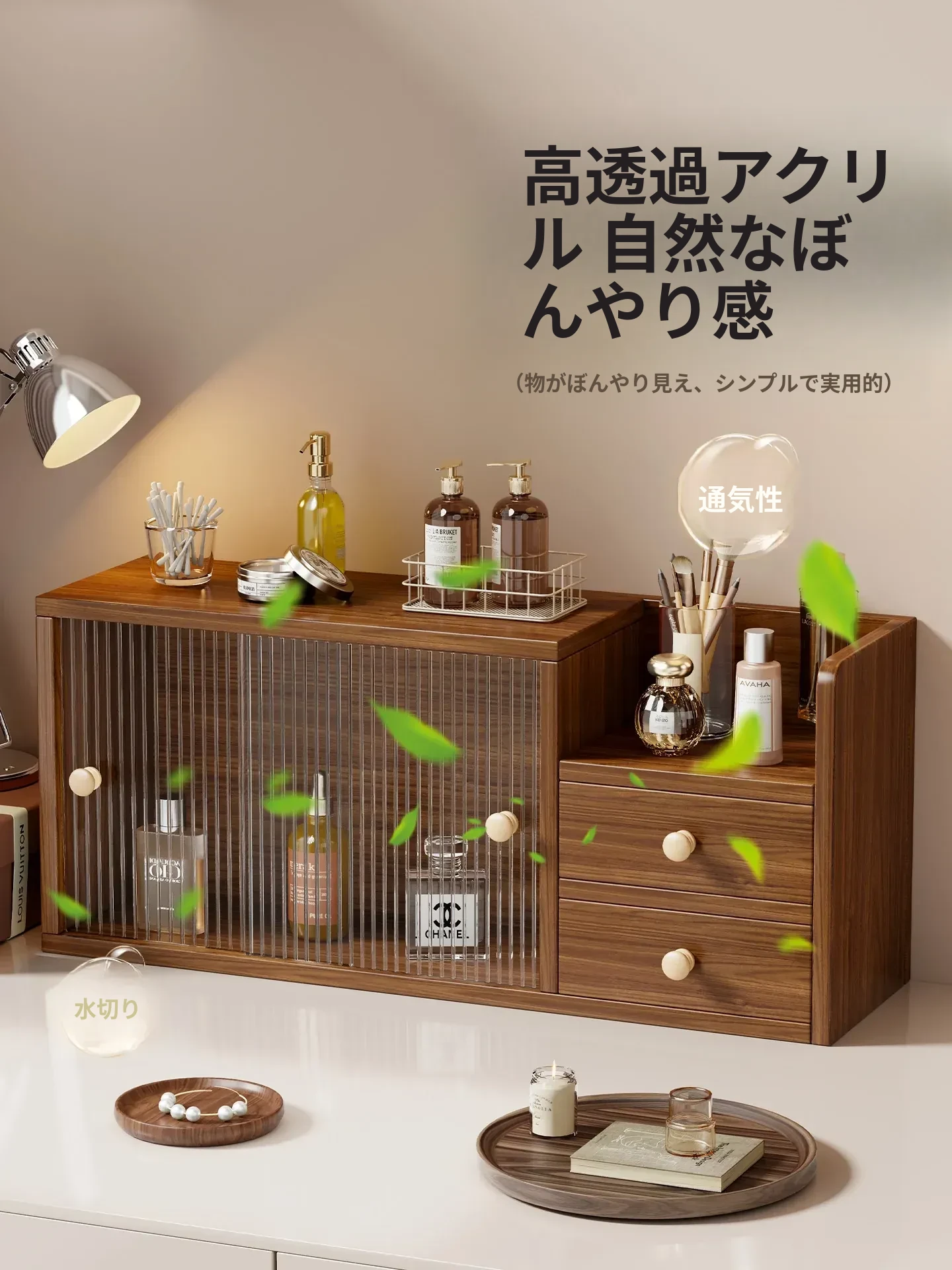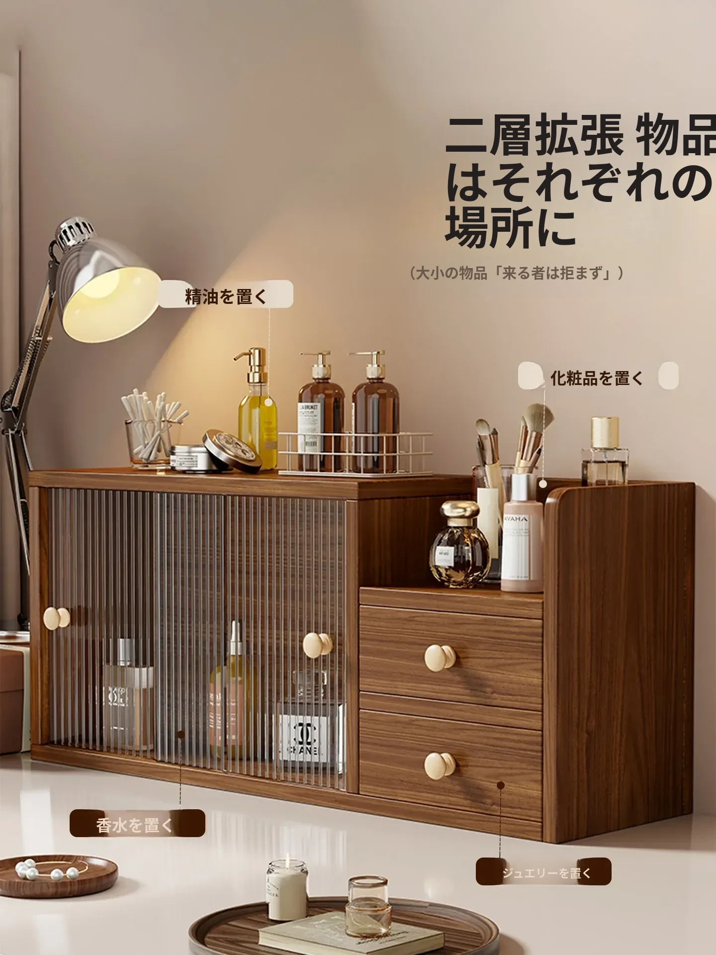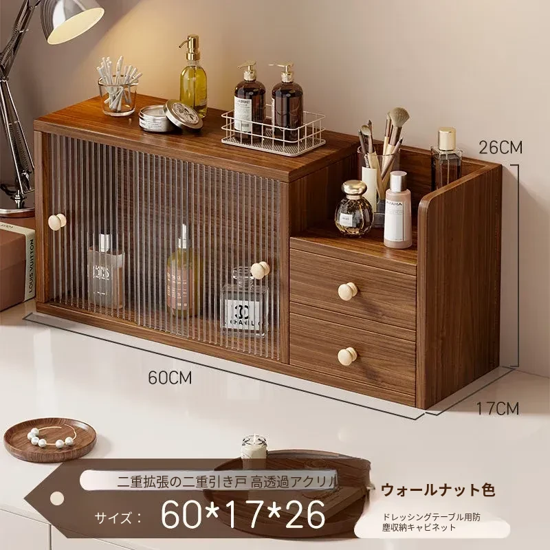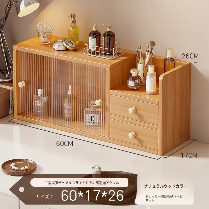 化粧品収納キャビネット デスクトップ防塵 スキンケアアイテム収納 メイクアップ台用 アクリル製 ダブルドア 香水・口紅収納に最適!おしゃれで機能的な収納で、あなたのビューティーライフをサポートします!