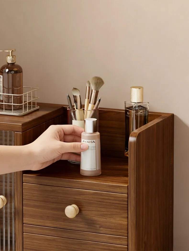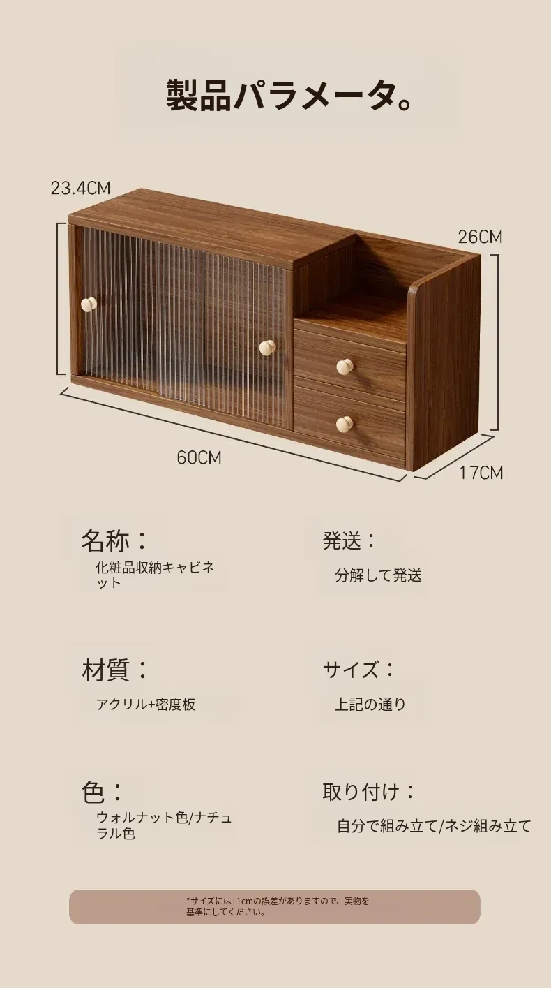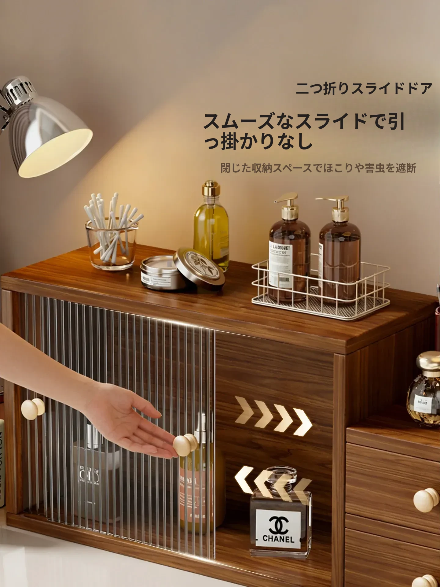 化粧品収納キャビネット デスクトップ防塵 スキンケアアイテム収納 メイクアップ台用 アクリル製 ダブルドア 香水・口紅収納に最適!おしゃれで機能的な収納で、あなたのビューティーライフをサポートします!