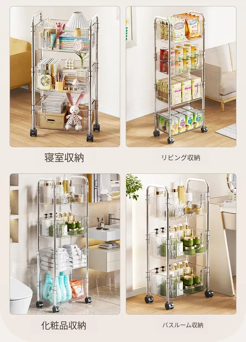 おしゃれなアクリル製スナックカート!多層構造で、移動も簡単。リビングやキッチンの下にぴったりの収納ラック。書籍や小物をすっきり整理!家庭用に最適な便利アイテムです。