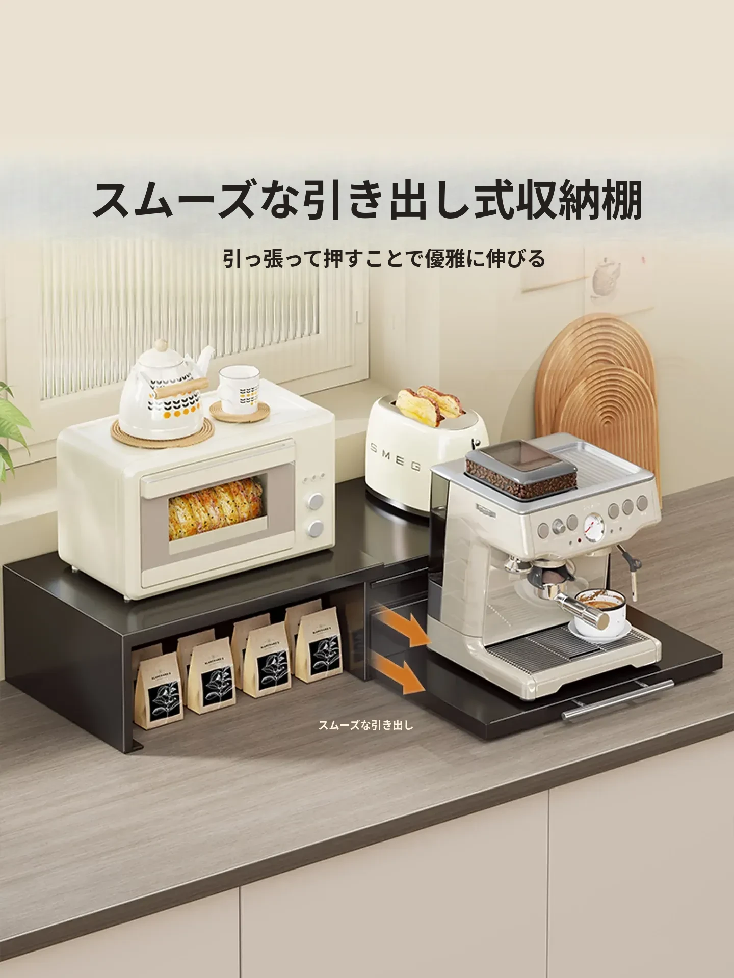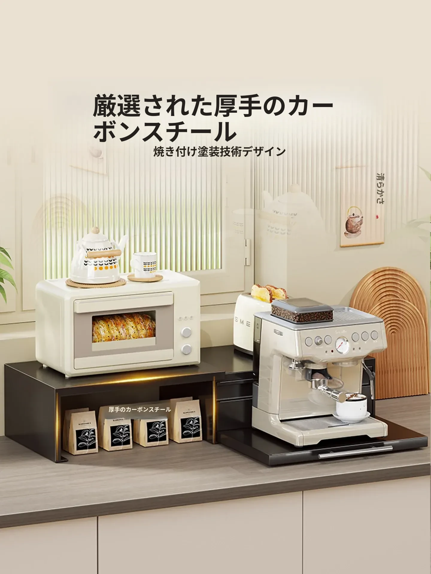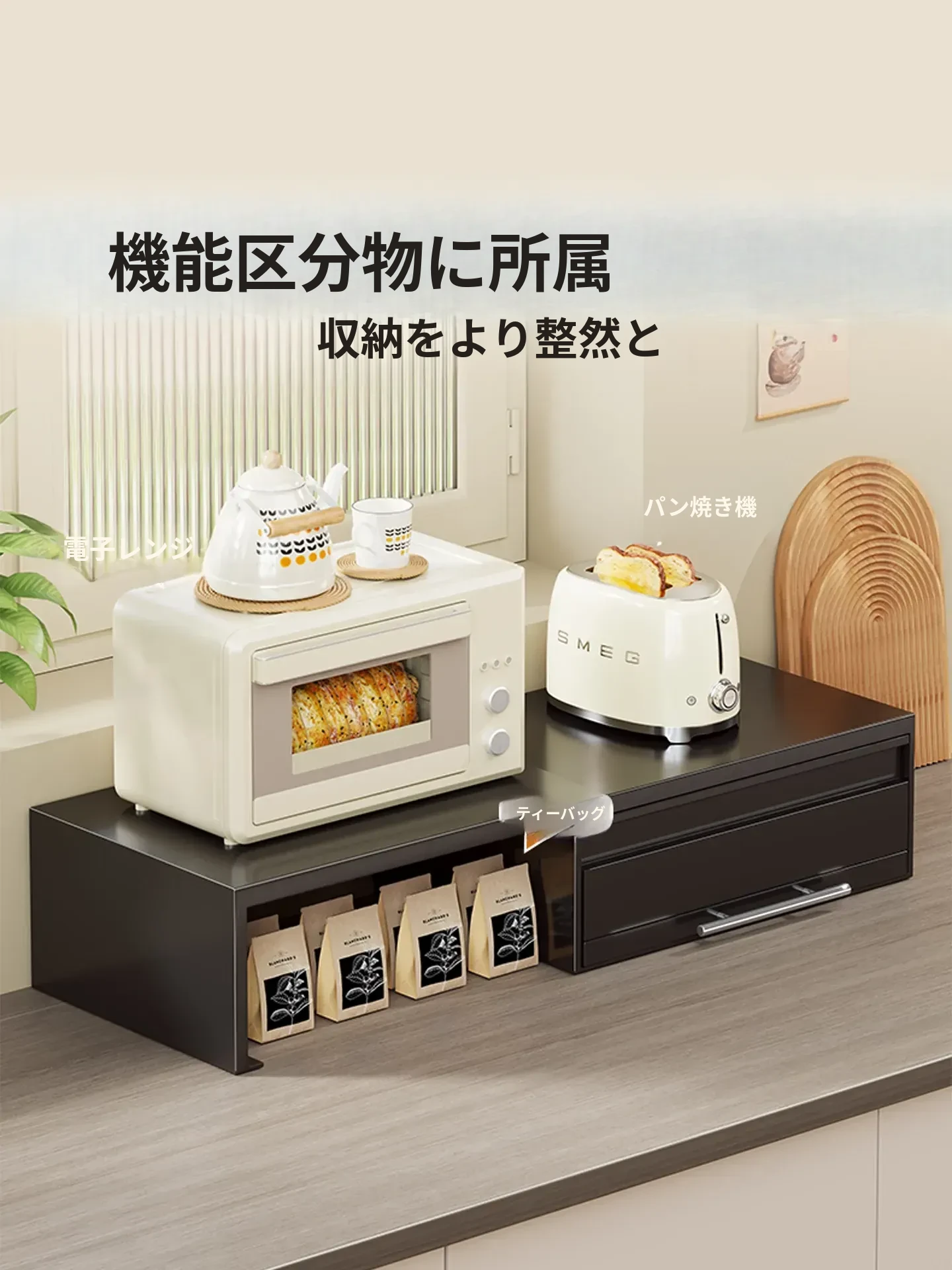 調節可能な厚手耐久性の電子レンジ用収納ラック - キッチンの整理整頓に最適!やかんや調理器具をスッキリ収納でき、スペースを有効活用します。