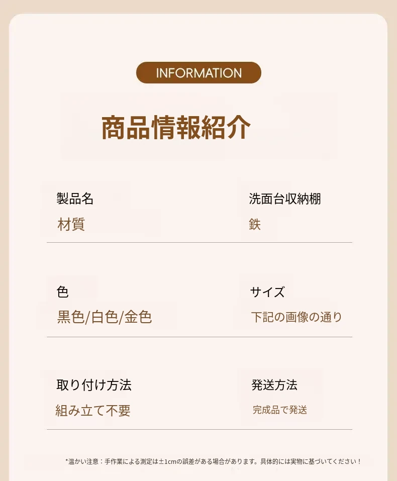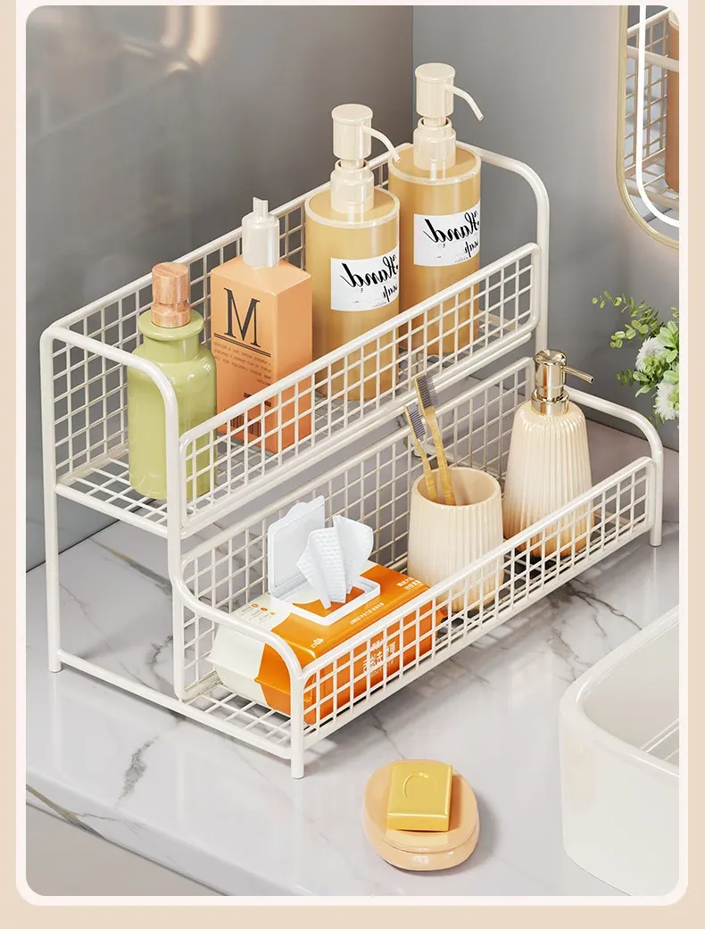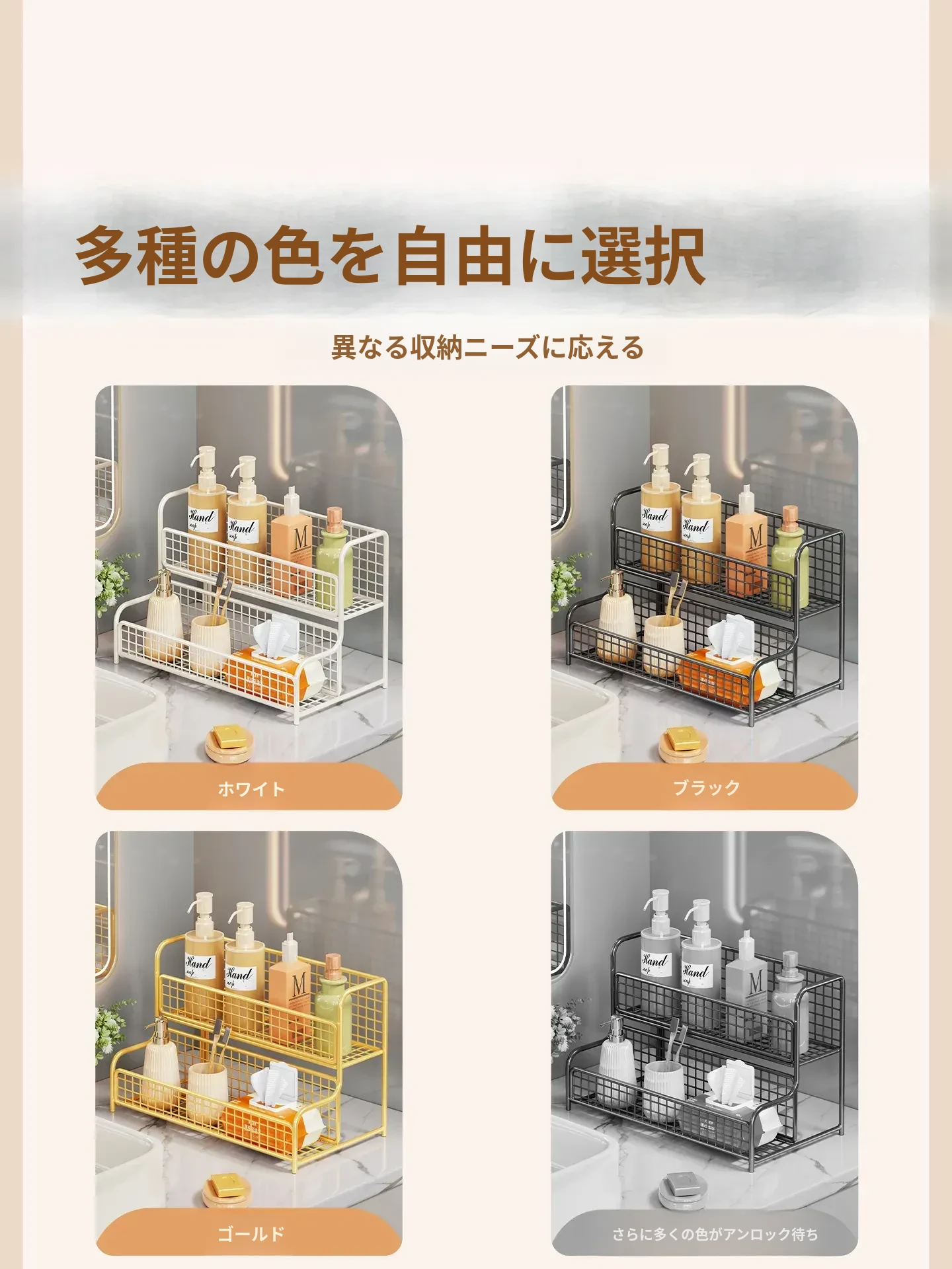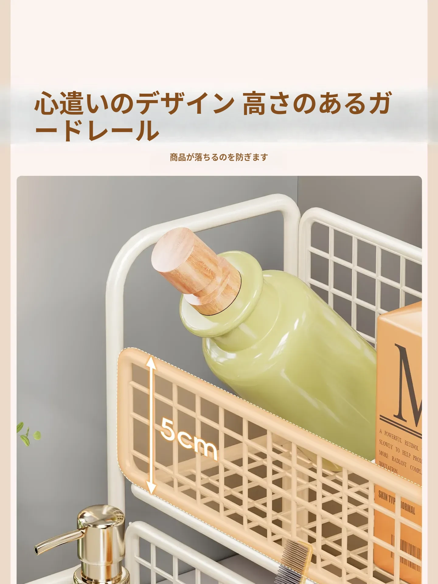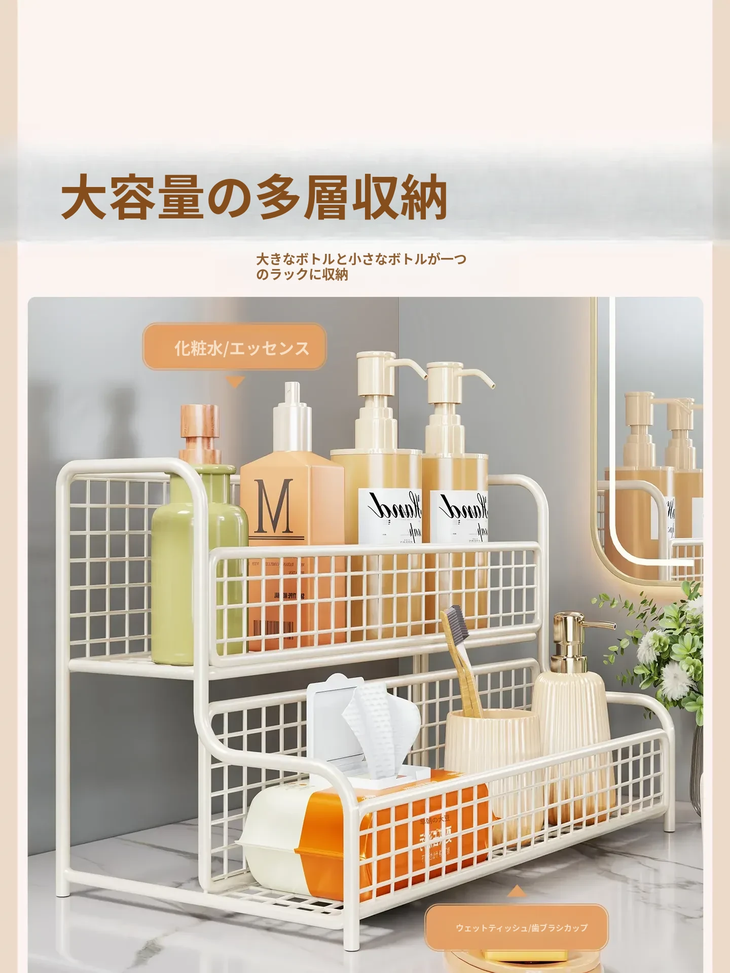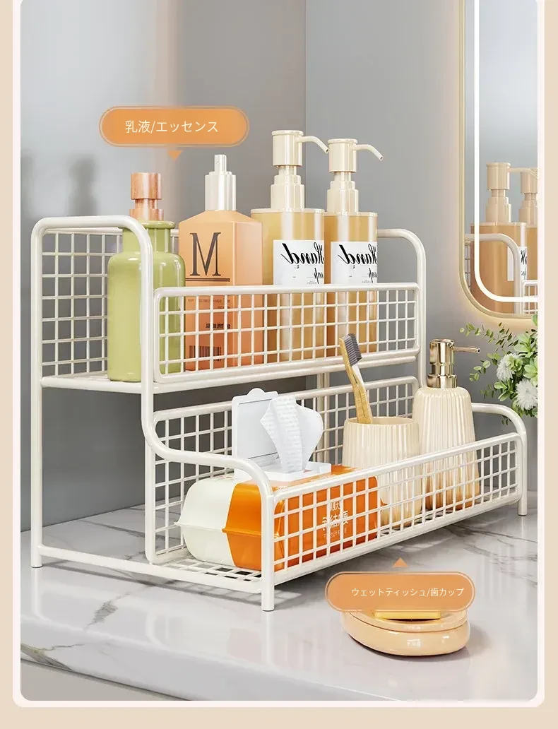 化粧品収納棚 - 洗面台やバスルームに最適!スキンケア用品や小物をすっきり整理。おしゃれで機能的なデザインで、あなたのバスルームに彩りを加えます。収納力抜群で、使いやすさも抜群!