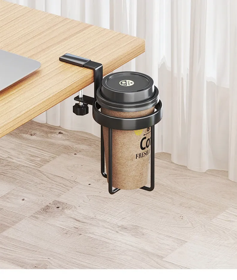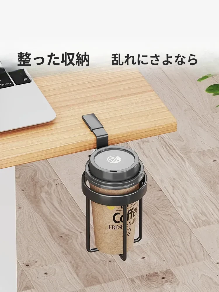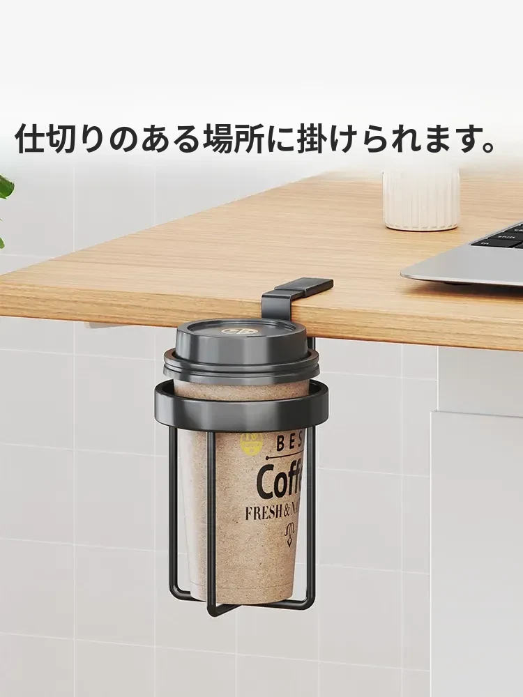 デスクサイド固定マグカップホルダー|オフィス用コーヒートレー|吊り下げ式カップホルダー|寮の上段にも最適!省スペースで便利な収納を実現!
