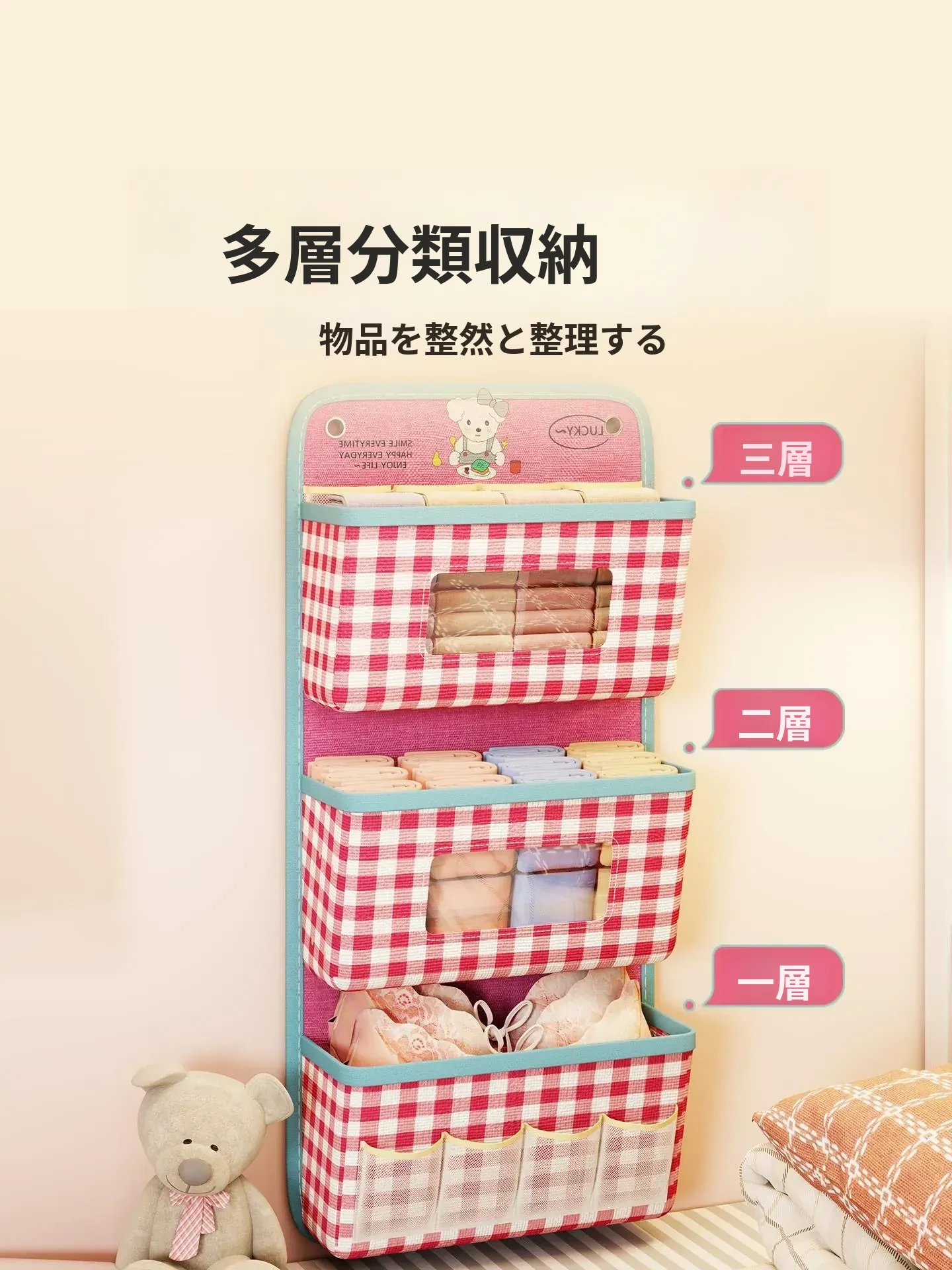 学生必見!宿舎の壁掛け収納ポケット - ベッドサイドでの内衣や靴下整理に最適な便利アイテム!お部屋をスッキリさせて、毎日を快適に過ごそう!