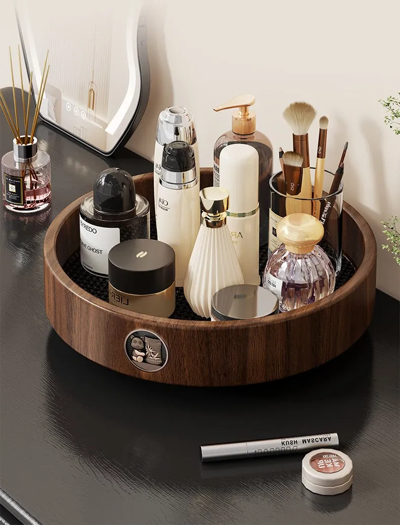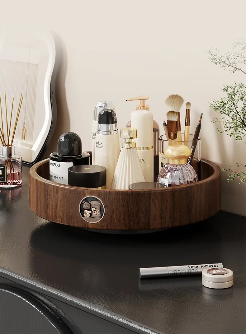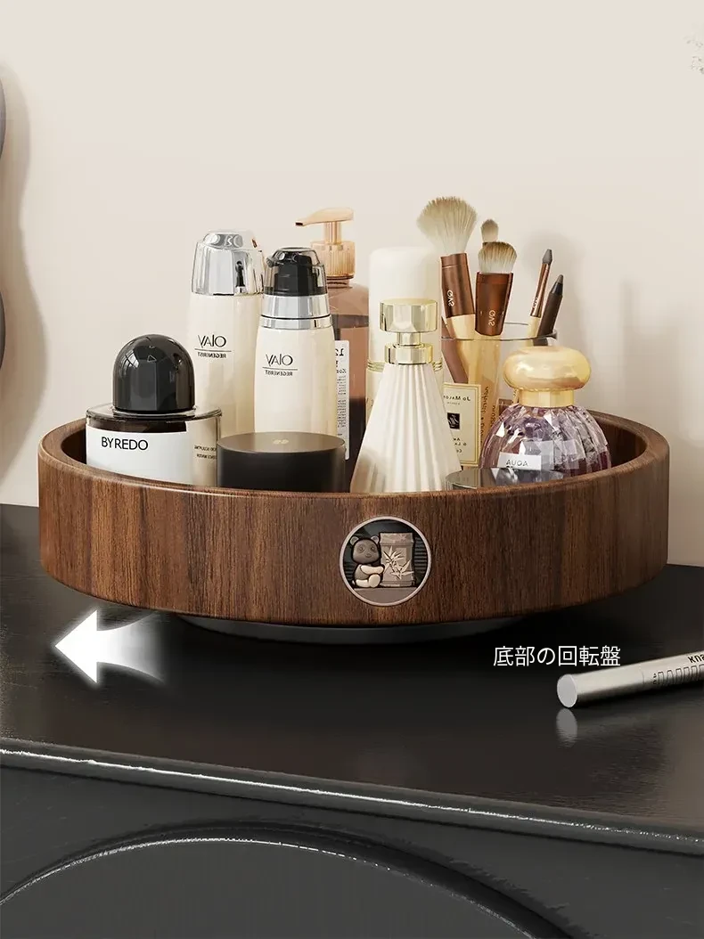 高級感溢れる実木製化粧品収納ラック - 家庭用ドレッサーの美しさを引き立てる!香水や雑貨をすっきり収納できるスタイリッシュなコスメボックス。あなたのスキンケアをより魅力的に演出します!