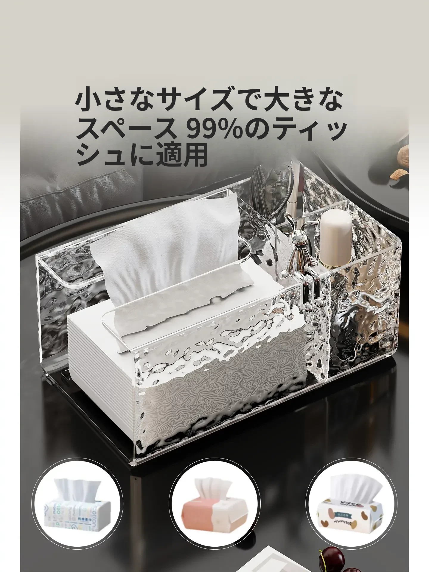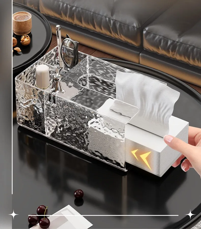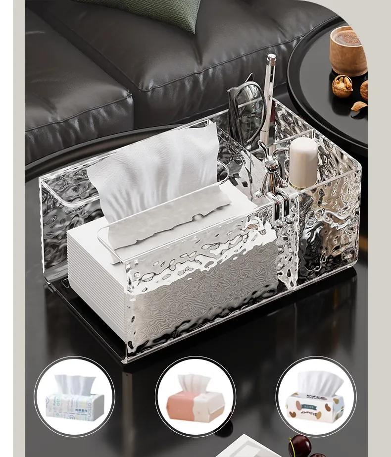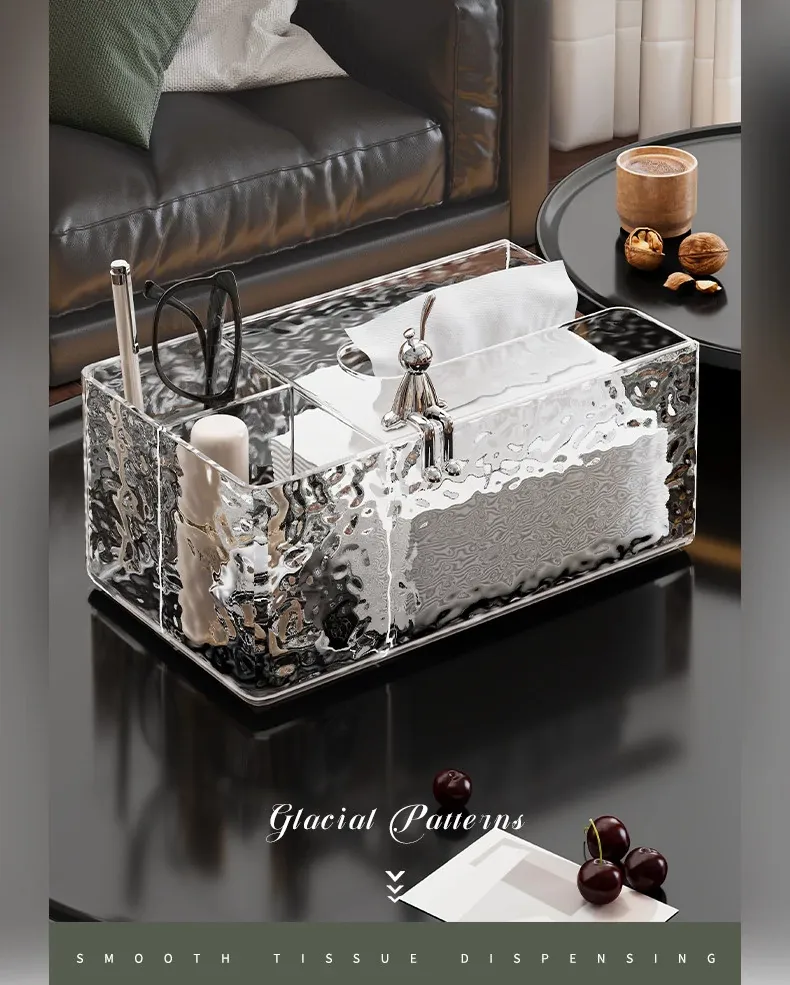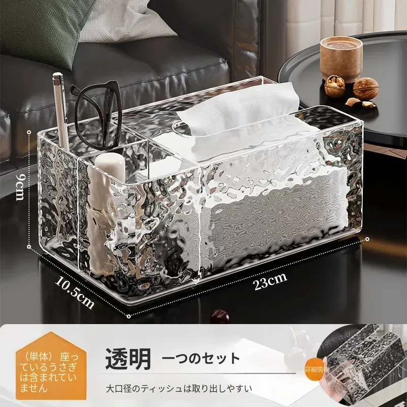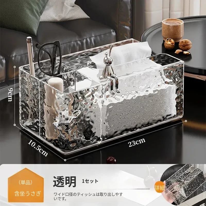 高級感溢れる透明ティッシュボックス - リビングのデスクにぴったり!おしゃれなナプキン収納ボックスとしても使える、清潔感あふれる衛生的なティッシュスタンド。お部屋を美しく彩る必須アイテム!
