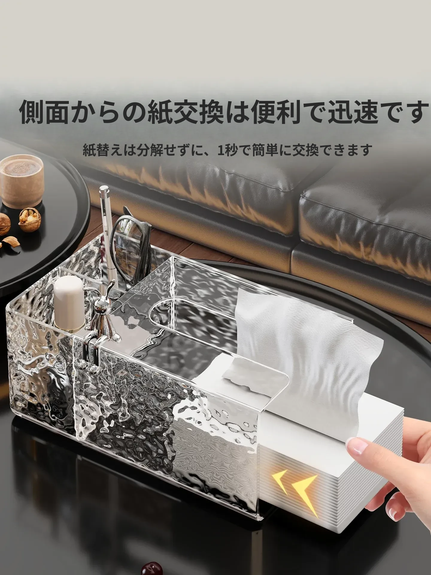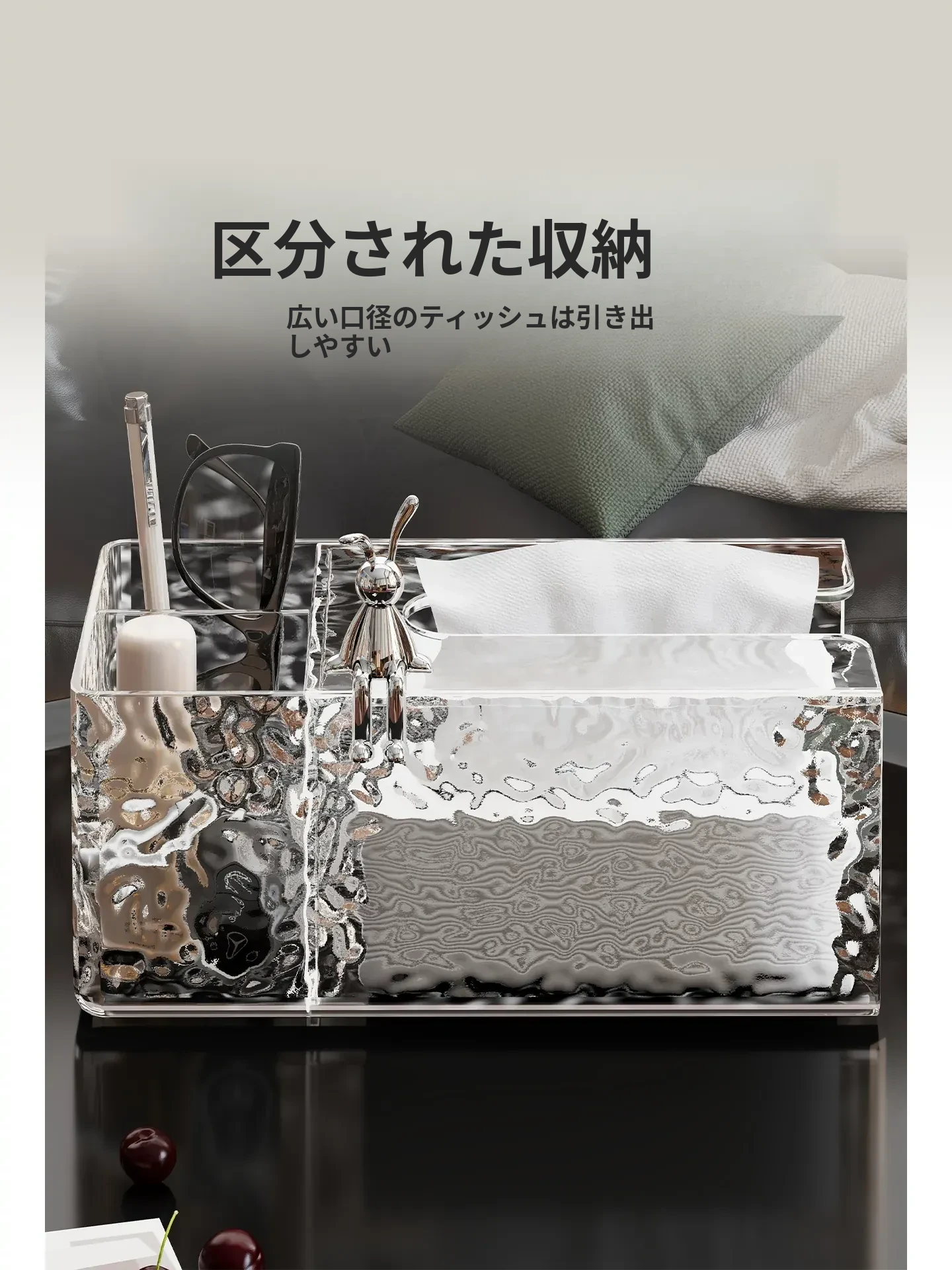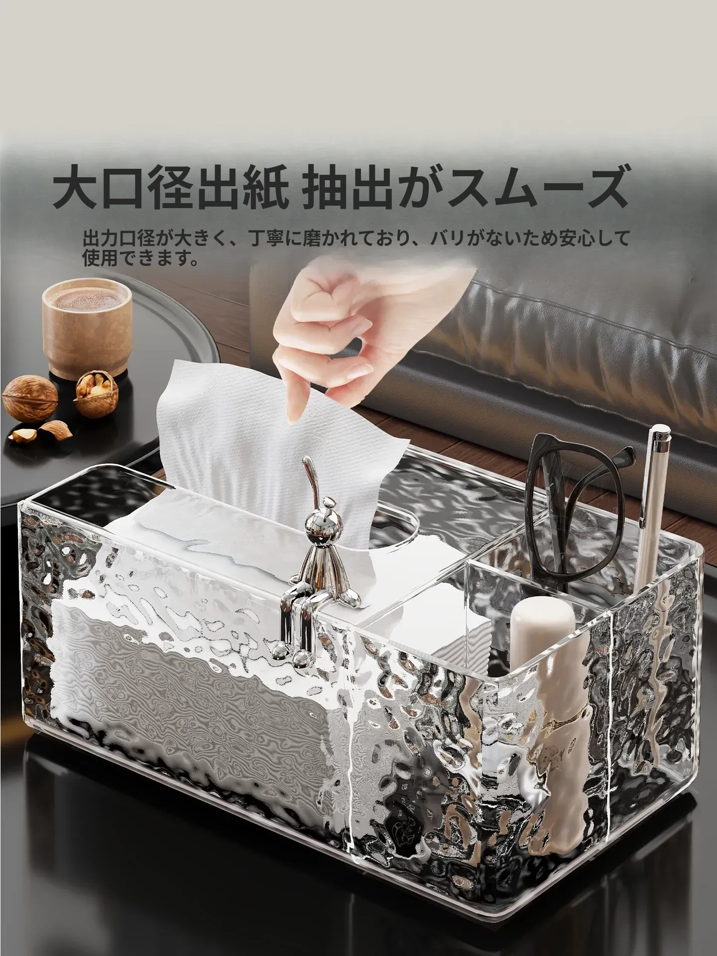 高級感溢れる透明ティッシュボックス - リビングのデスクにぴったり!おしゃれなナプキン収納ボックスとしても使える、清潔感あふれる衛生的なティッシュスタンド。お部屋を美しく彩る必須アイテム!