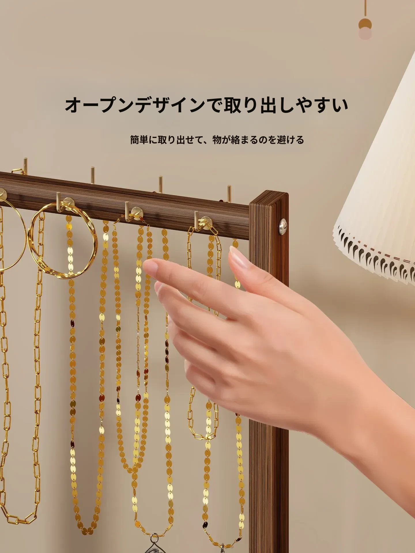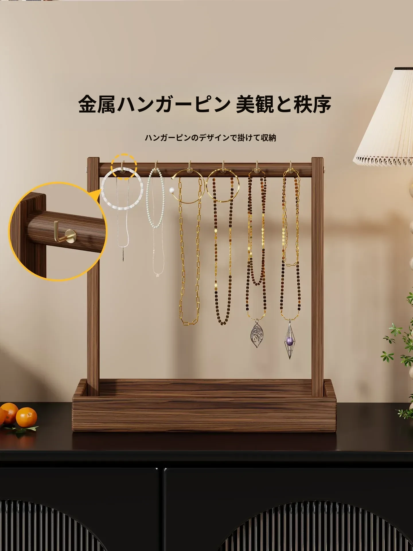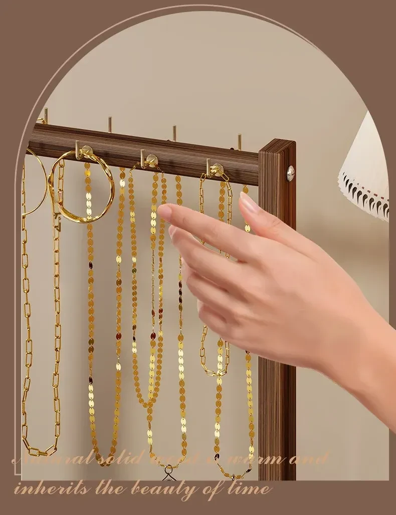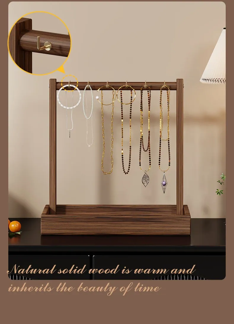 デスクトップ用ネックレスディスプレイスタンド - 高級感あふれる無垢材製装飾品収納ボックス、ブレスレット・時計を美しく整理できる実用的なアクセサリーラック!