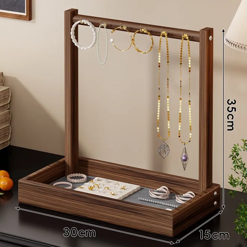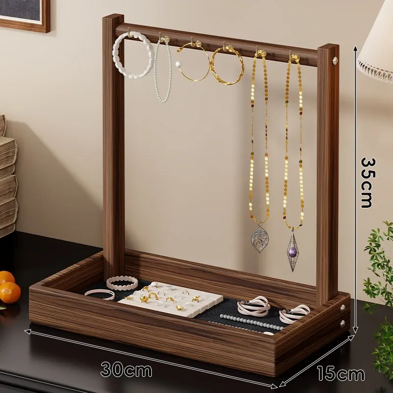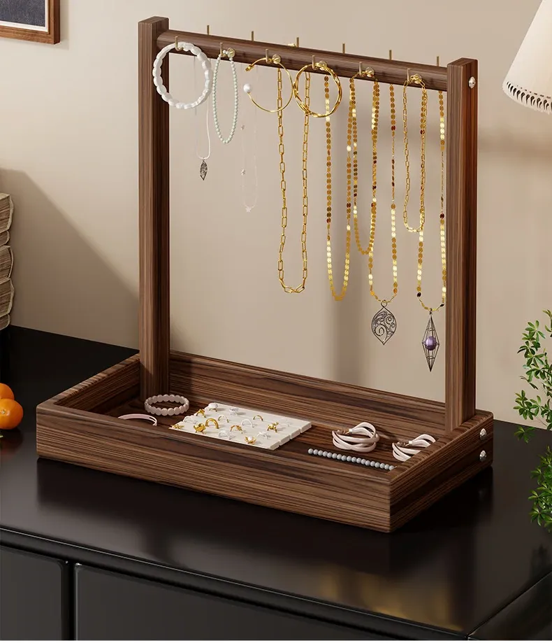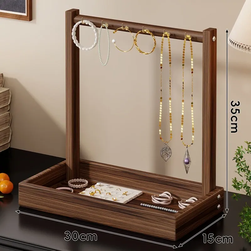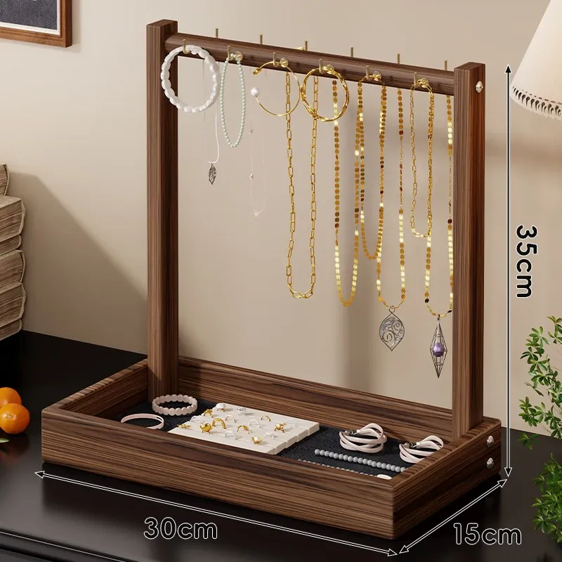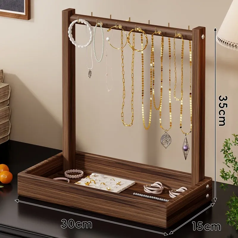 デスクトップ用ネックレスディスプレイスタンド - 高級感あふれる無垢材製装飾品収納ボックス、ブレスレット・時計を美しく整理できる実用的なアクセサリーラック!