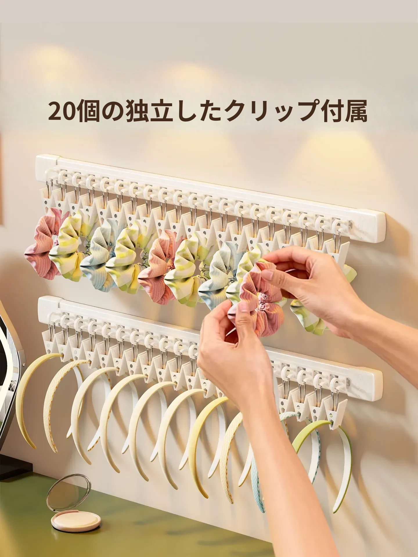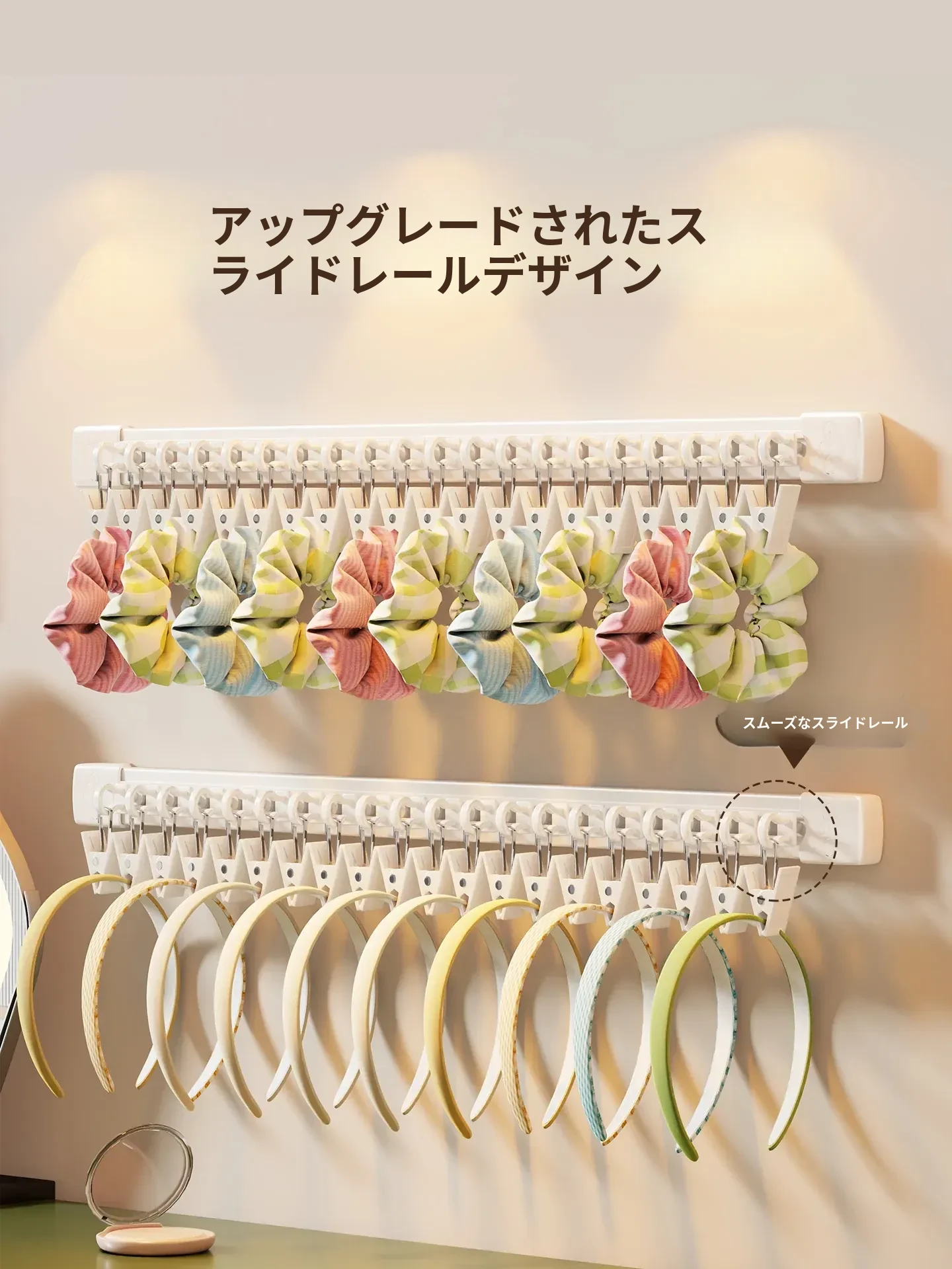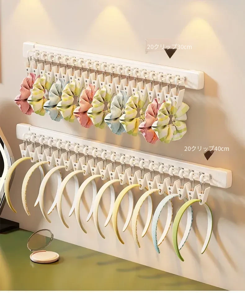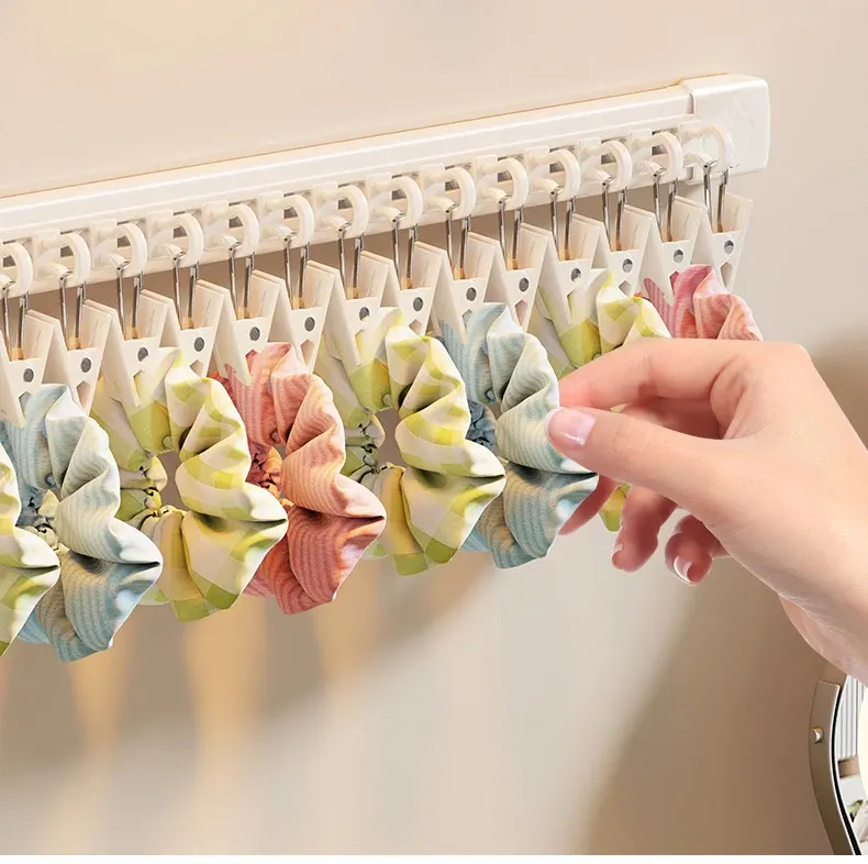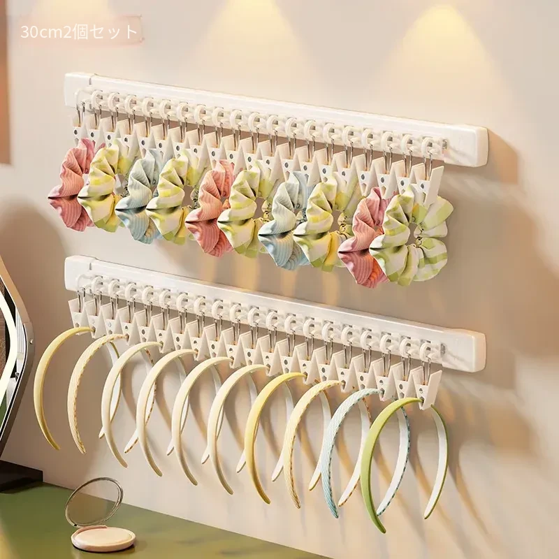 吊り下げ式ヘアゴム収納マジック!アクセサリーハンガーでヘアピンやゴムをすっきり整理。スライドレール付きで取り出しも簡単、オシャレな髪飾りの収納に最適!お部屋をスッキリさせる必須アイテム!
