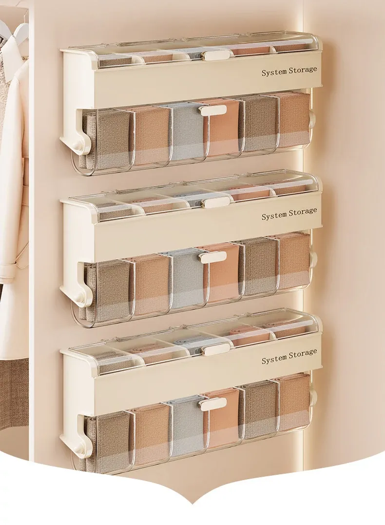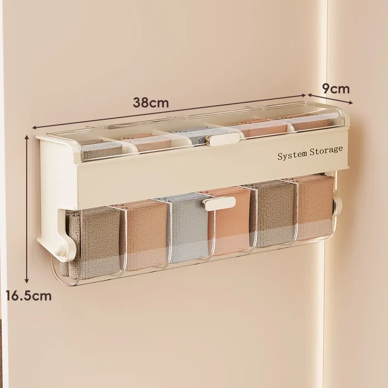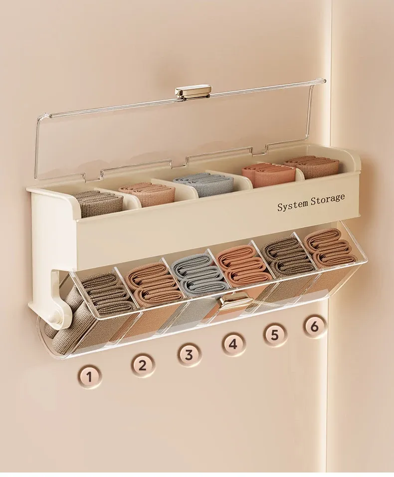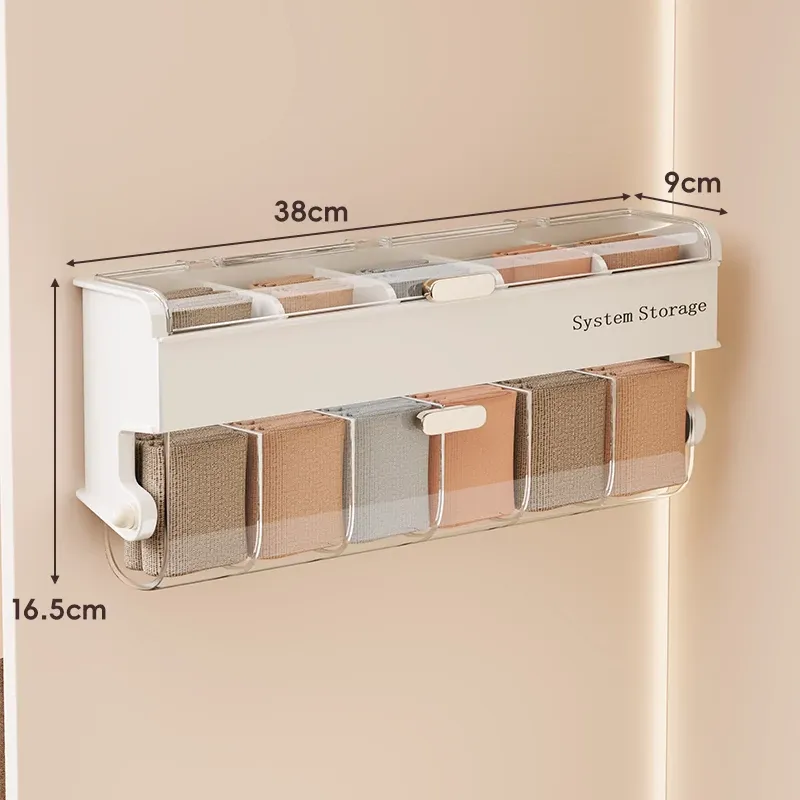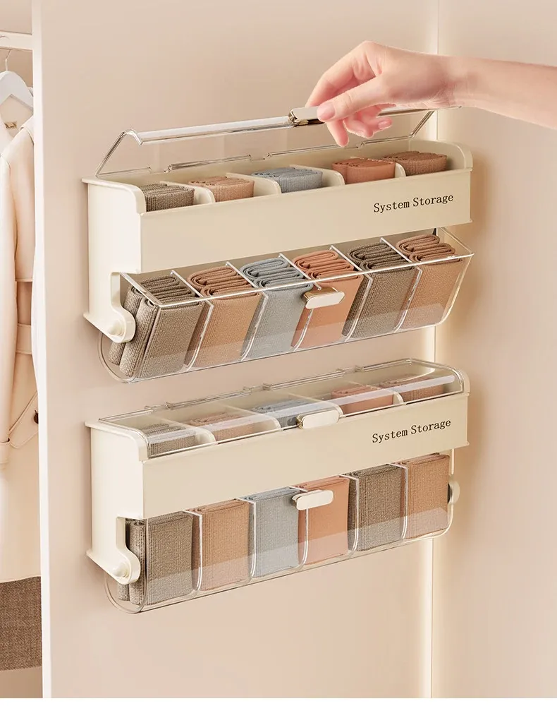 収納力抜群!ソックス収納ボックス - 蓋付き・仕切り付き・壁掛け式で、寝室のクローゼットドアの裏にピッタリ!下着やパンツもスッキリ整理できる便利アイテムです。
