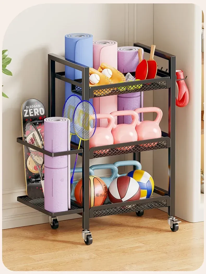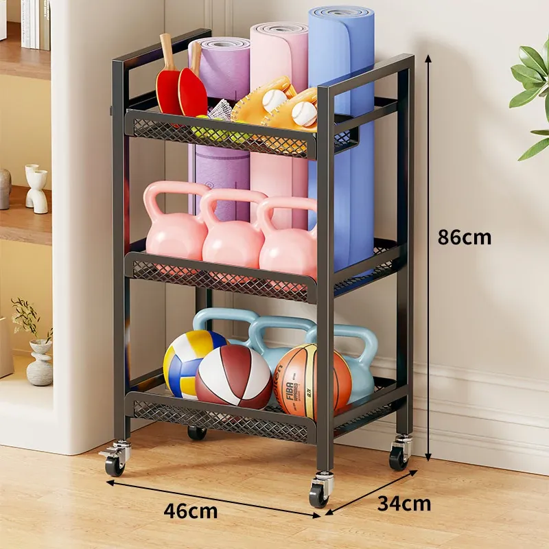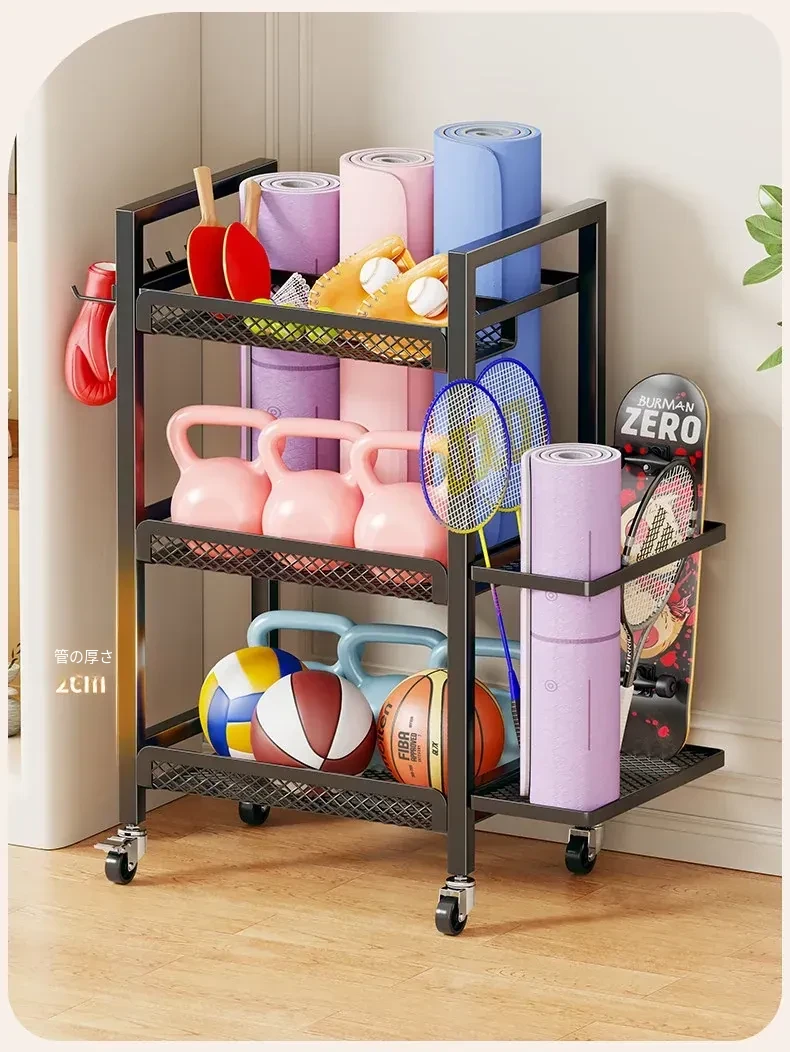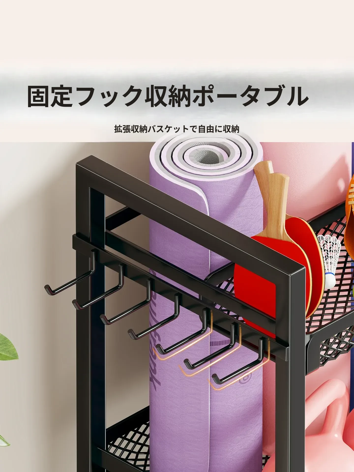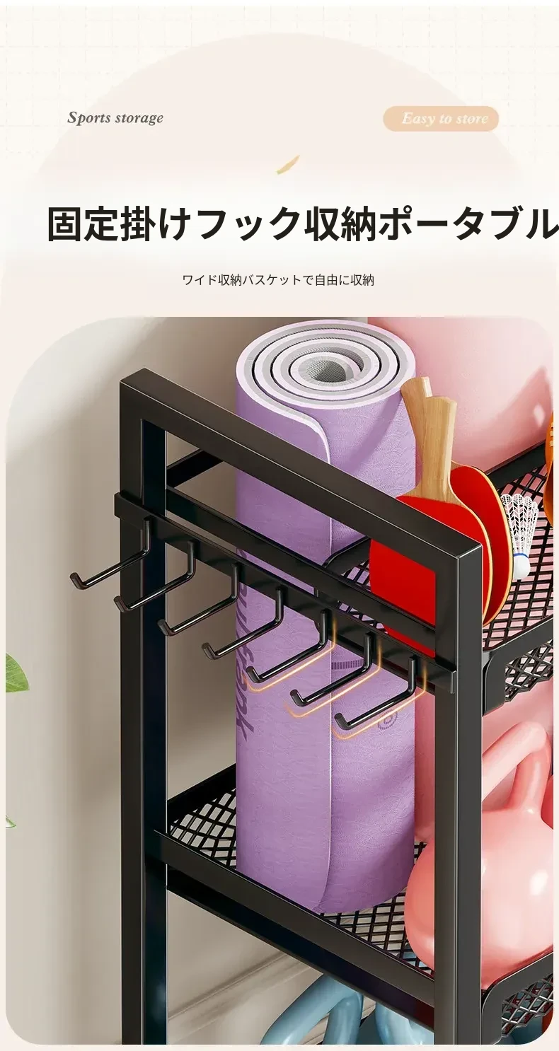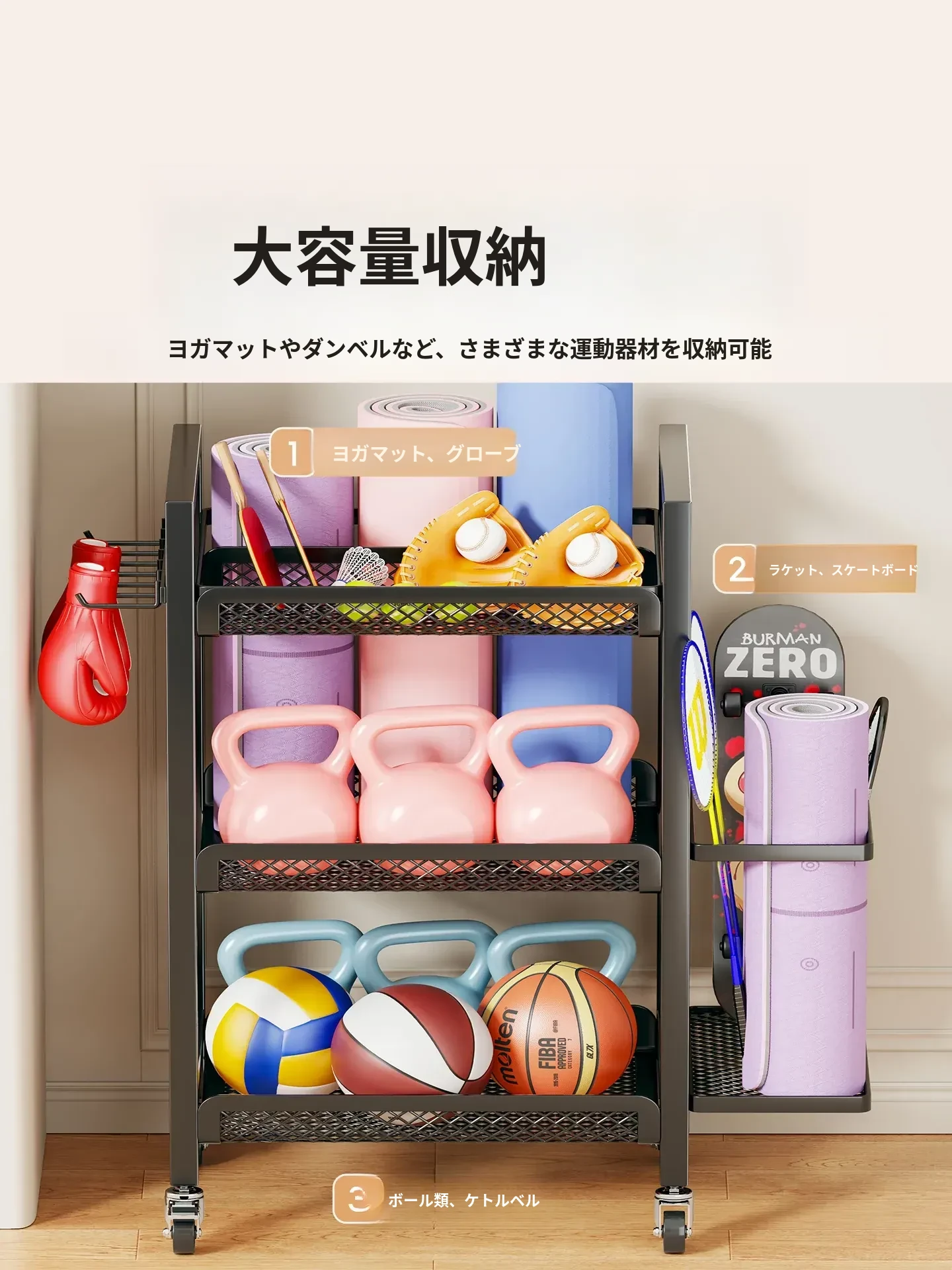 家庭用大容量フィットネス器具収納ラック|ダンベル・バスケットボール・バドミントンラケットをすっきり整理!運動道具をおしゃれに収納できる便利アイテム!