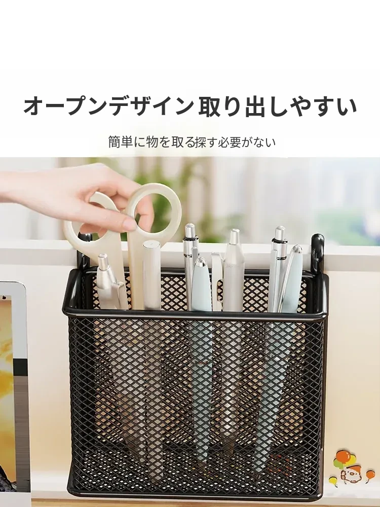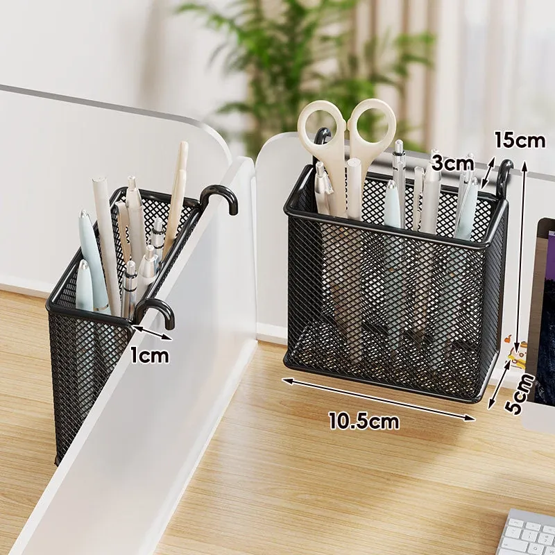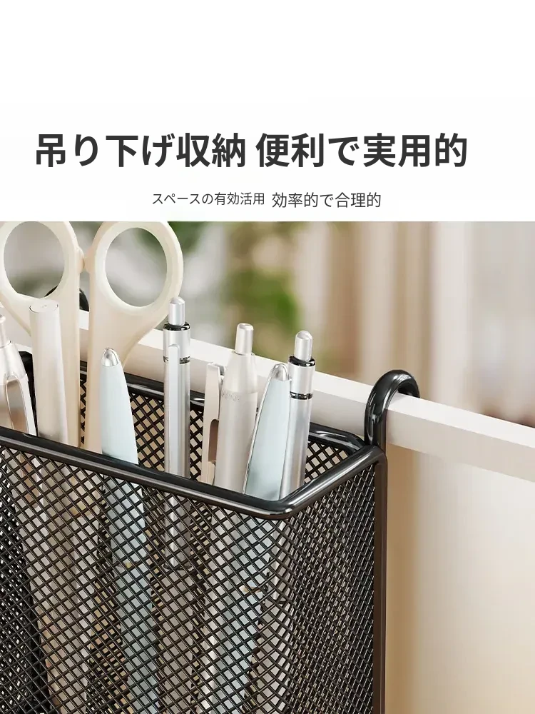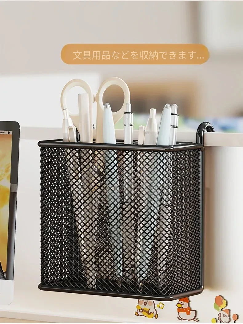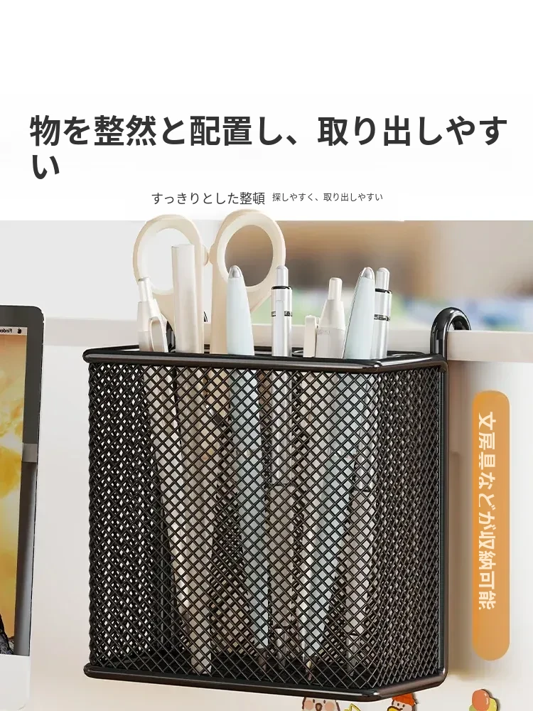 デスク上の整理整頓をサポート!大容量のペンスタンド&ハンギングフック収納ボックス - オフィスに最適な便利アイテム!