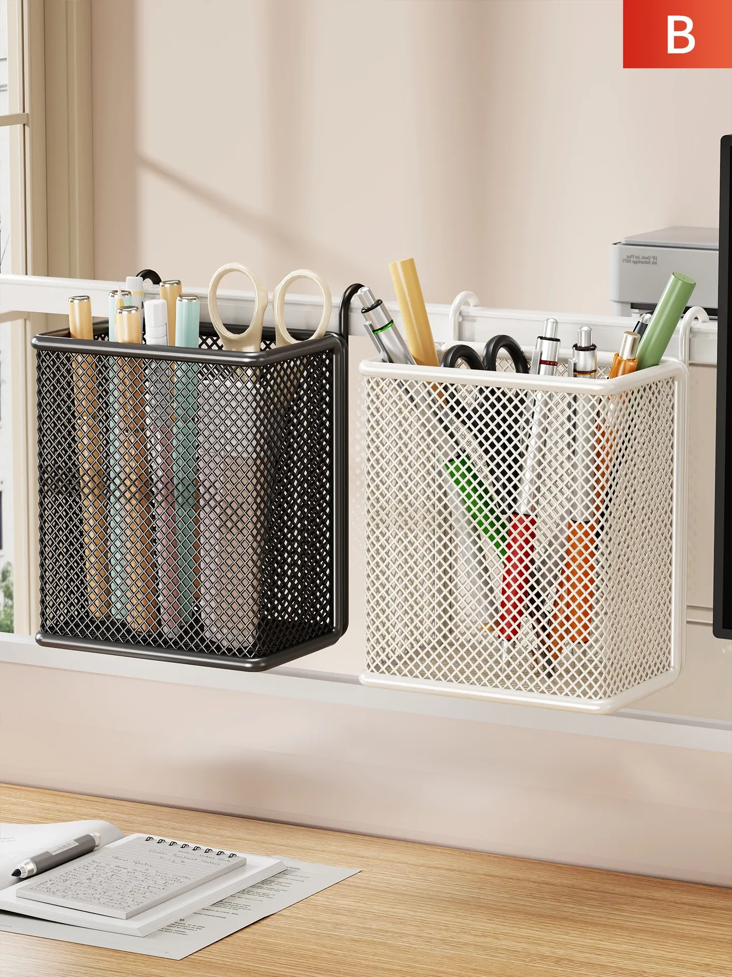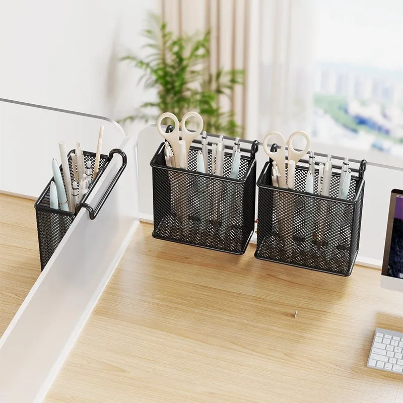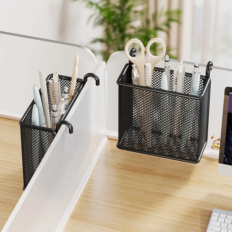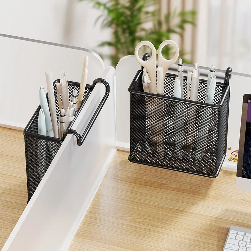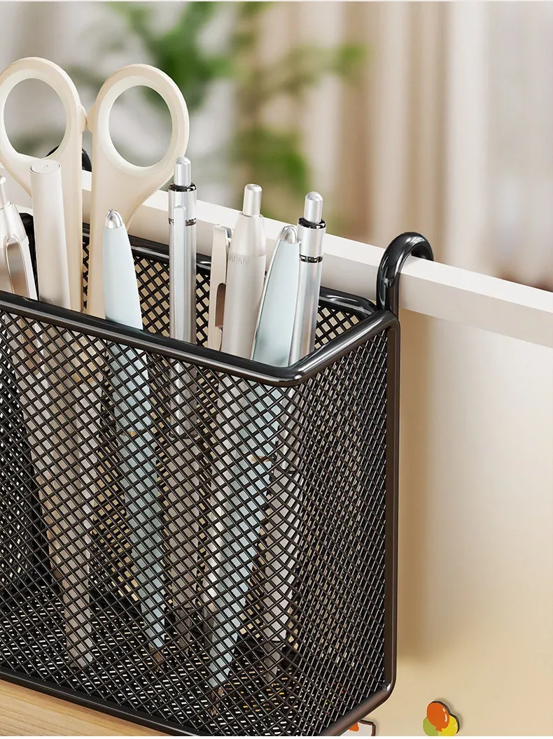 デスク上の整理整頓をサポート!大容量のペンスタンド&ハンギングフック収納ボックス - オフィスに最適な便利アイテム!