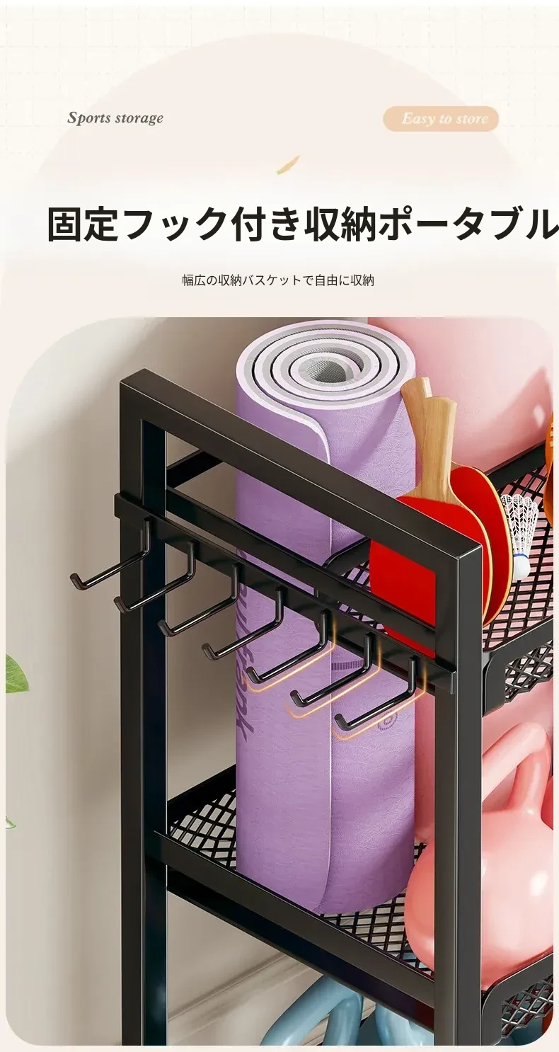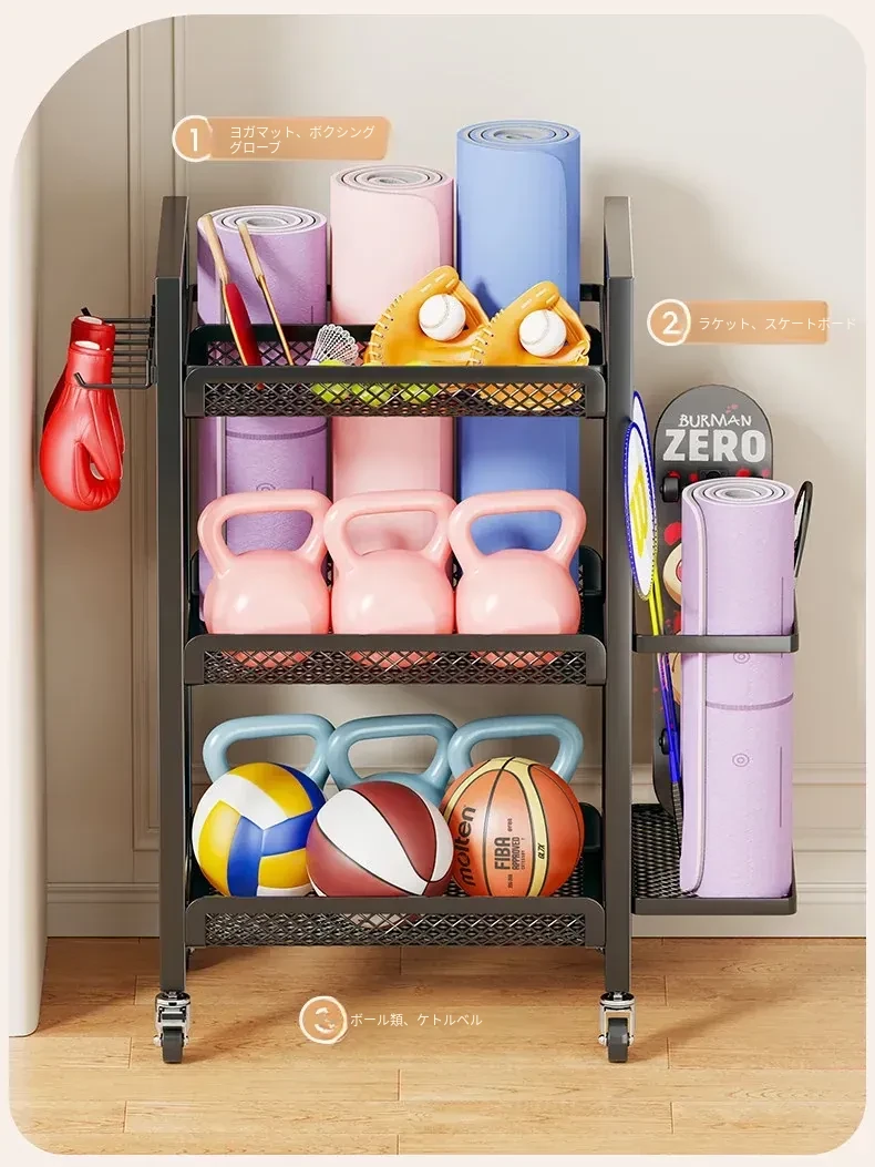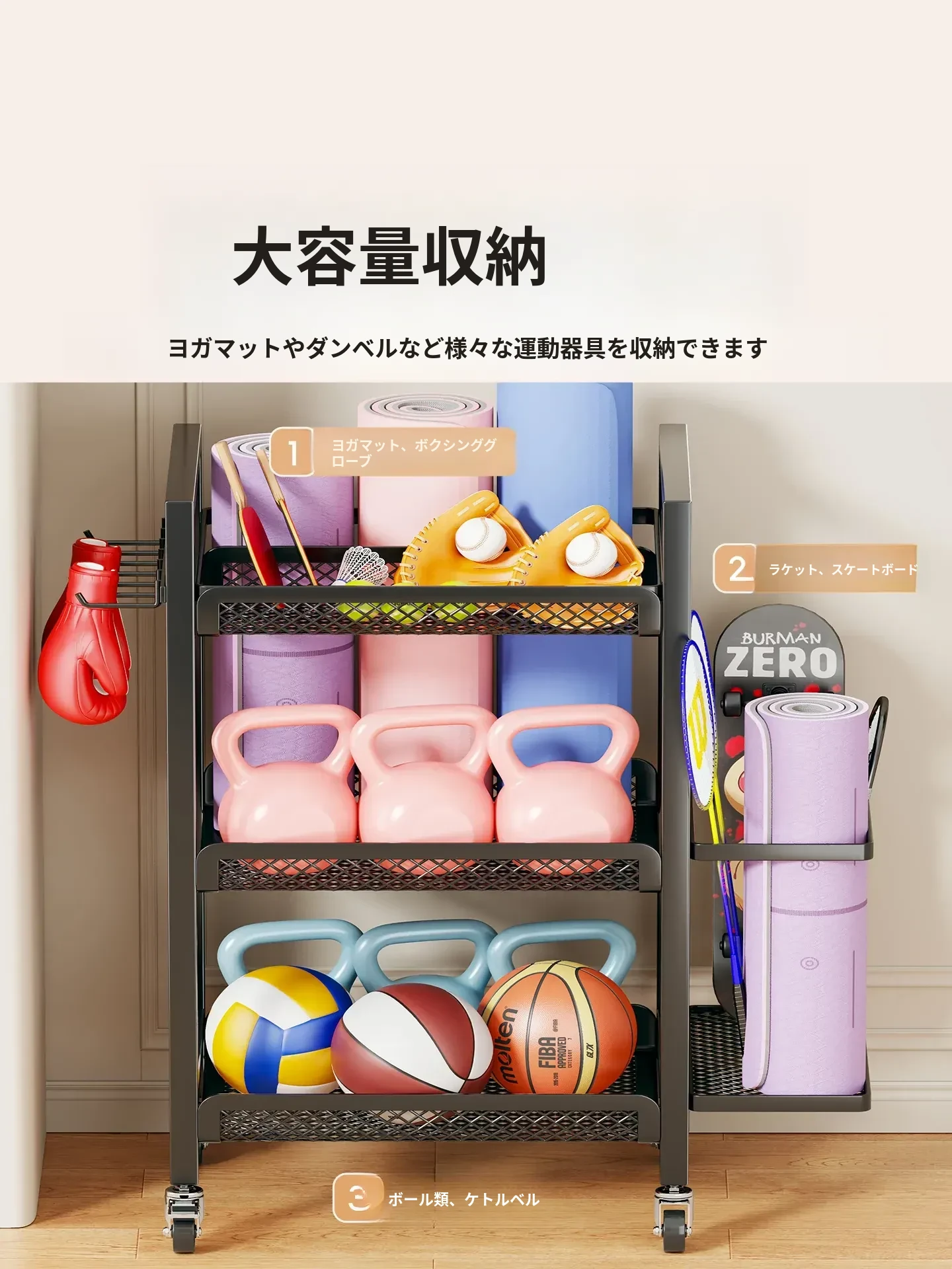 家庭用フィットネス器具収納ラック 大容量バドミントン用品収納ボックス スポーツグッズ整理の必需品!すっきりとした空間を手に入れよう!