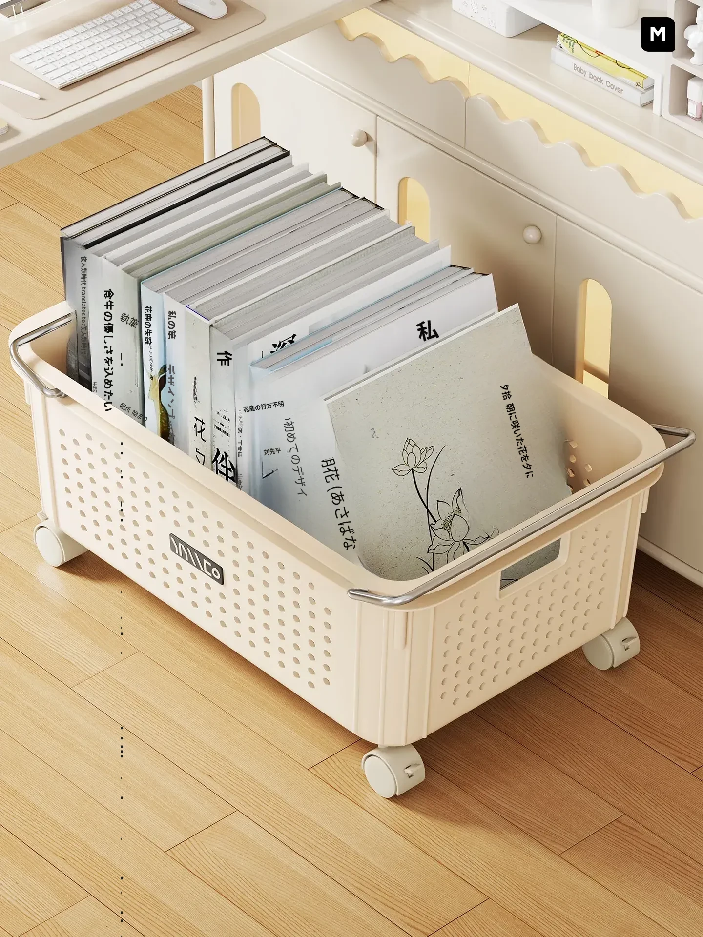教室必备!大容量書籍収納ボックス - 移動便利なキャスター付きの学生用書籍整理箱。書類や教科書をすっきり整理!おしゃれで機能的な小型カート。