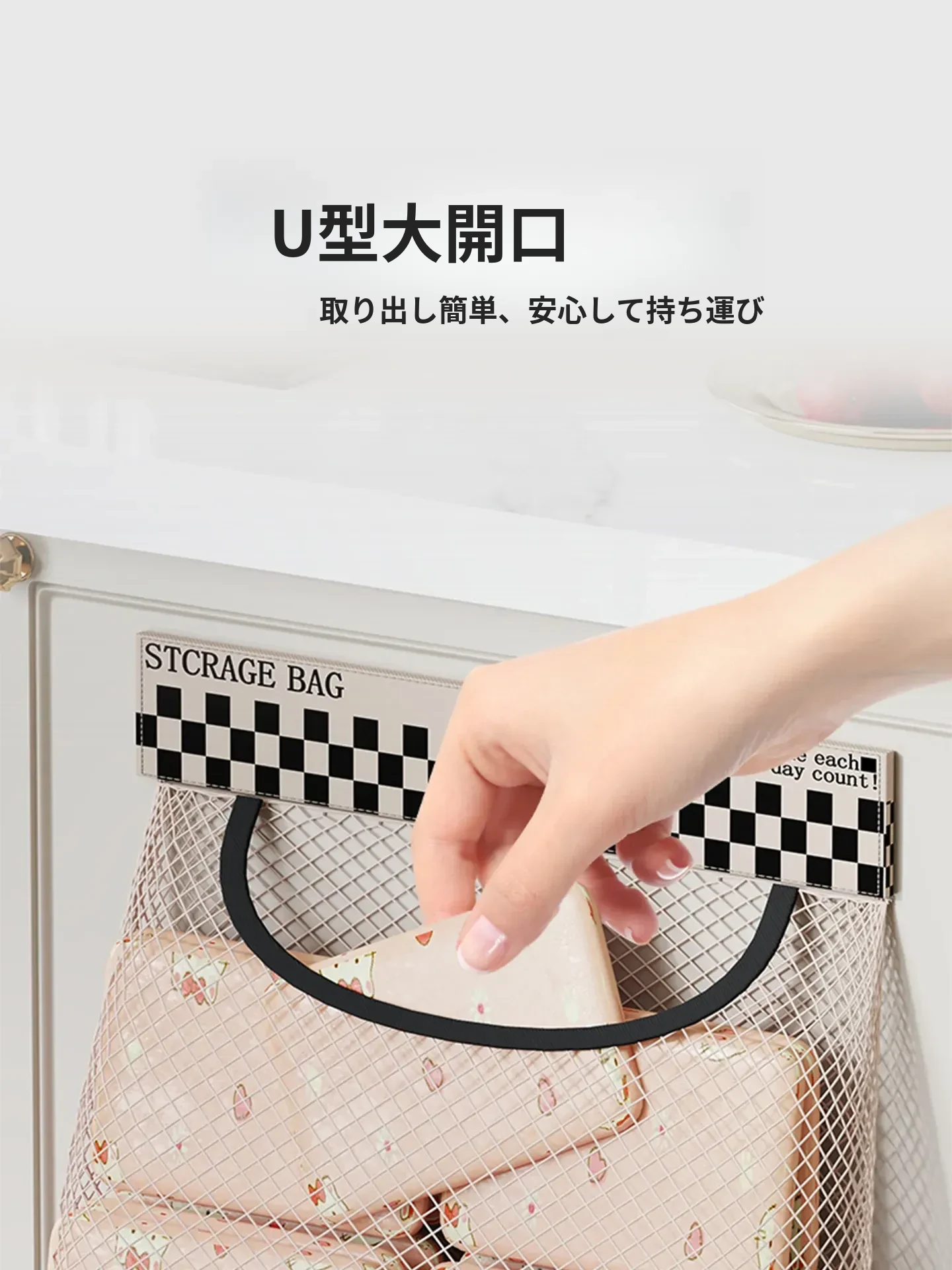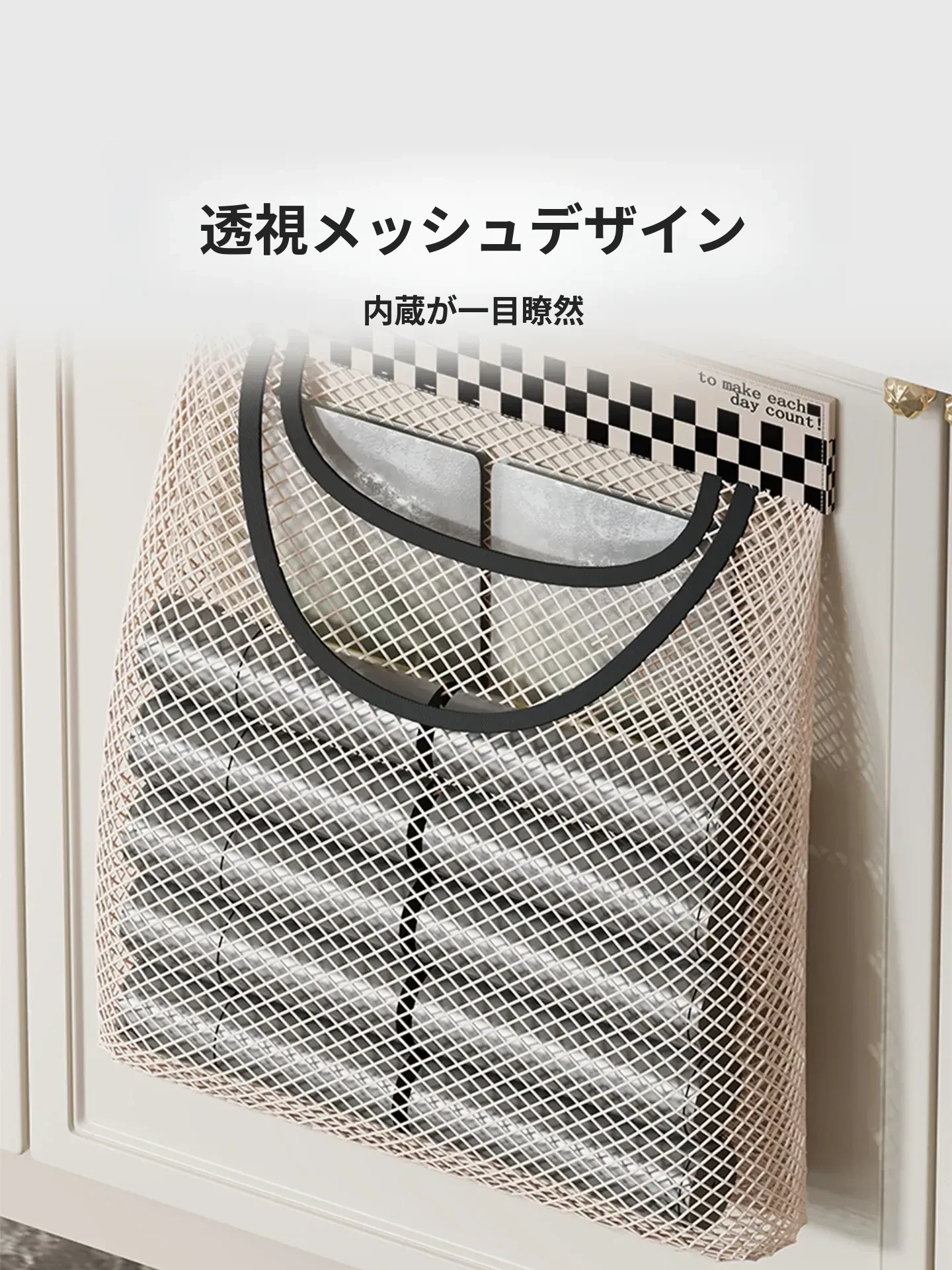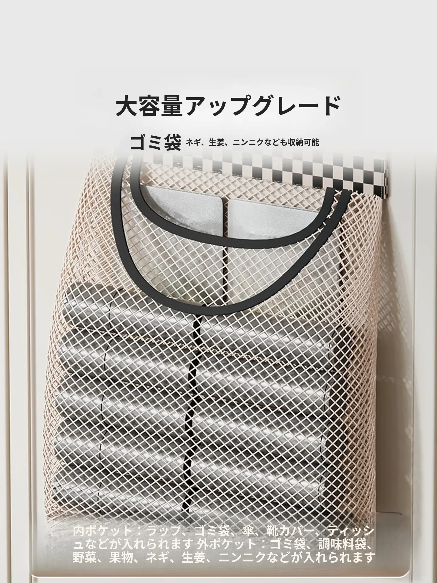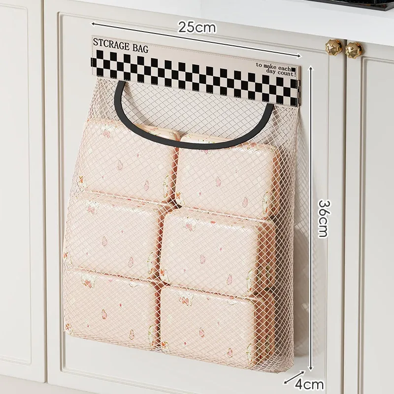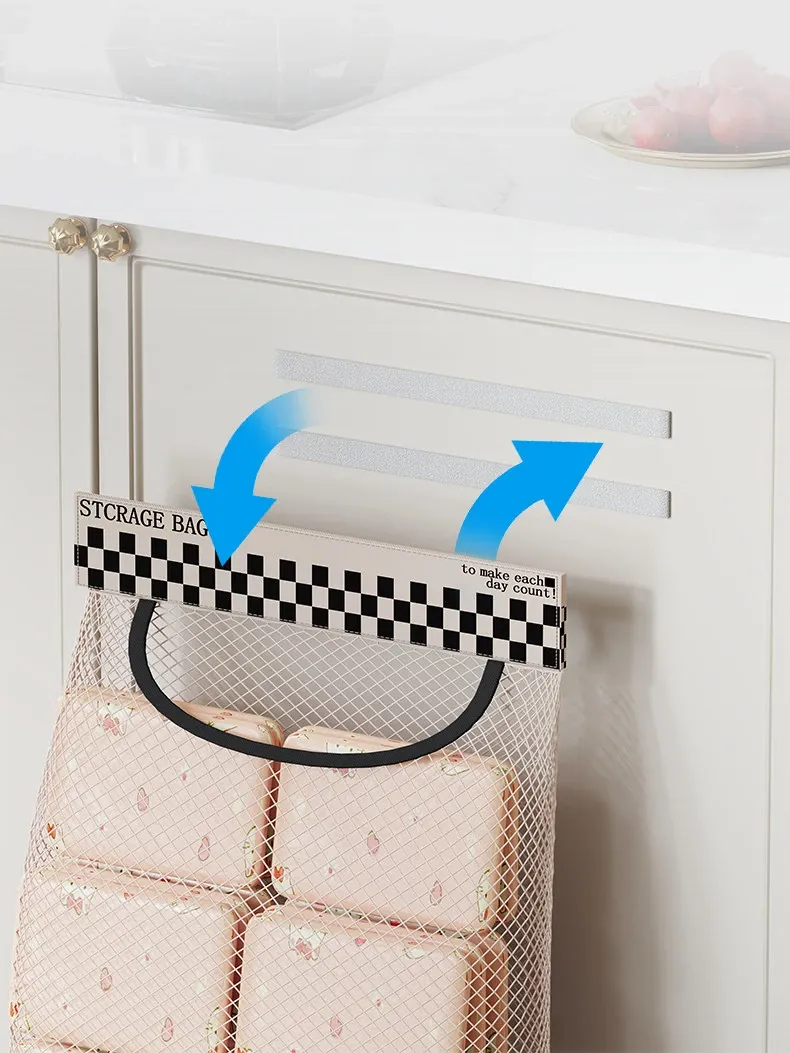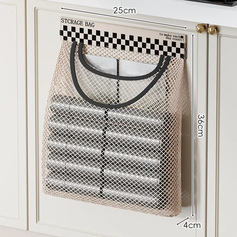 キッチンのゴミ袋収納マジック!プラスチック袋用ベルクロネットバッグ - 宿舎の壁掛けソックス収納ポケットで、スペースを有効活用!整理整頓が簡単に。